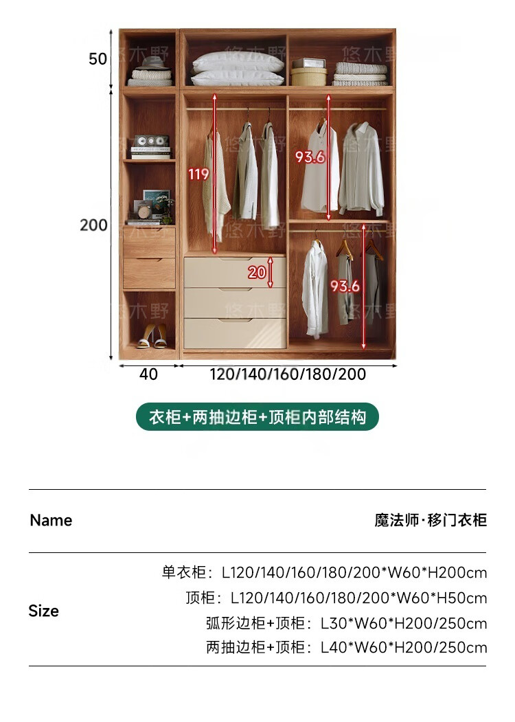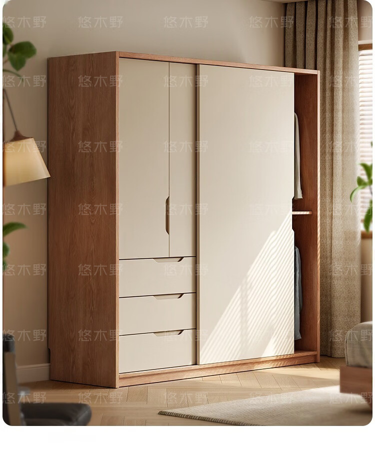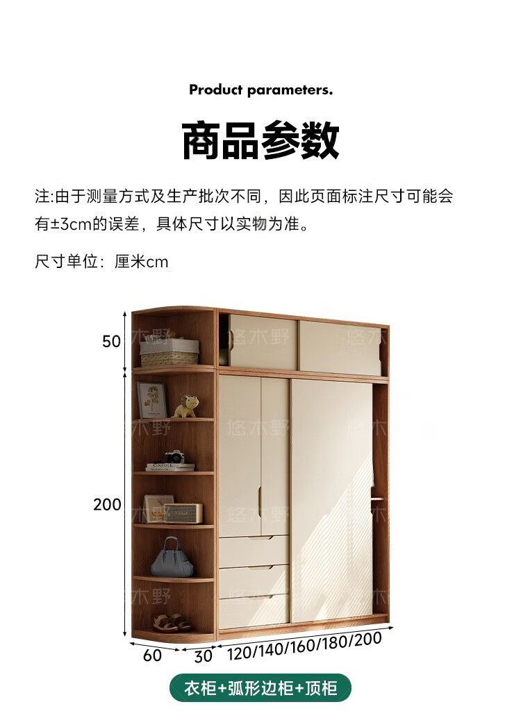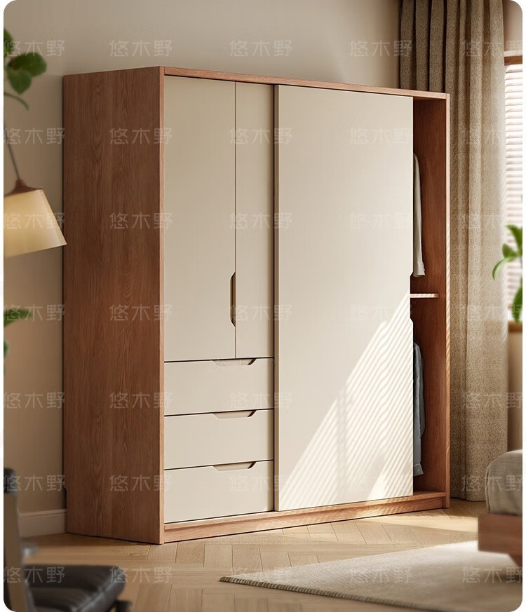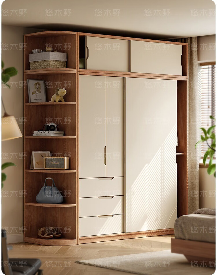 Yukino solid wood wardrobe sliding door wardrobe home bedroom log wardrobe style storage cabinet oak Japanese style sliding door wardrobe 1.8m sliding door wardrobe + curved side cabinet (length 2.1*2.0m high) delivery + door-to-door installation