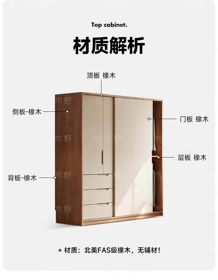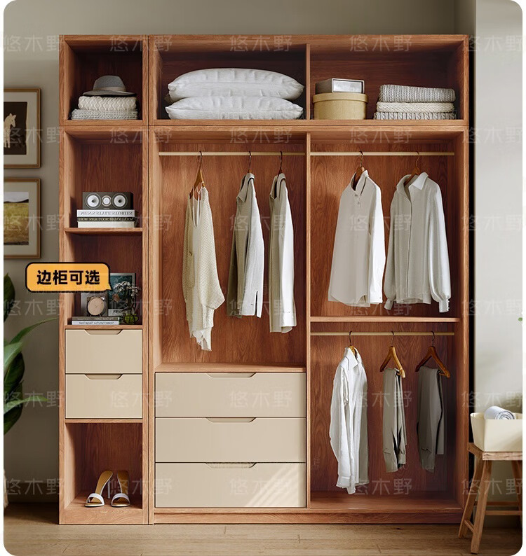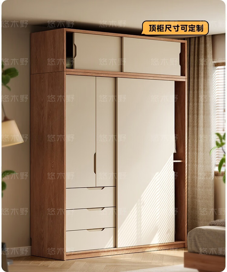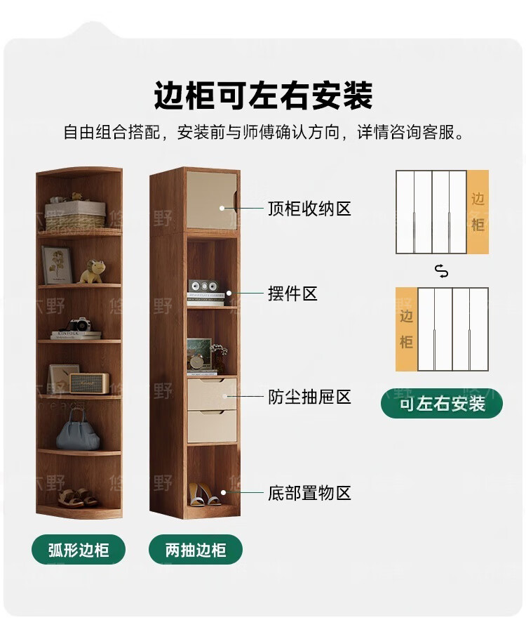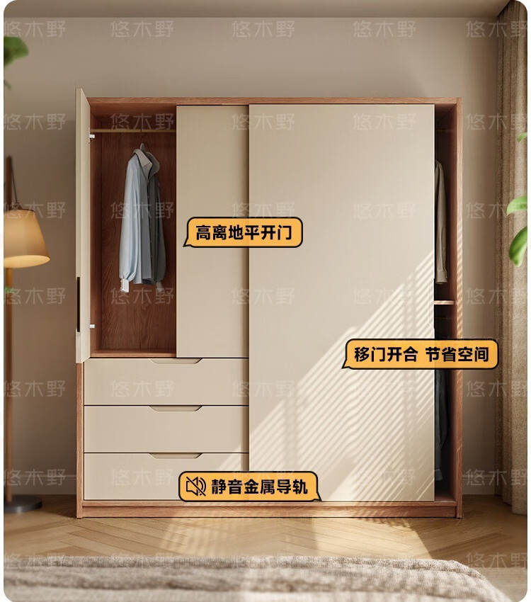 Yukino solid wood wardrobe sliding door wardrobe home bedroom log wardrobe style storage cabinet oak Japanese style sliding door wardrobe 1.8m sliding door wardrobe + curved side cabinet (length 2.1*2.0m high) delivery + door-to-door installation