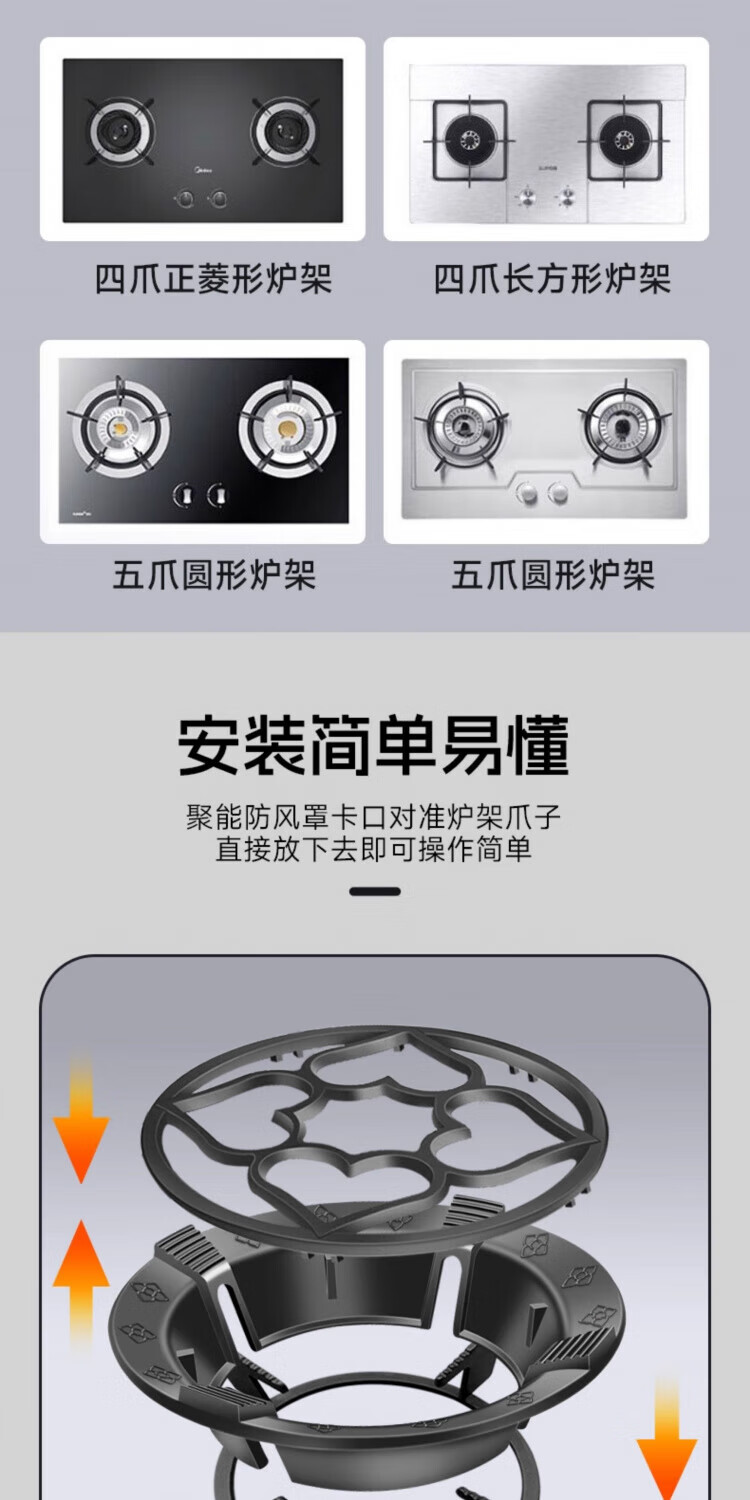 JCZS German gas stove bracket windproof cover cast iron gas stove windproof cover energy-saving ring windshield ring universal anti-slip bracket 4-open poly fire cover 4-claw universal