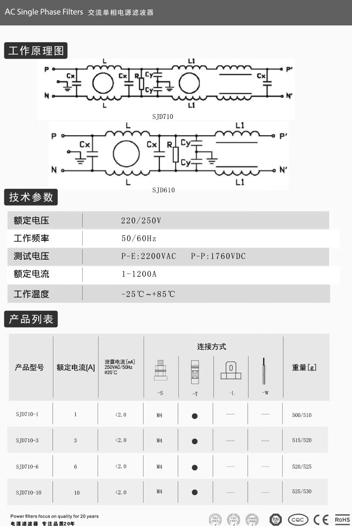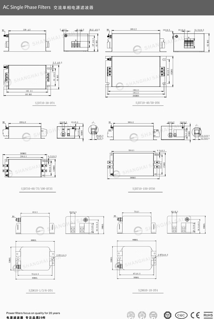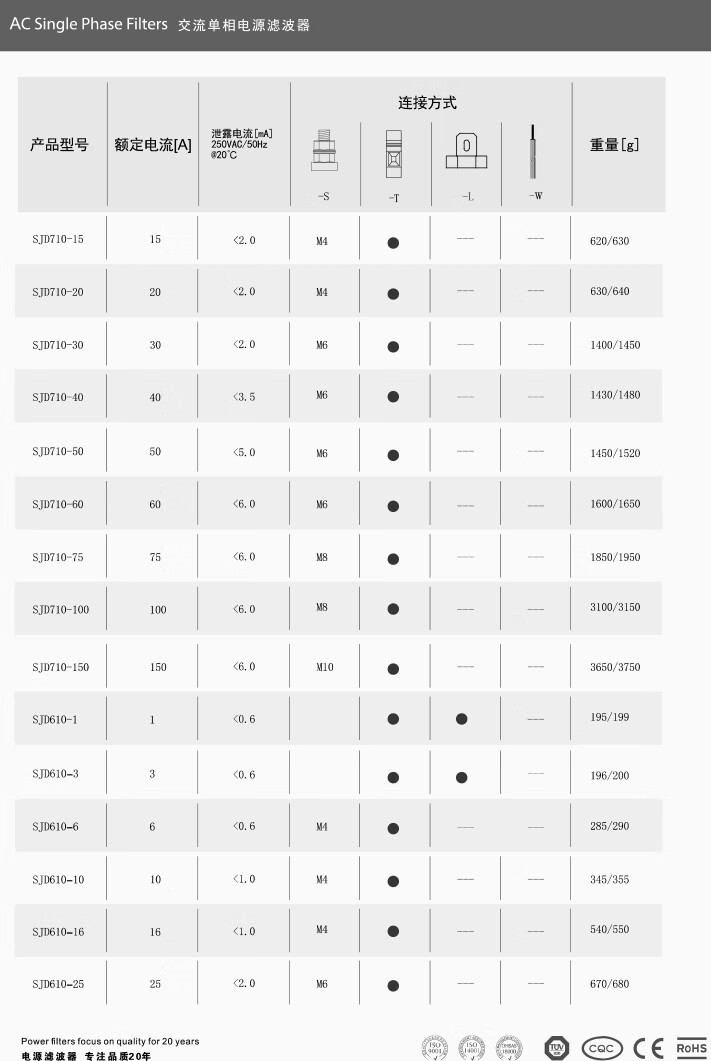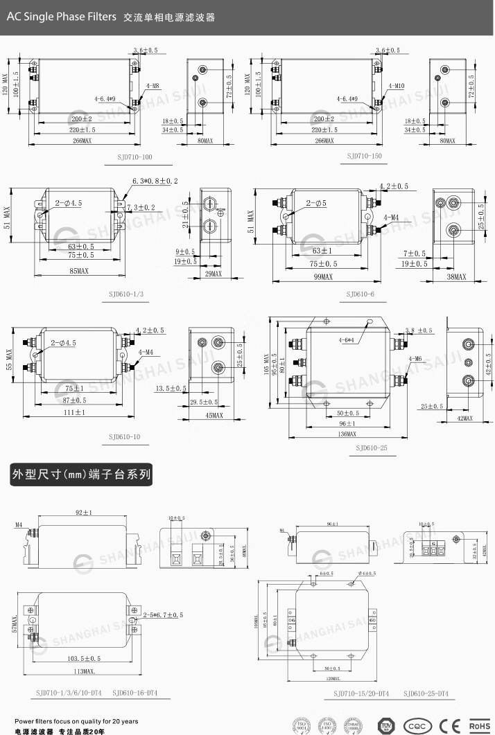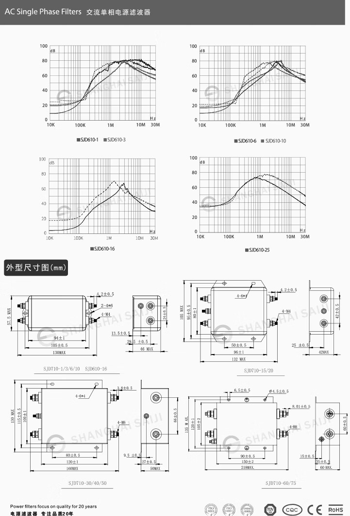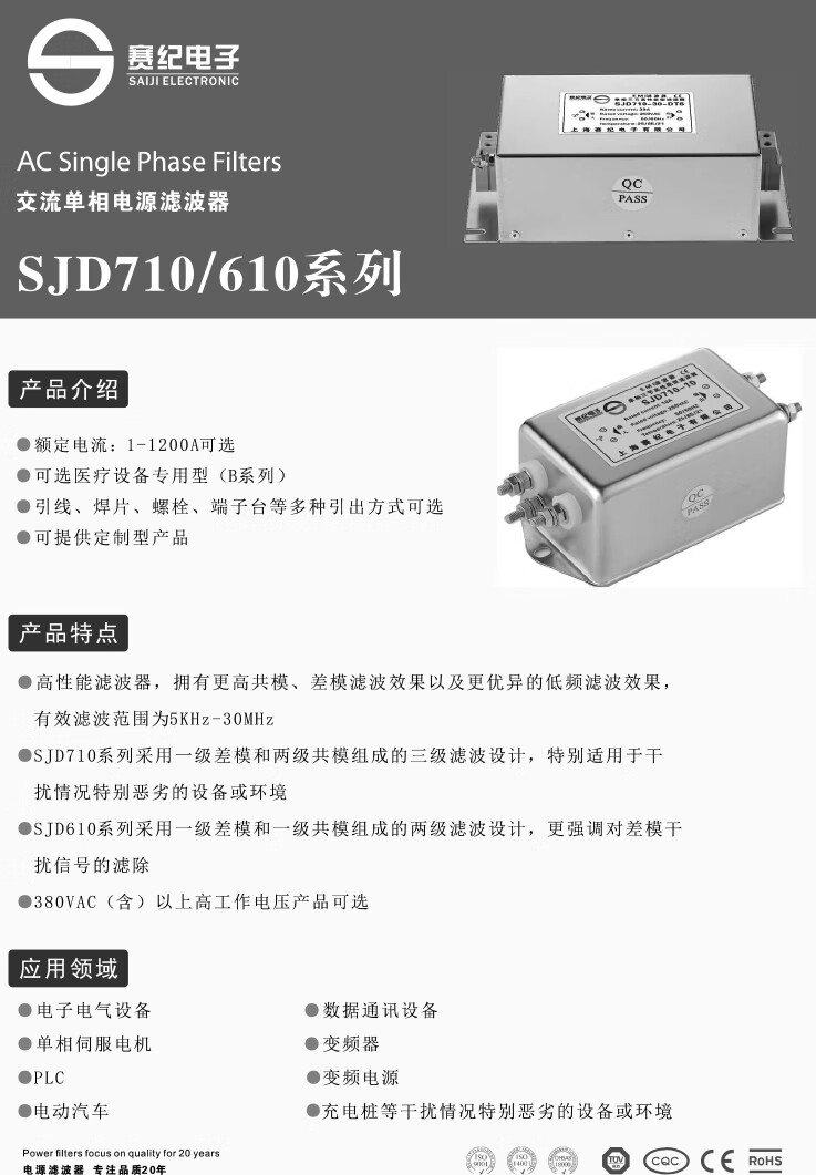 Saiji SJD610-3A single-phase AC variable frequency servo emi power filter 220V25A anti-interference purification EMC double-stage enhanced SJD610-1A filter