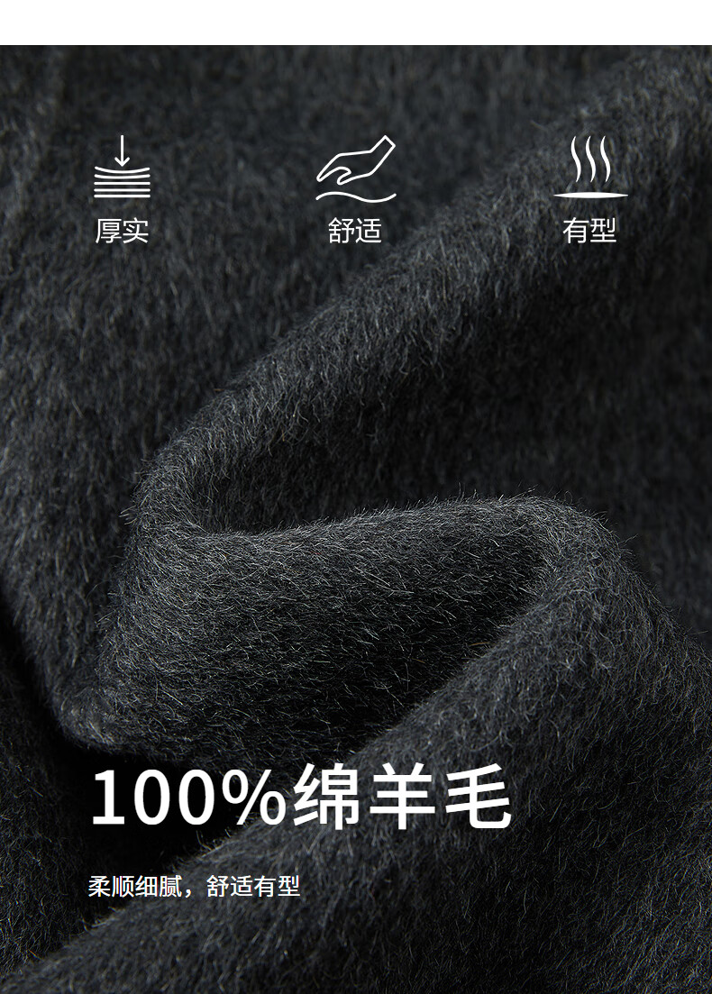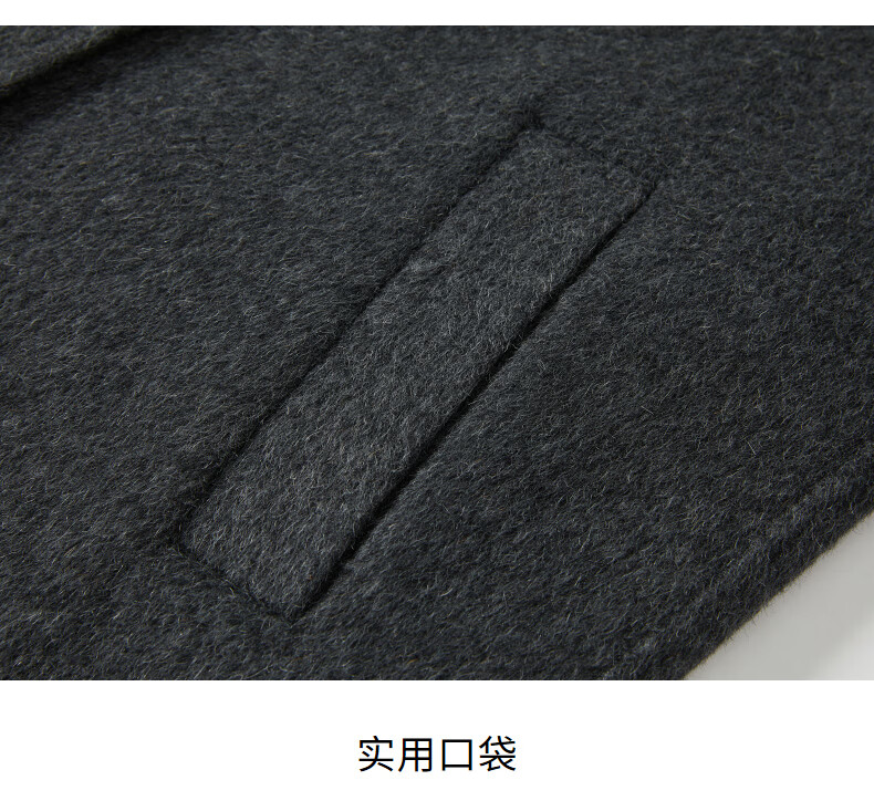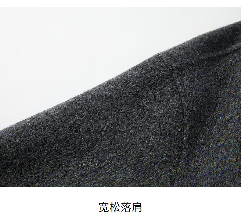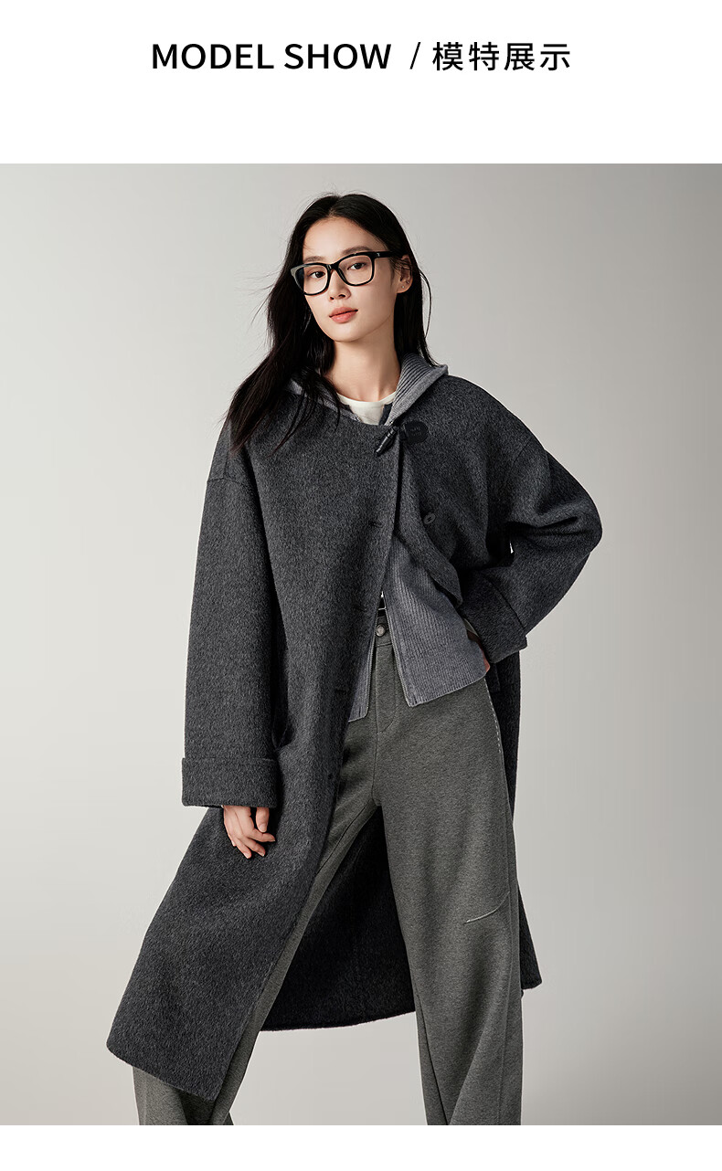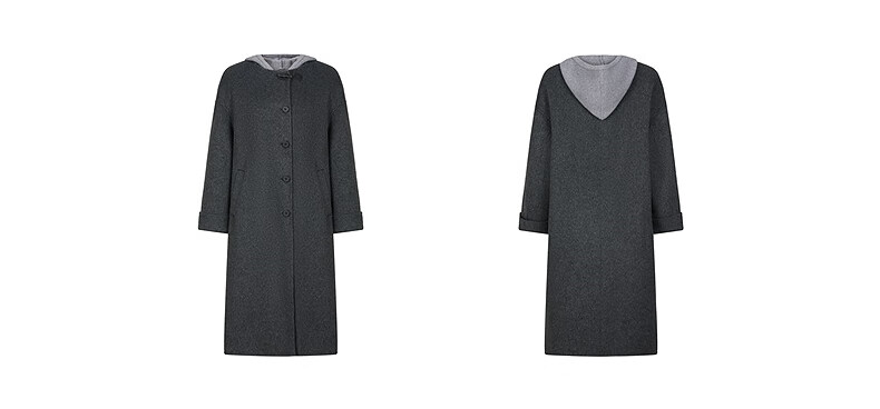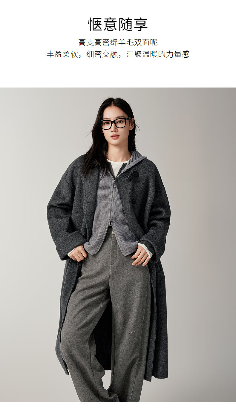 Jiuzi Annako college style 100 wool genuine two-piece hooded collar double-sided woolen coat for women 2025 winter new style dark gray S
