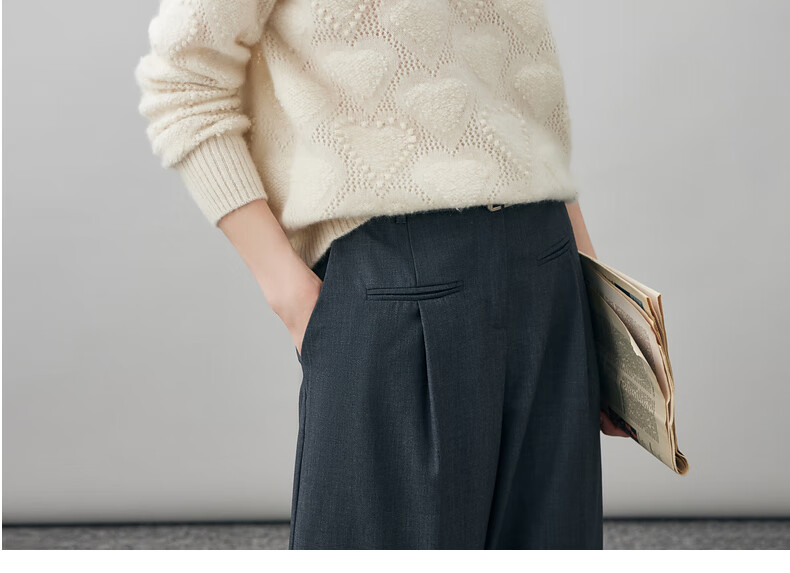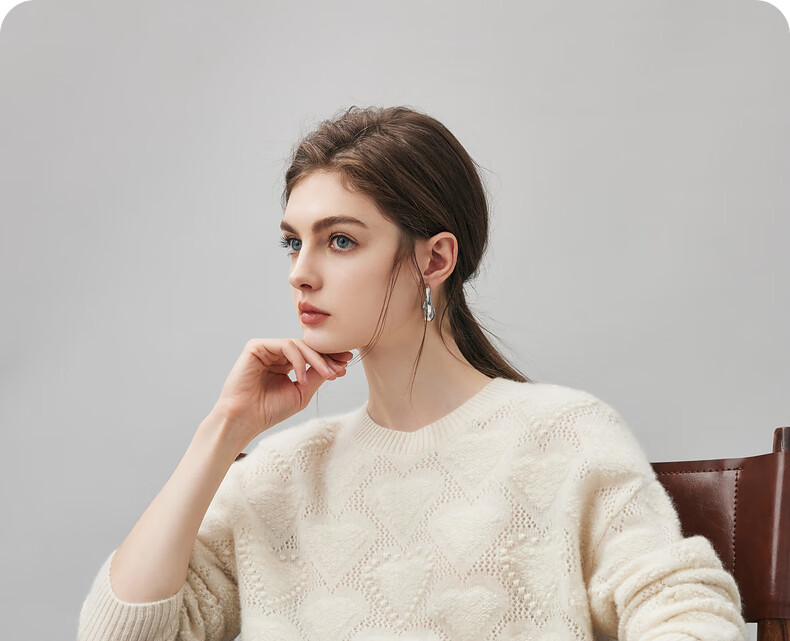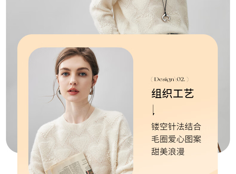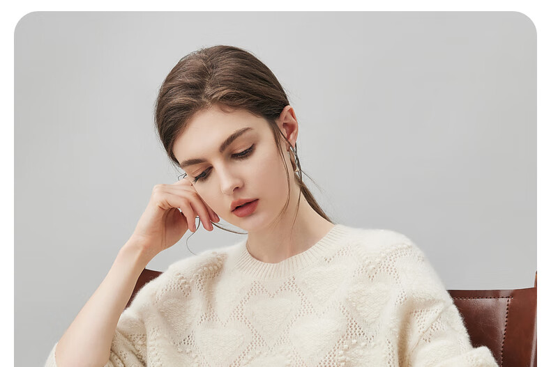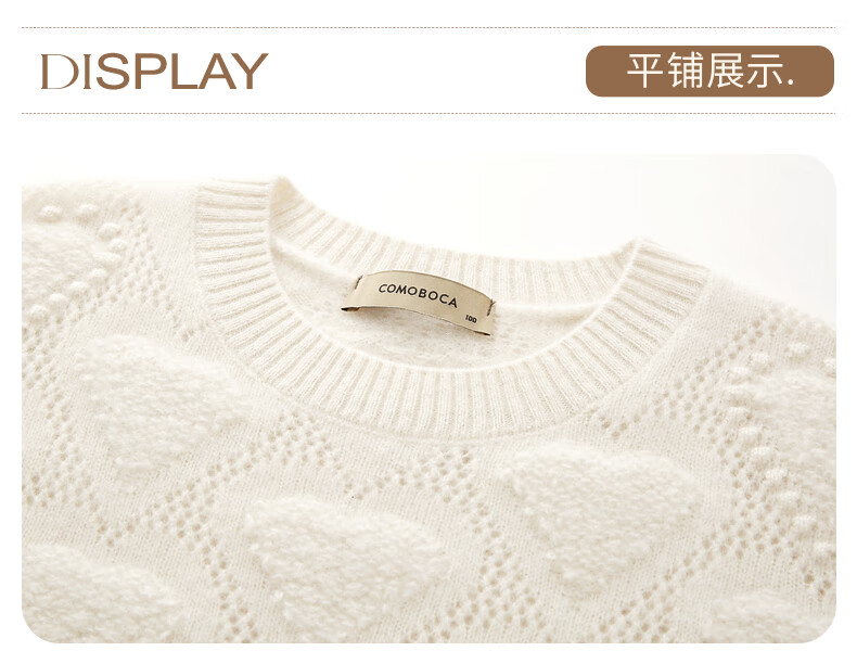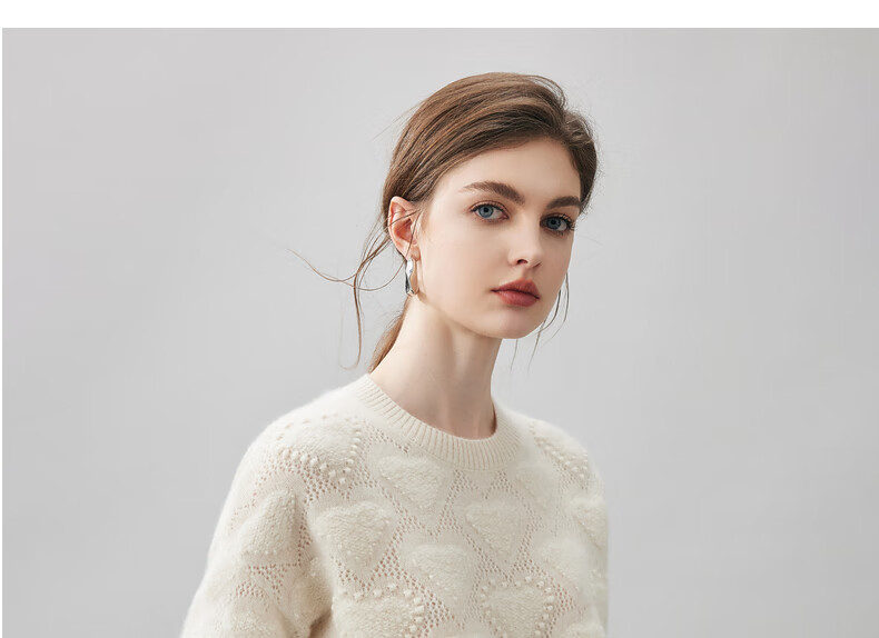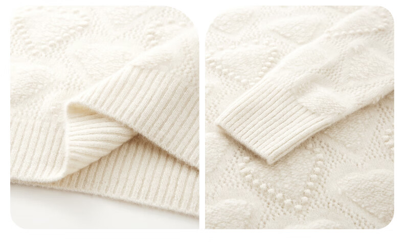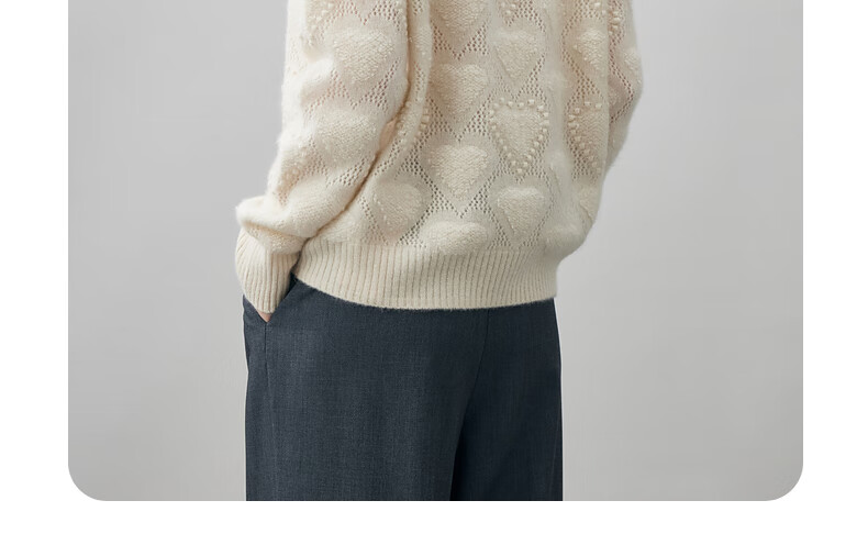 Komenboca 2025 autumn and winter new style hollow love cashmere sweater women's loose knitted sweater round neck bottoming sweater cloud white M