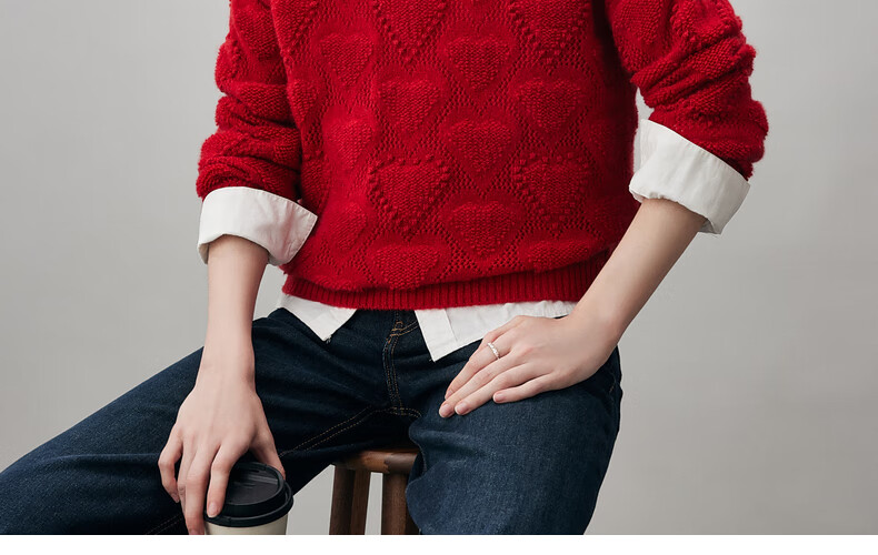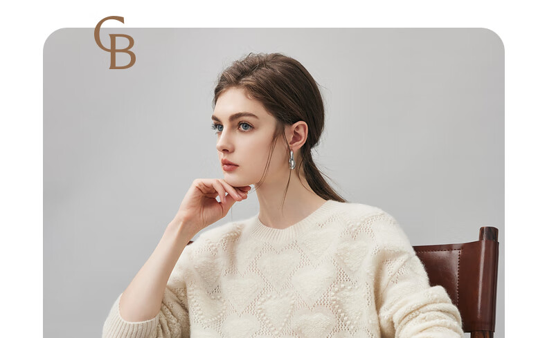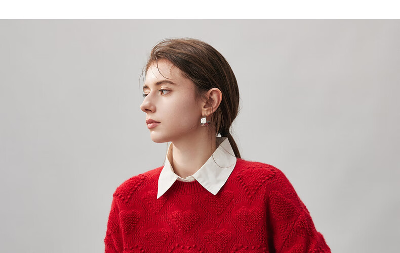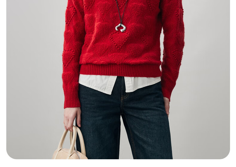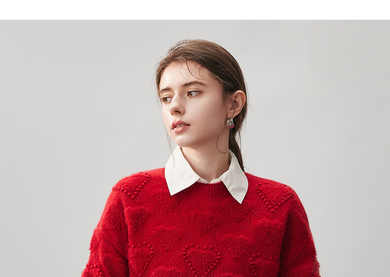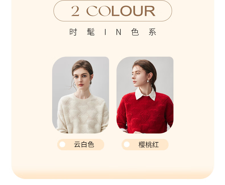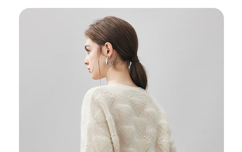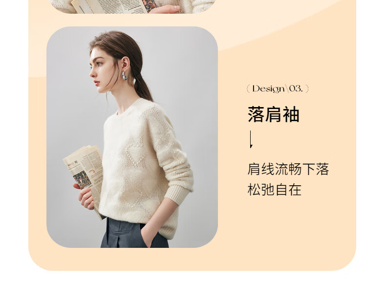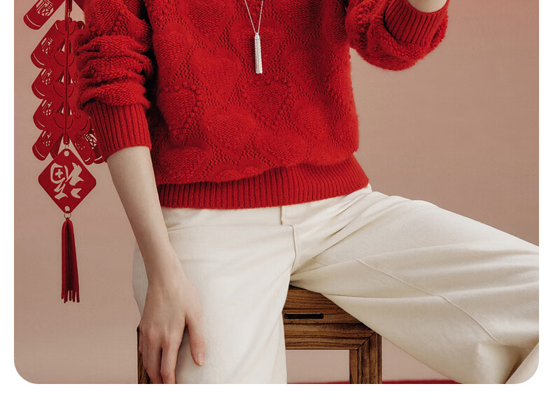 Komenboca 2025 autumn and winter new style hollow love cashmere sweater women's loose knitted sweater round neck bottoming sweater cloud white M