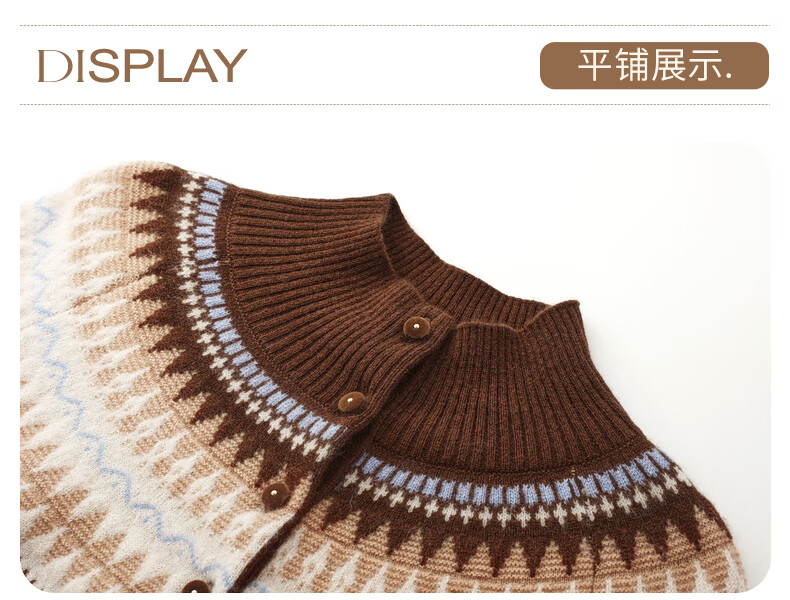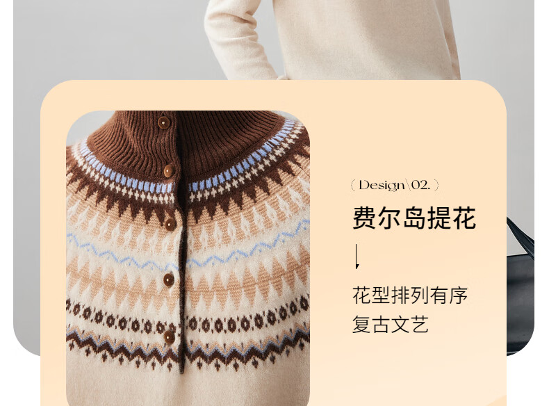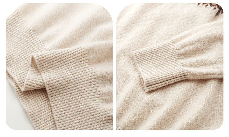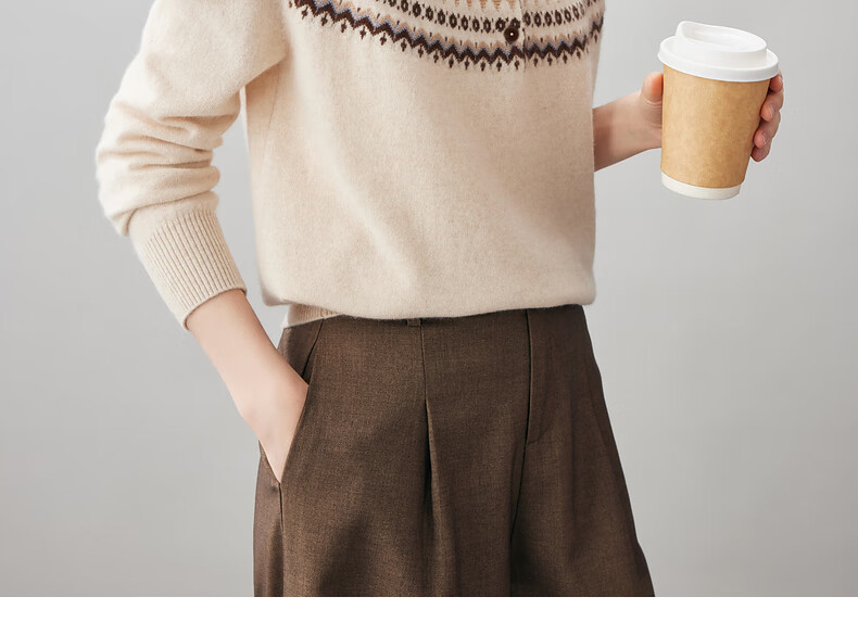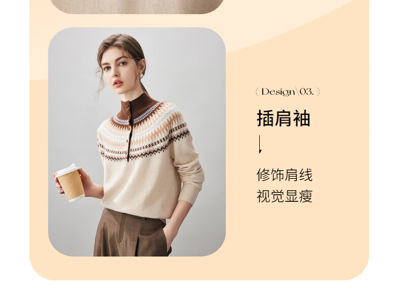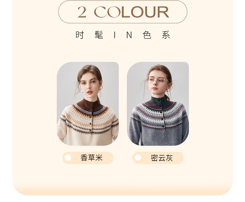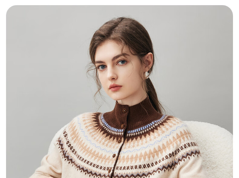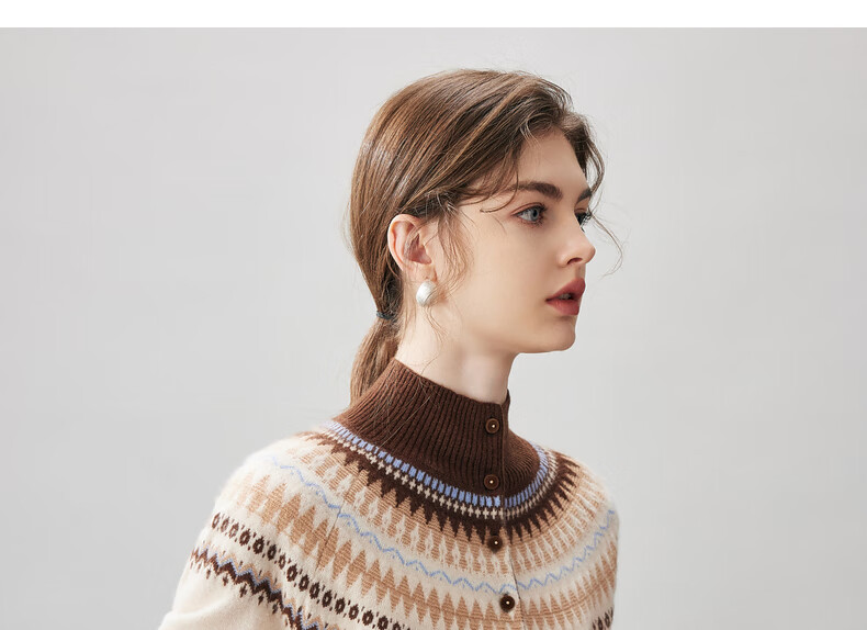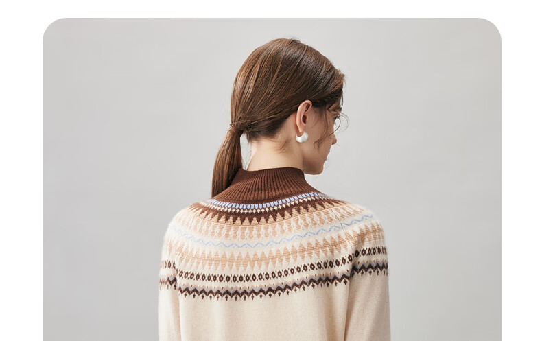 Comonboka 2025 autumn and winter new Fair Isle cashmere sweater women's half turtleneck sweater loose base sweater Vanilla rice L