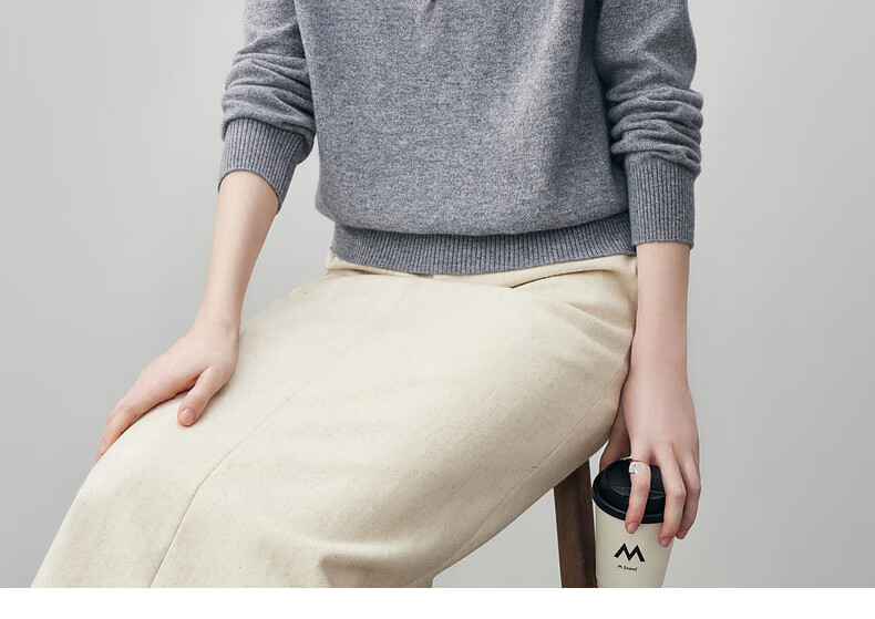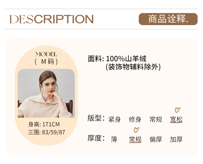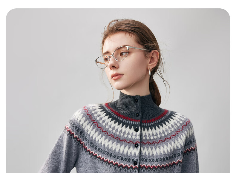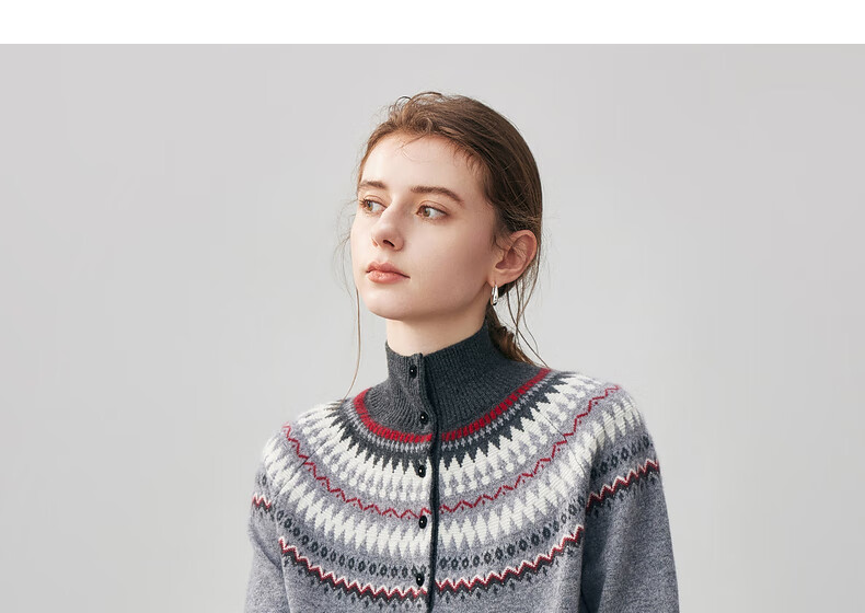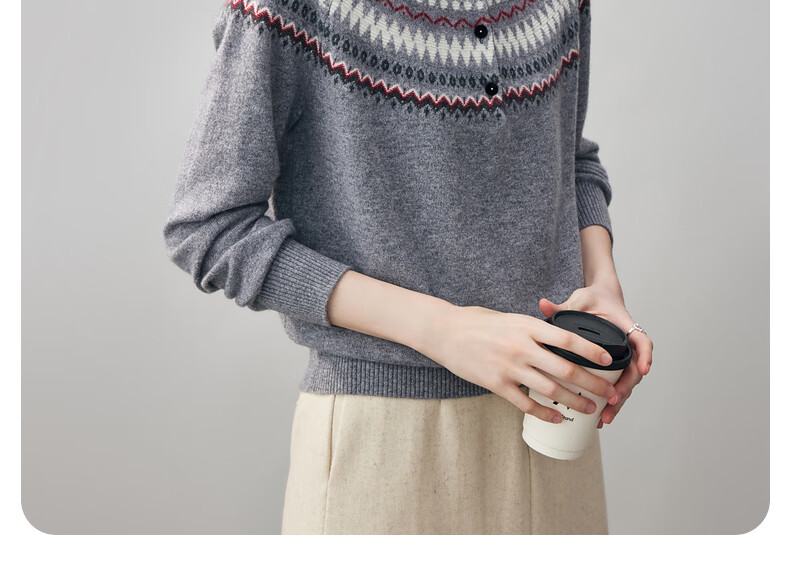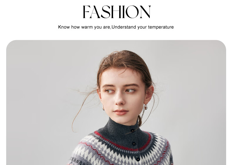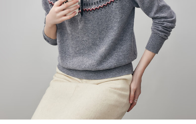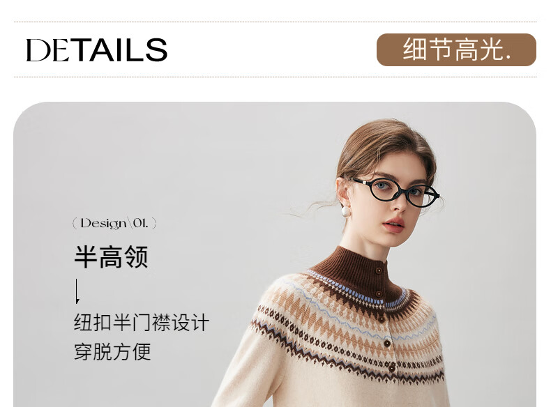 Comonboka 2025 autumn and winter new Fair Isle cashmere sweater women's half turtleneck sweater loose base sweater Vanilla rice L