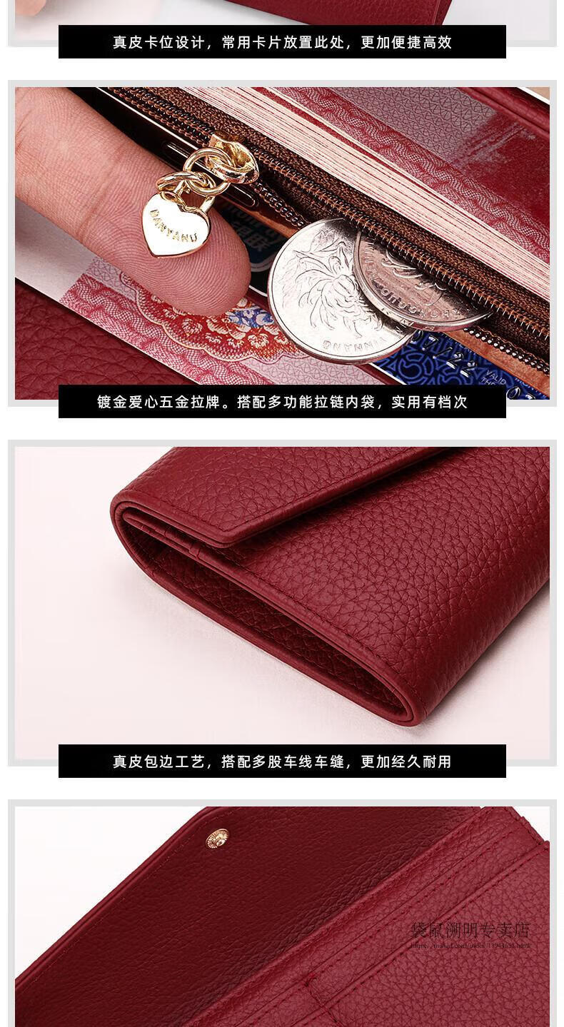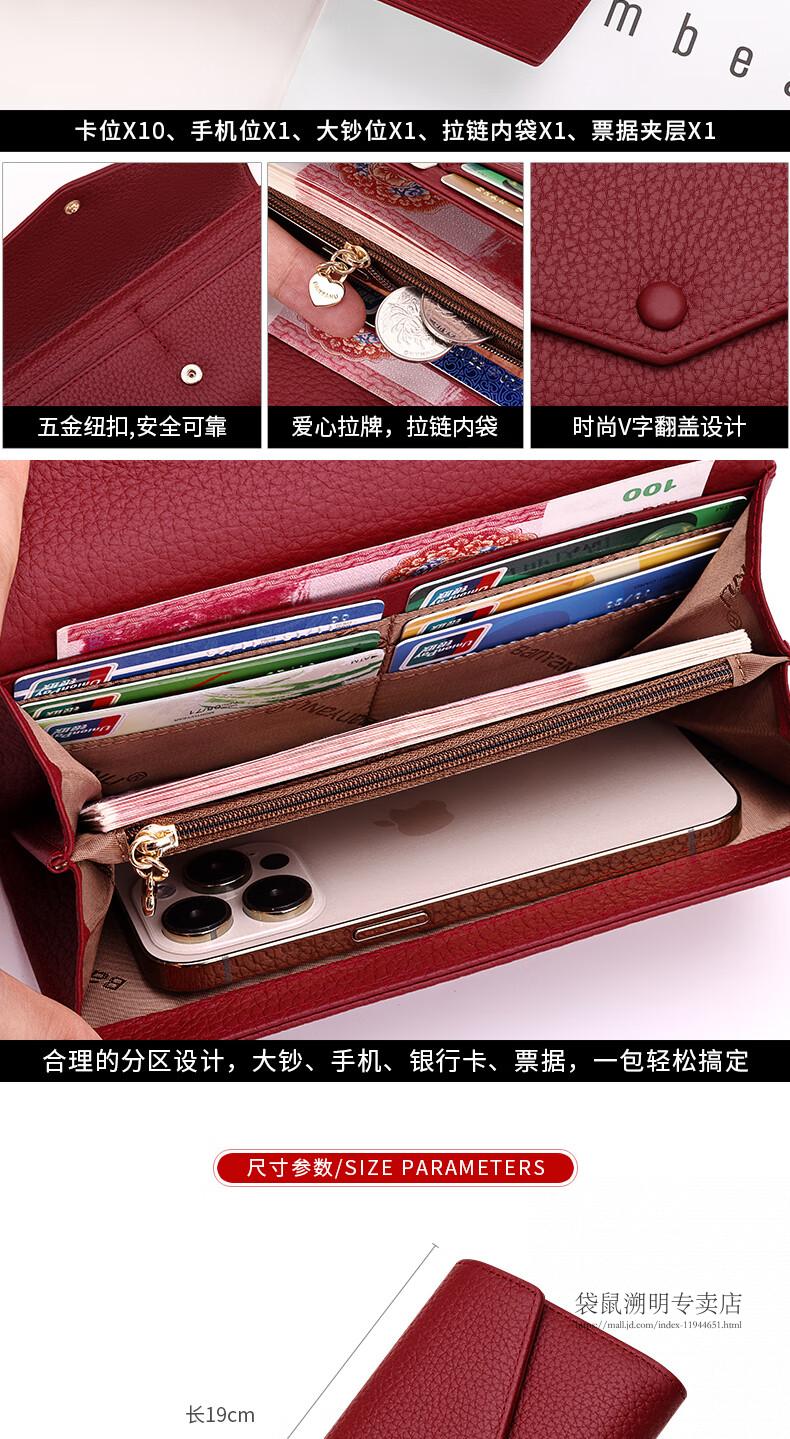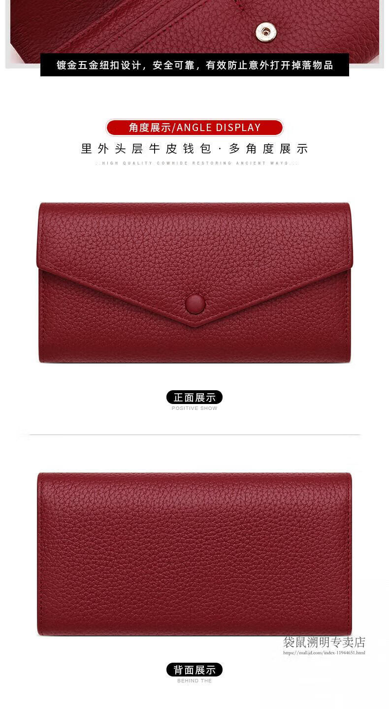 Kangaroo (KANGAROO) wallet female genuine cowhide long style 2025 new wallet soft leather exquisite wallet card holder in one burgundy (first layer cowhide) anti-theft brush