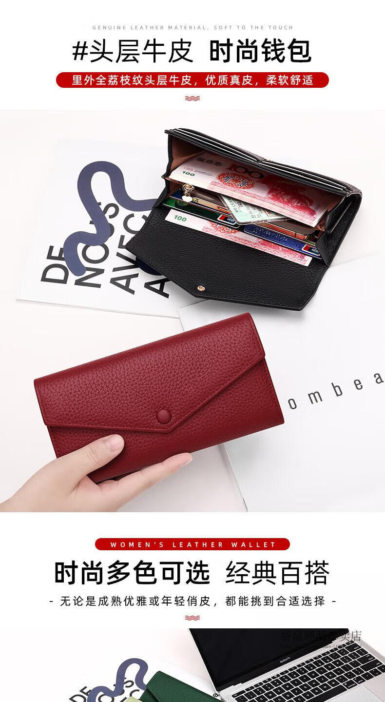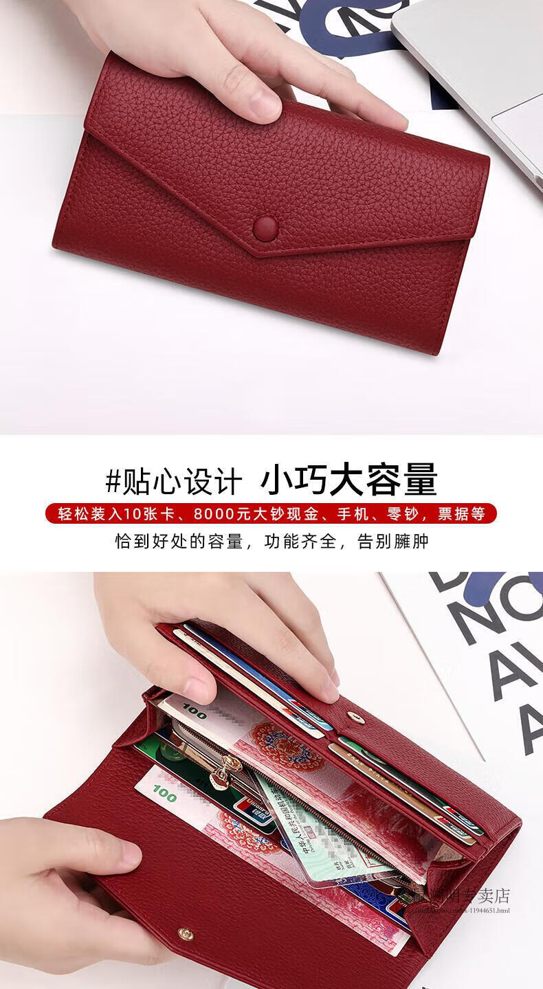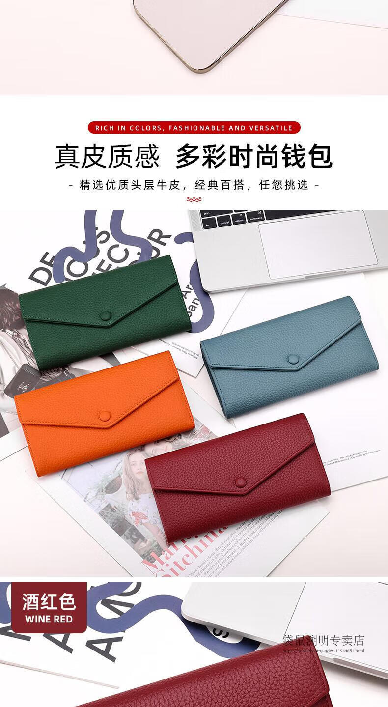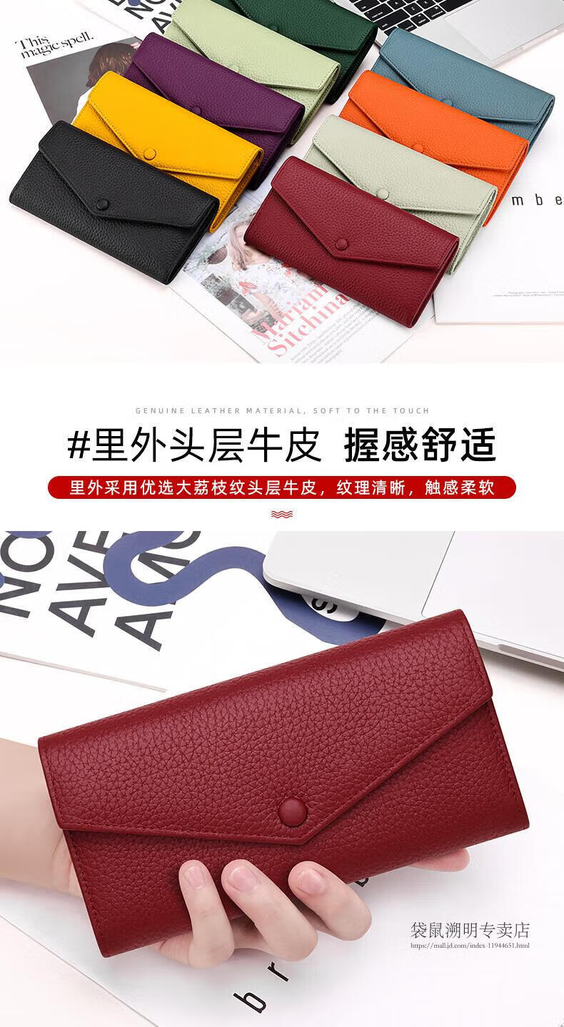 Kangaroo (KANGAROO) wallet female genuine cowhide long style 2025 new wallet soft leather exquisite wallet card holder in one burgundy (first layer cowhide) anti-theft brush