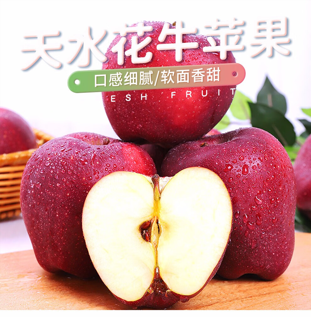 Authentic Gansu Tianshui Huaniu Apple Fresh Fruit Baby Food Supplement Seasonal Red Pink Noodles Sand Sweet Scrape Mud Tianshui Huaniu Apple with Box 2 Jin 65mm-70mm