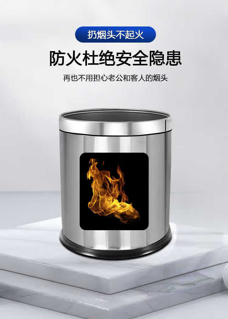 Miyi 304 stainless steel trash can commercial hotel flame retardant KTV outdoor double-layer bathroom living room custom LOGO 10L stainless steel thickened single layer iron paint custom l