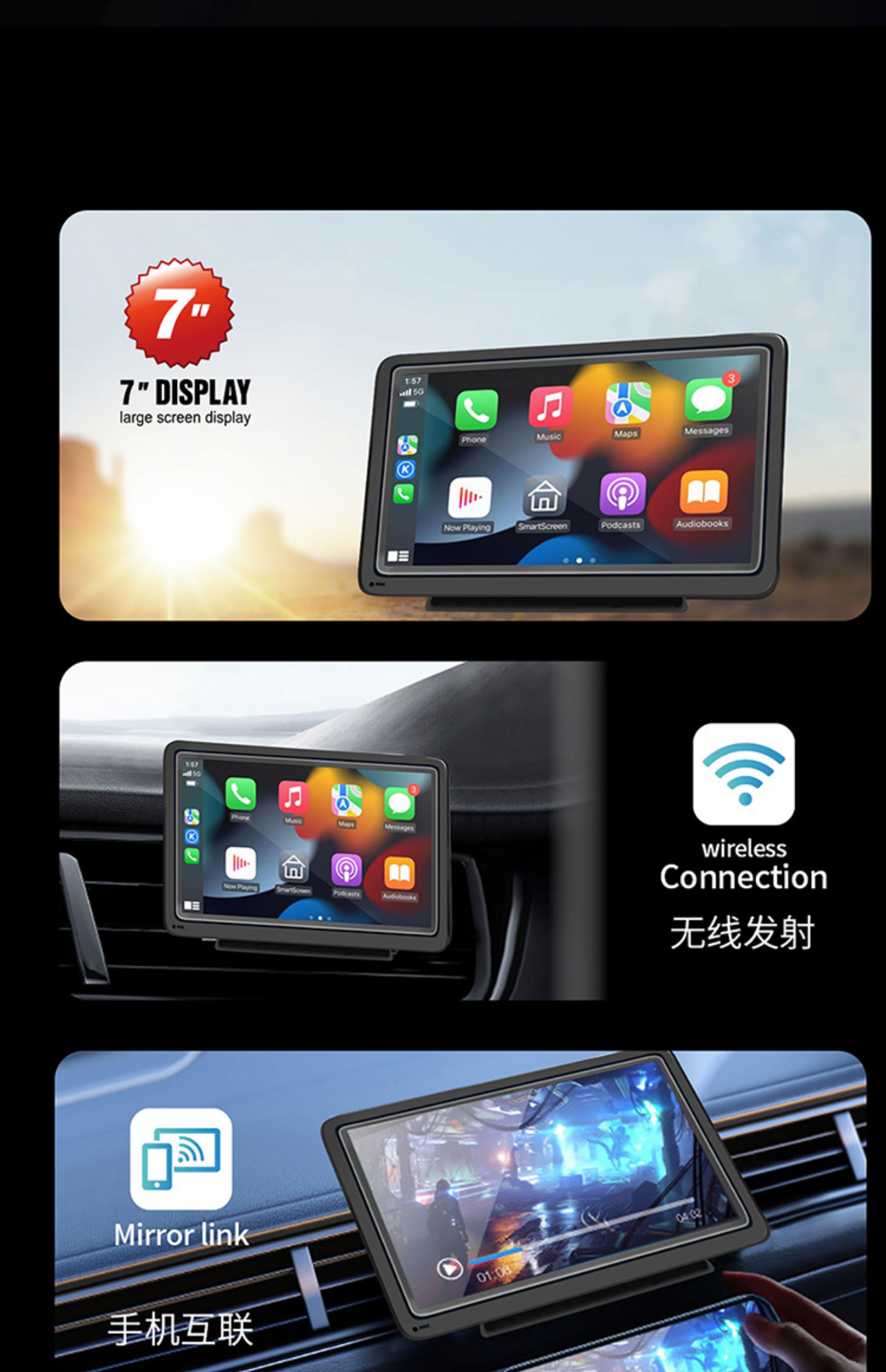 Car MP5 player carplay interconnected navigation Android mobile phone screen U disk video playback reversing rear view The host comes standard with reversing rear view