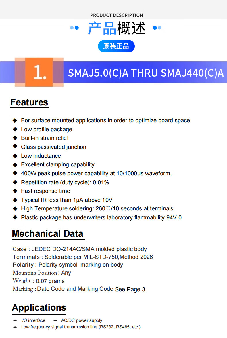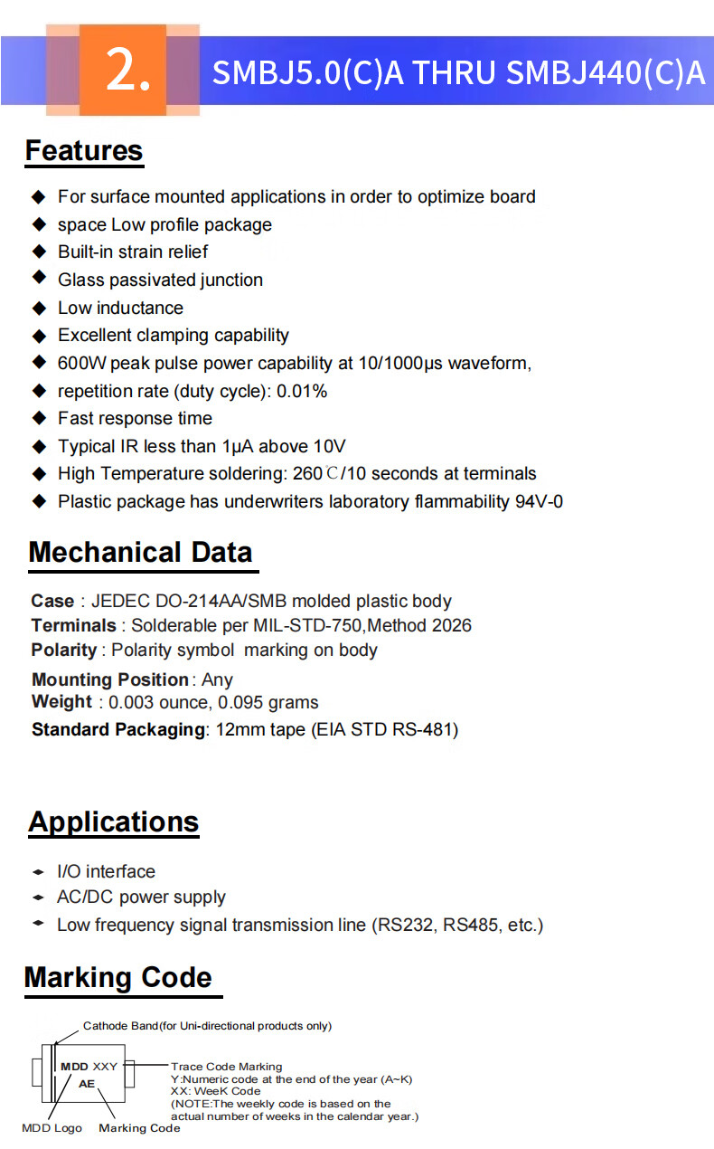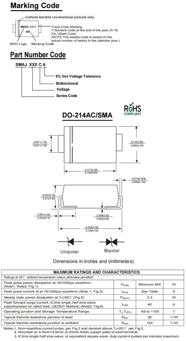 DZQJ MDD Chenda TVS diode SMAJ5.0/6.0/6.5/7.0/**/**/**/**/24/30/58a/ca Chenda SMAJ16CA silk screen XP bidirectional (20 pieces) No specifications