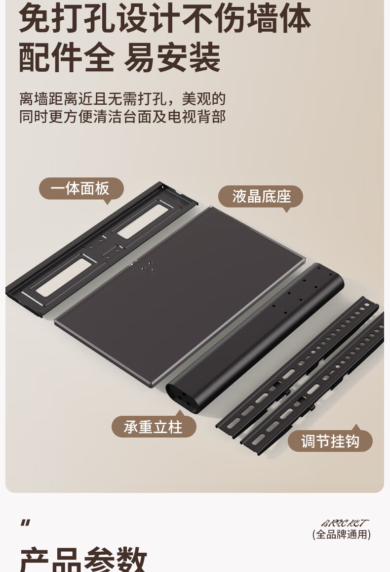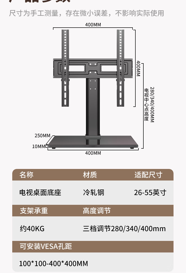Wanjianiu universal TV bracket floor-standing TV hanger TV base punch-free desktop heightening bracket suitable for Skyworth Hisense Xiaomi TCL Thunderbird standard / thickened 26-55 inches height adjustable + accessories