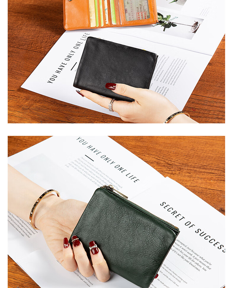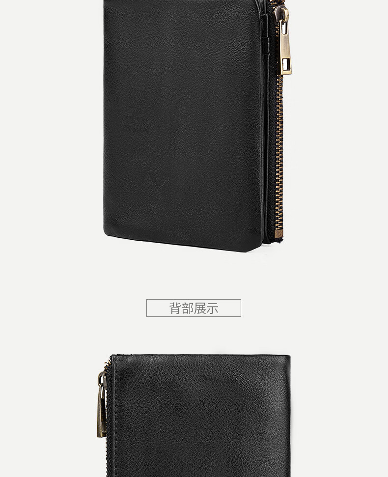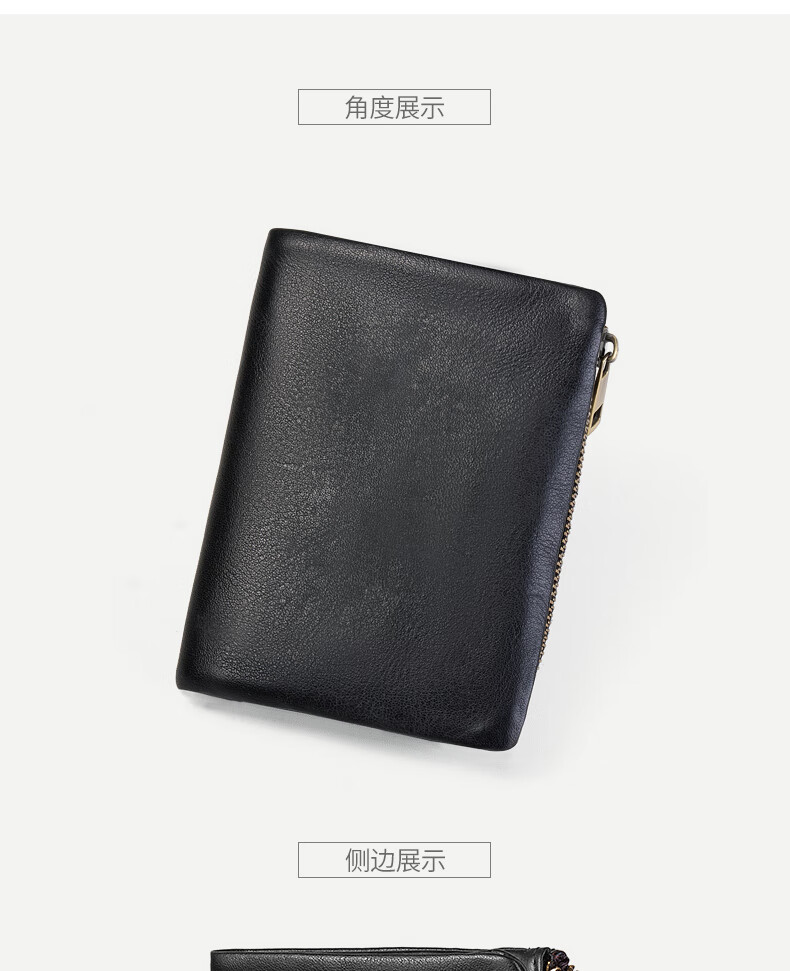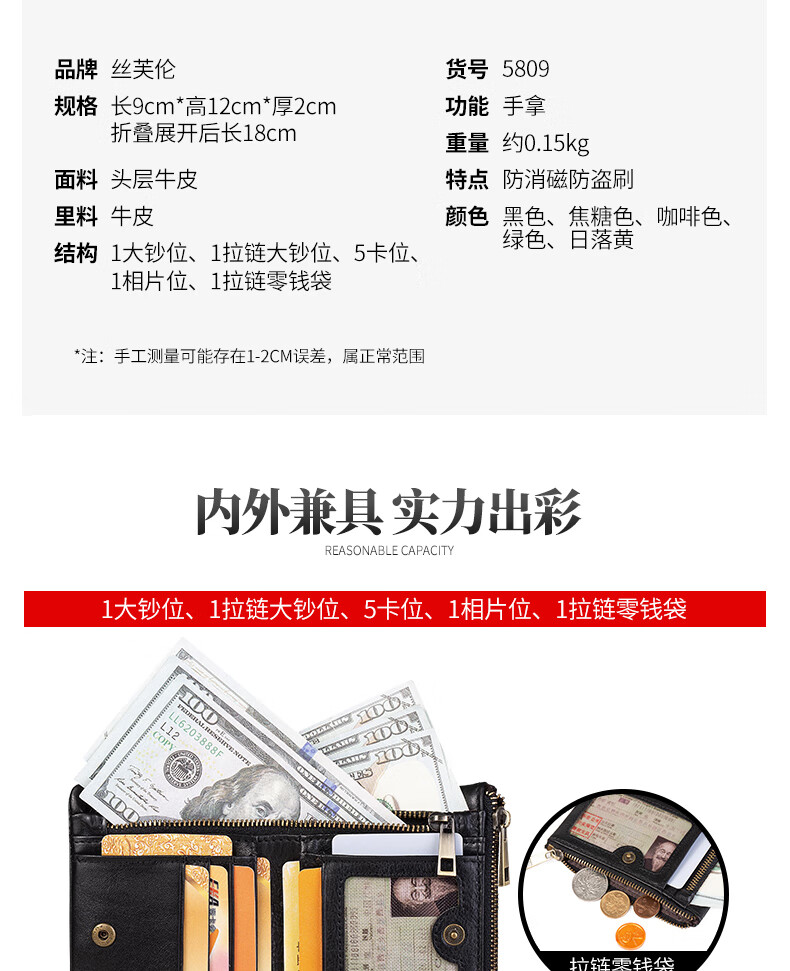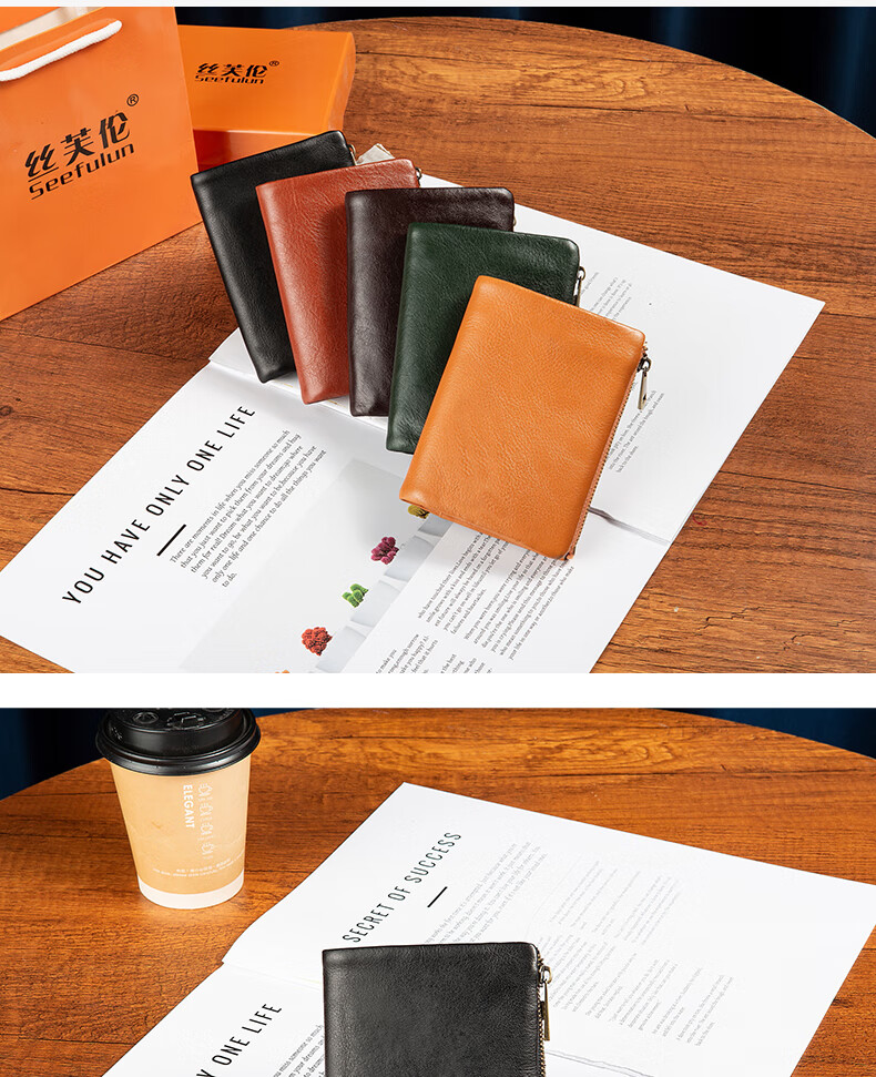 Sefulun (seefulun) pure cowhide short folding wallet with double bill slots, unisex, ultra-thin, portable, genuine leather inside and outside, two-fold wallet, black - genuine leather inside and outside, double bill slots