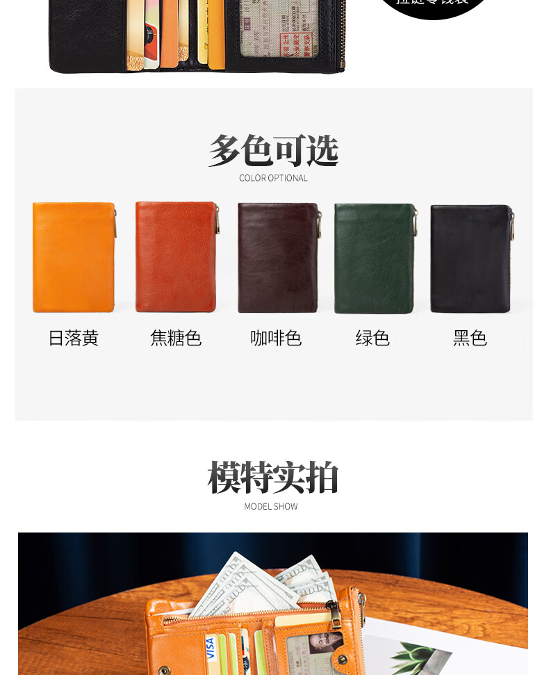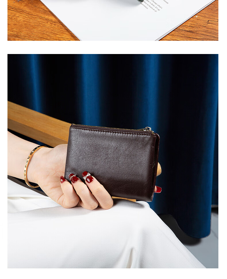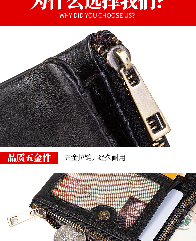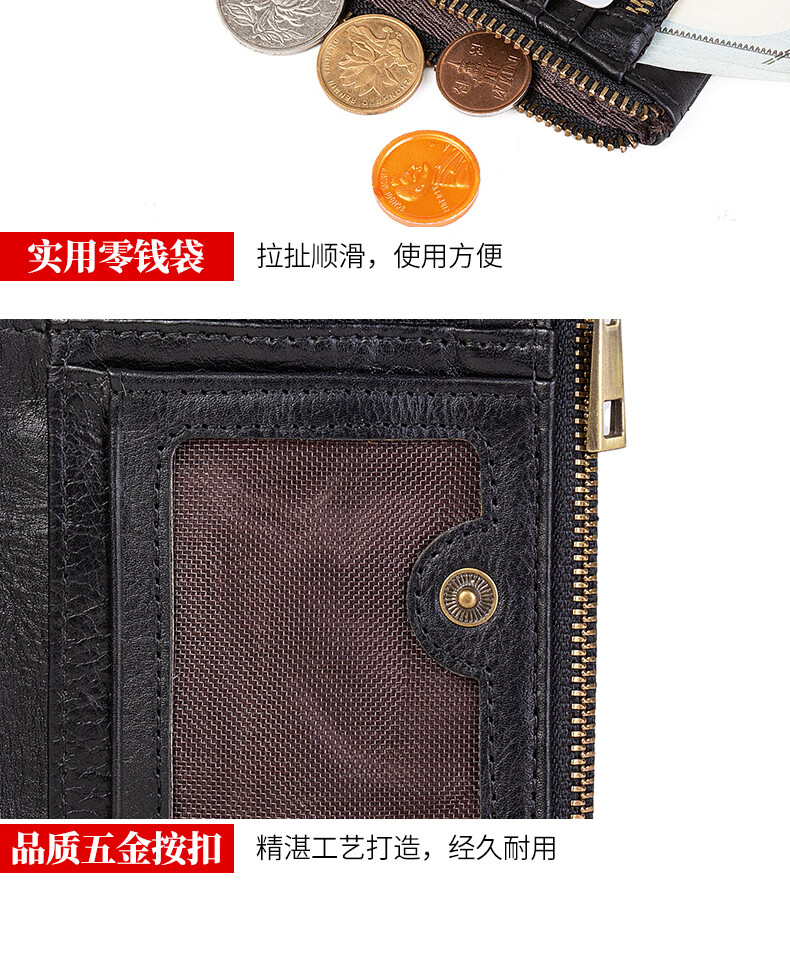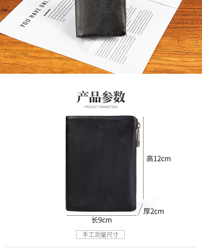 Sefulun (seefulun) pure cowhide short folding wallet with double bill slots, unisex, ultra-thin, portable, genuine leather inside and outside, two-fold wallet, black - genuine leather inside and outside, double bill slots
