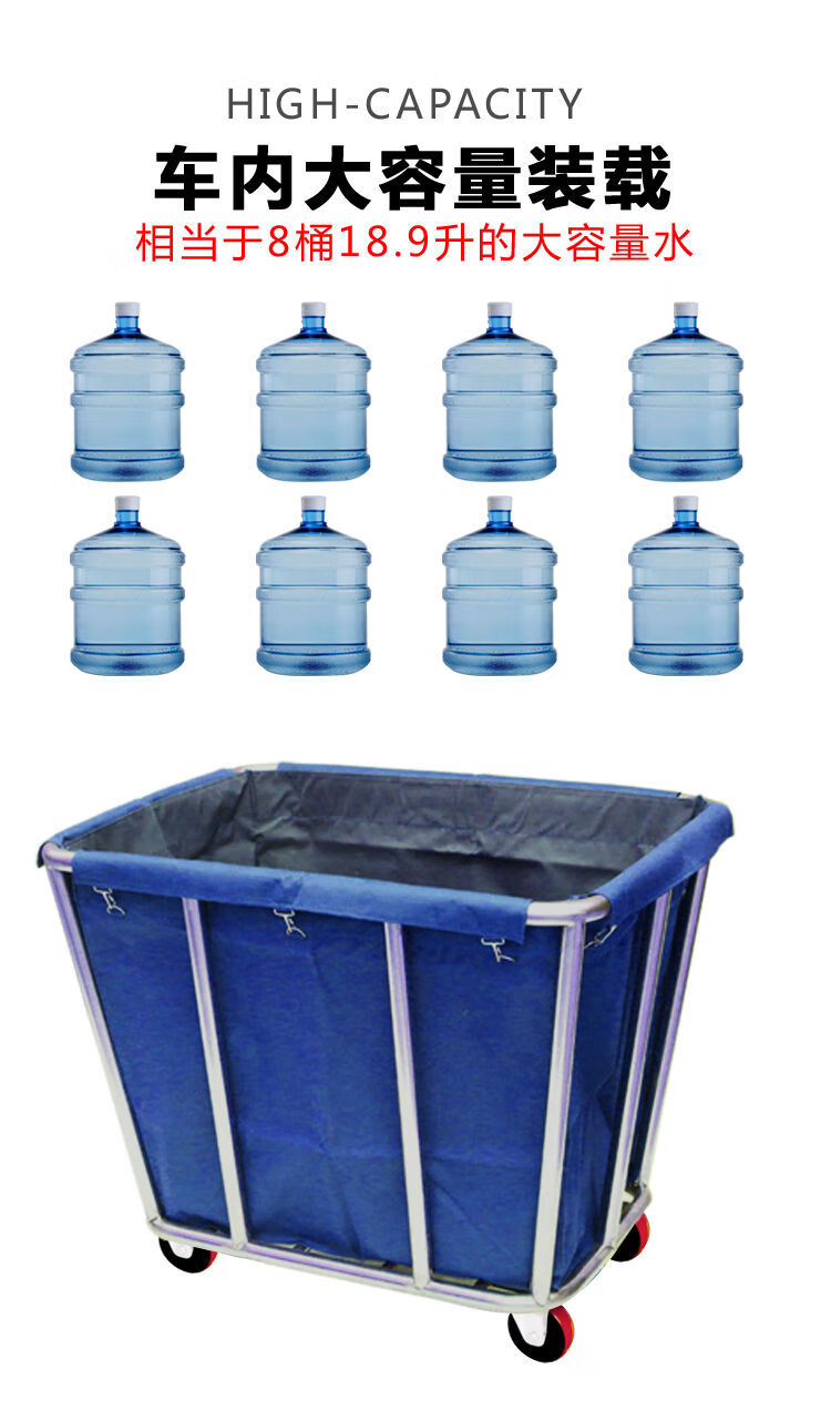 Linen cart for hotel rooms, multifunctional stainless steel cleaning bag storage bag, laundry room, dry cleaning shop, hotel, thickened tapered 4-tube blue