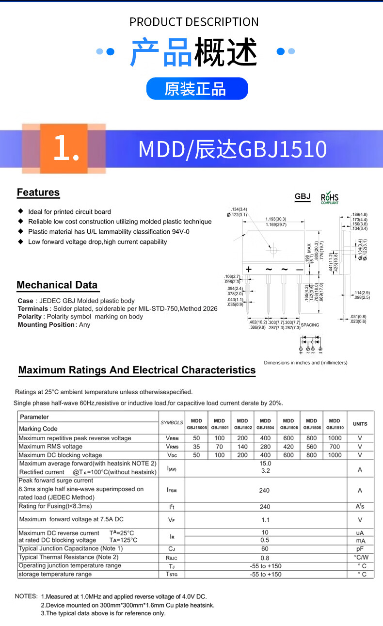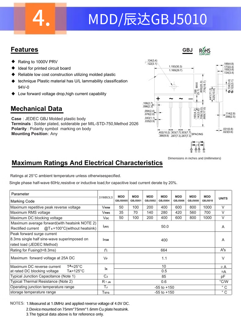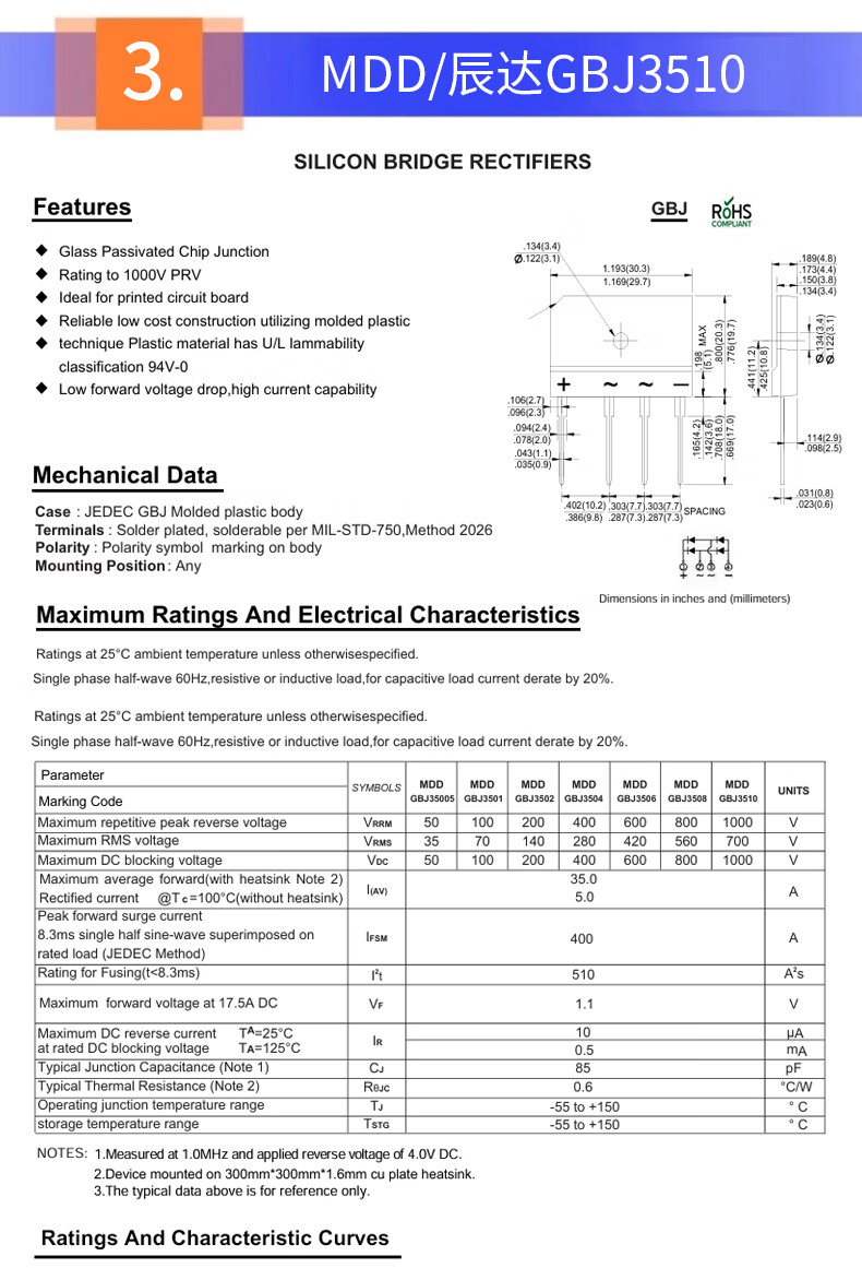 Original MDD Chenda GBJ1510 GBJ2510 GBJ3510 GBJ5010 induction cooker bridge stack flat bridge rectifier MDD/Chenda GBJ3510 no specifications
