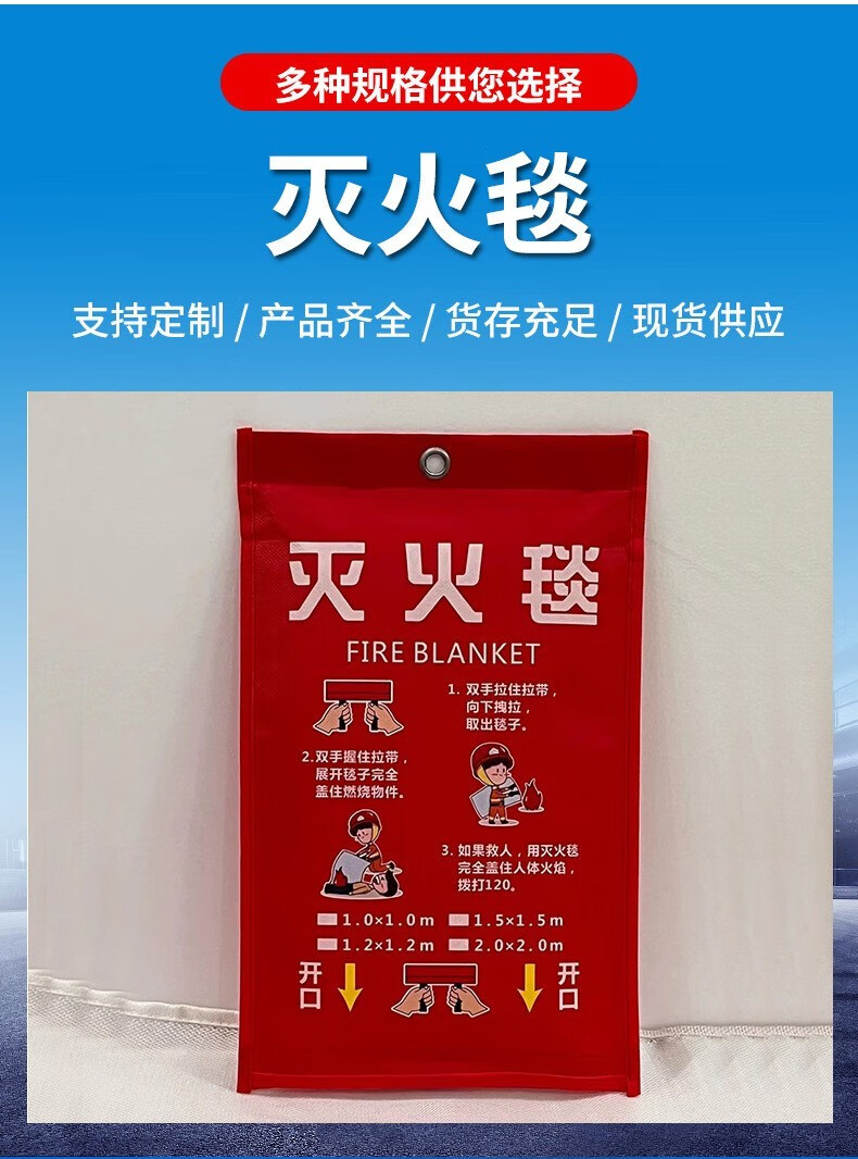 Fire blanket thickened thermal insulation high temperature gas station commercial outdoor flame retardant fiberglass silicone cloth fire certification 1.5m*1.5m national standard thickened