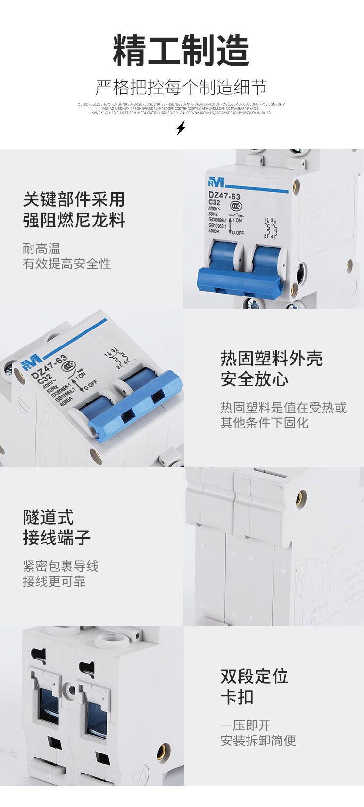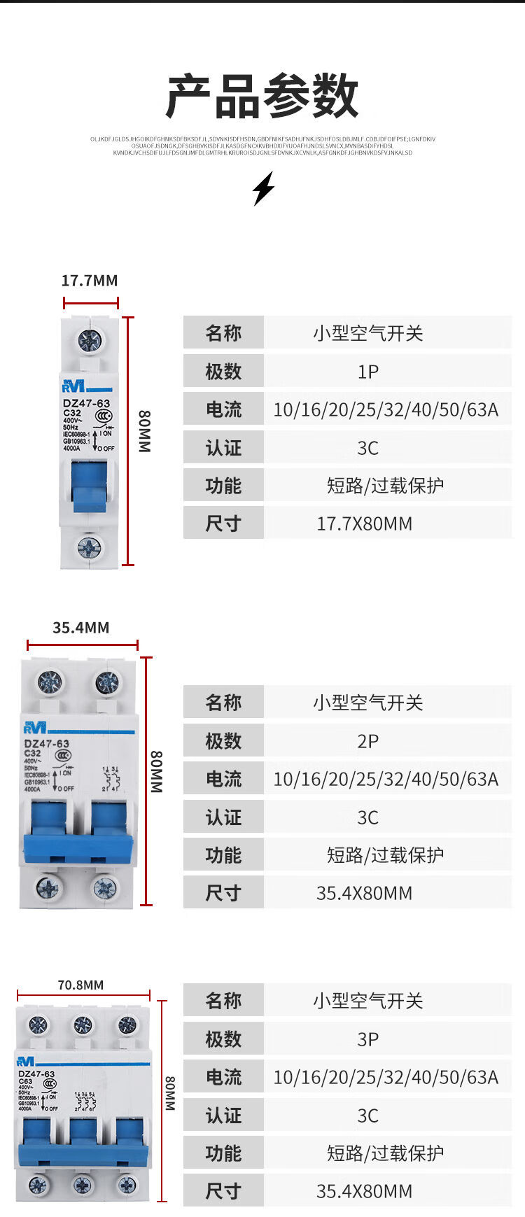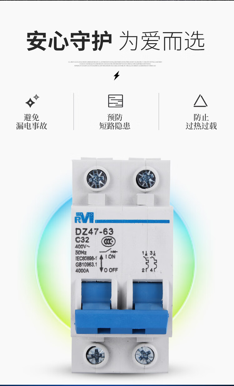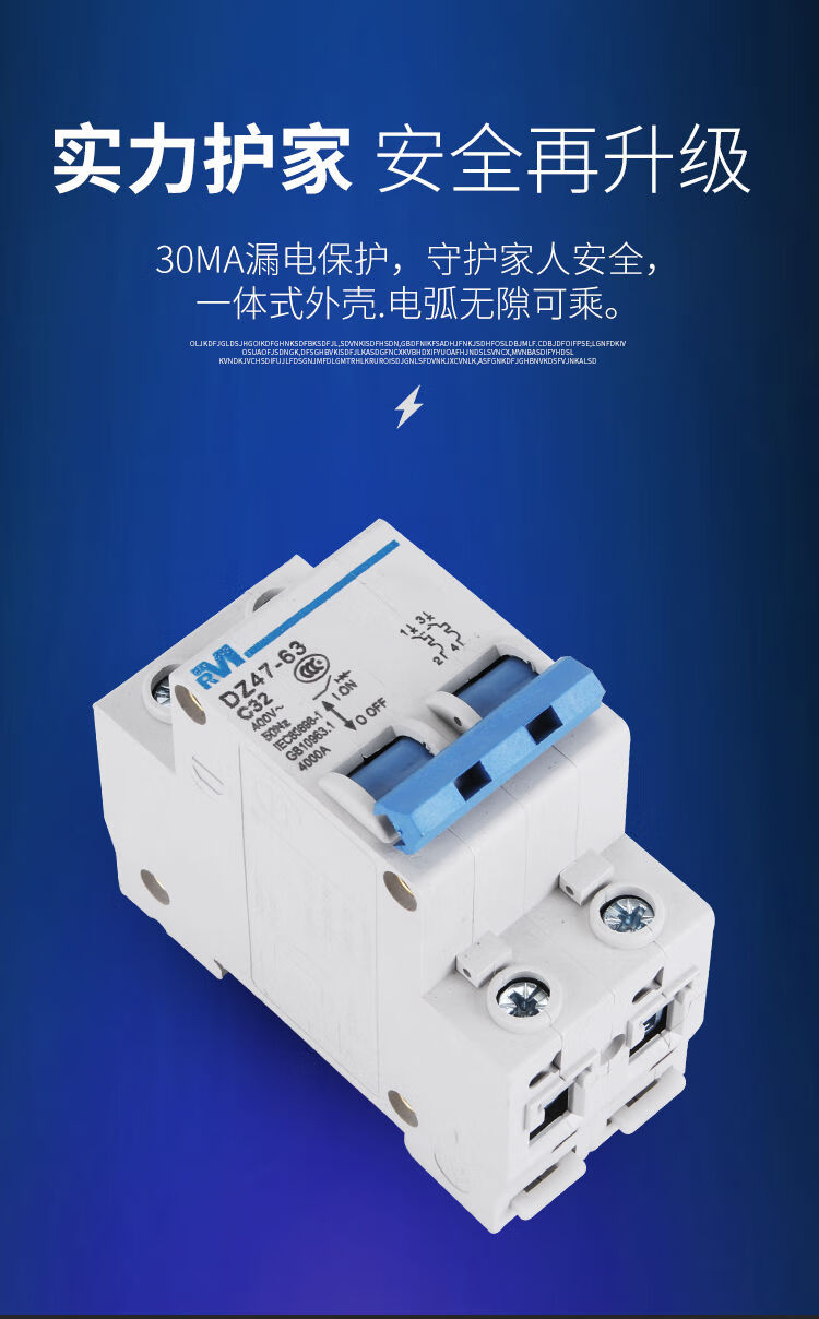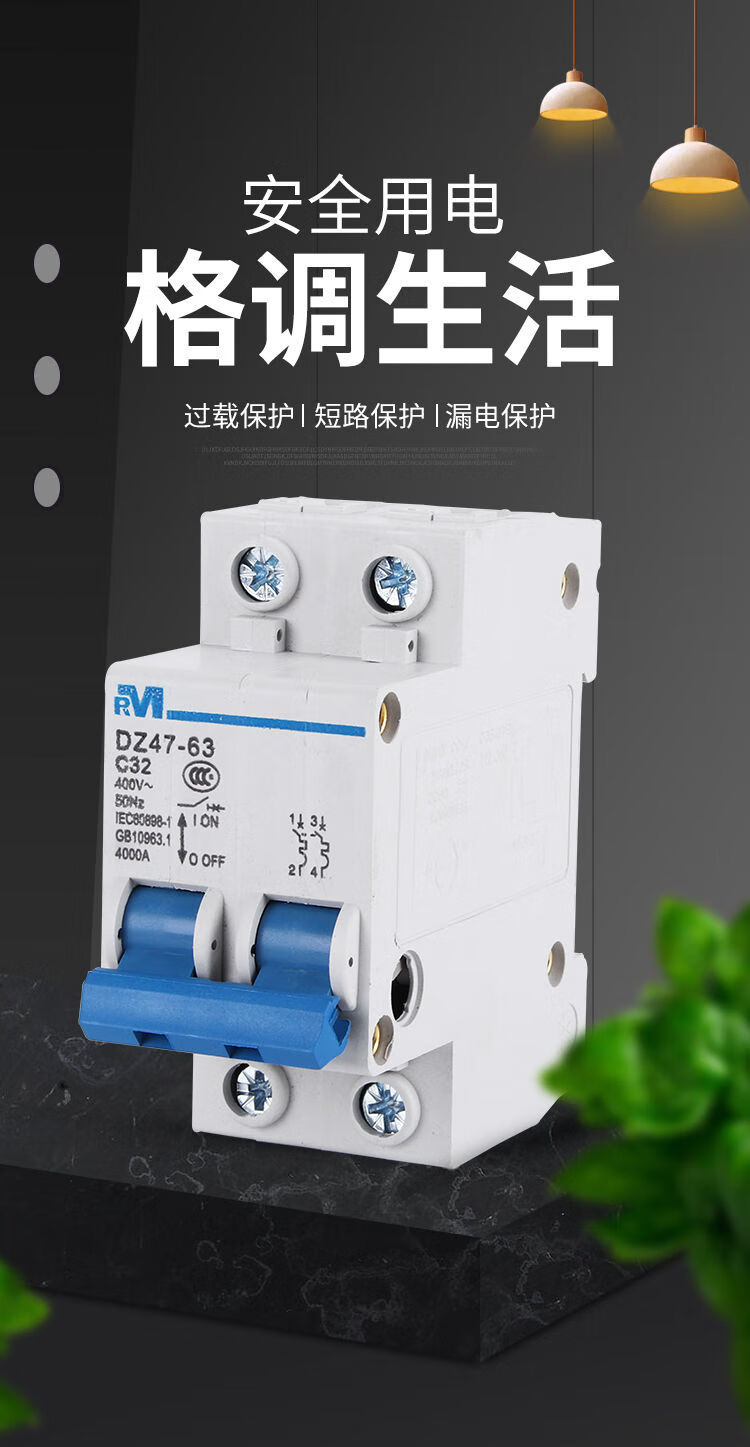 Shanghai People's DZ47-63 1P2P3P4P air switch household C45 small circuit breaker 63A6A32 air switch 63A 3P