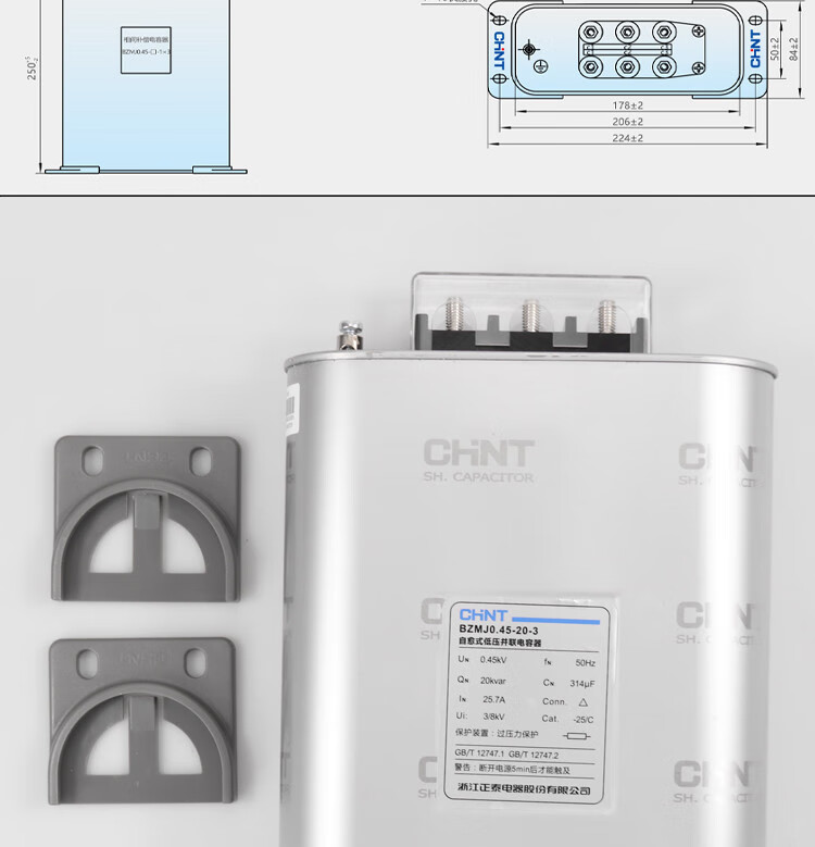 Chint BZMJ capacitor 0.45 0.4 reactive power compensation parallel self-healing low voltage 450V reactive power compensation 15KV BZMJ 0.45-15-3