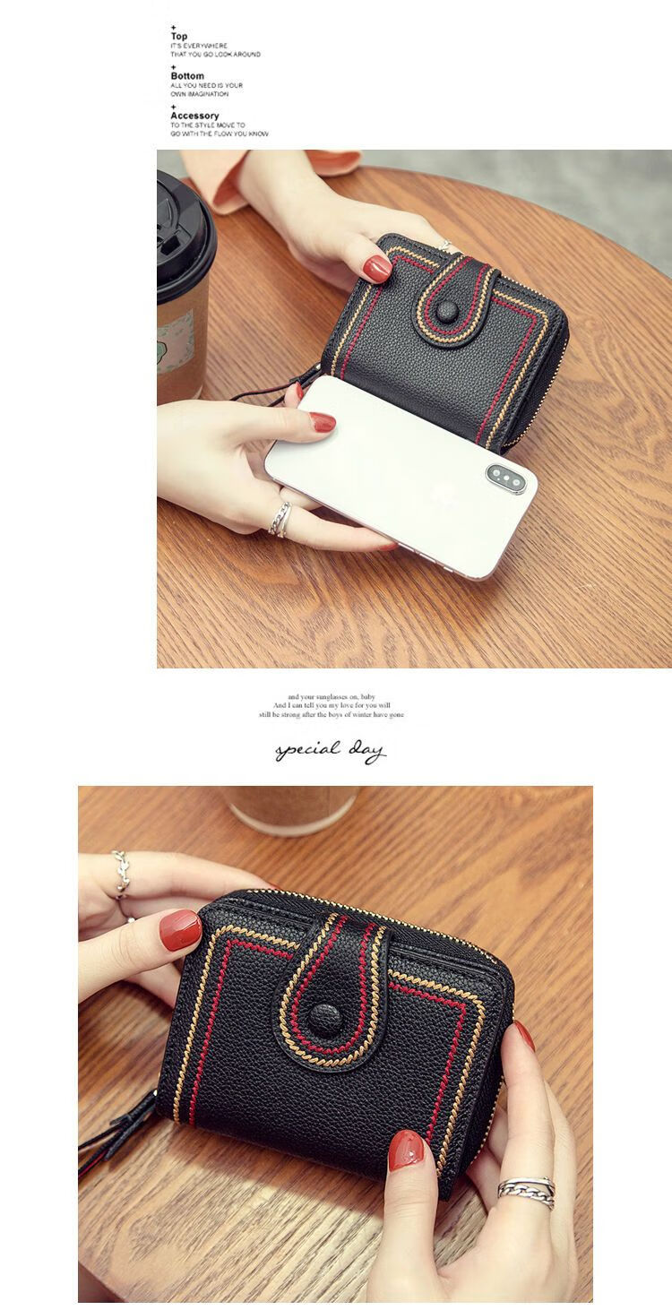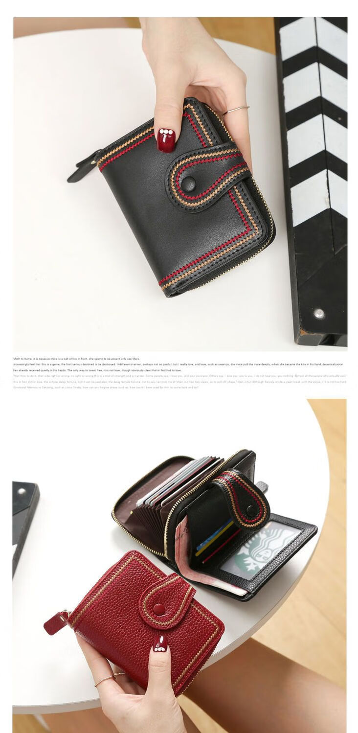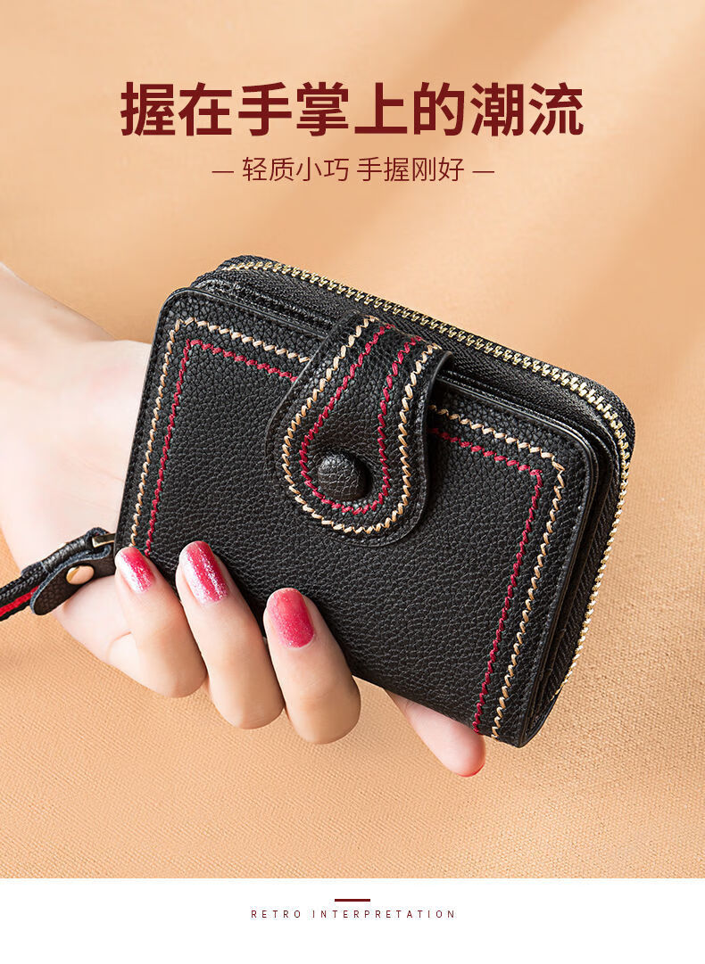 Jiayin 2025 new fashion small wallet short women's anti-theft brush multi-card slot card bag soft leather wallet women's short wallet CX-256 black