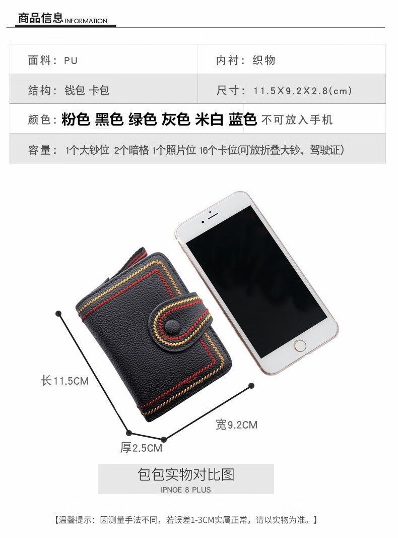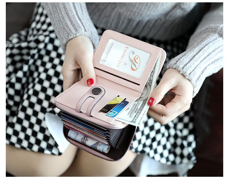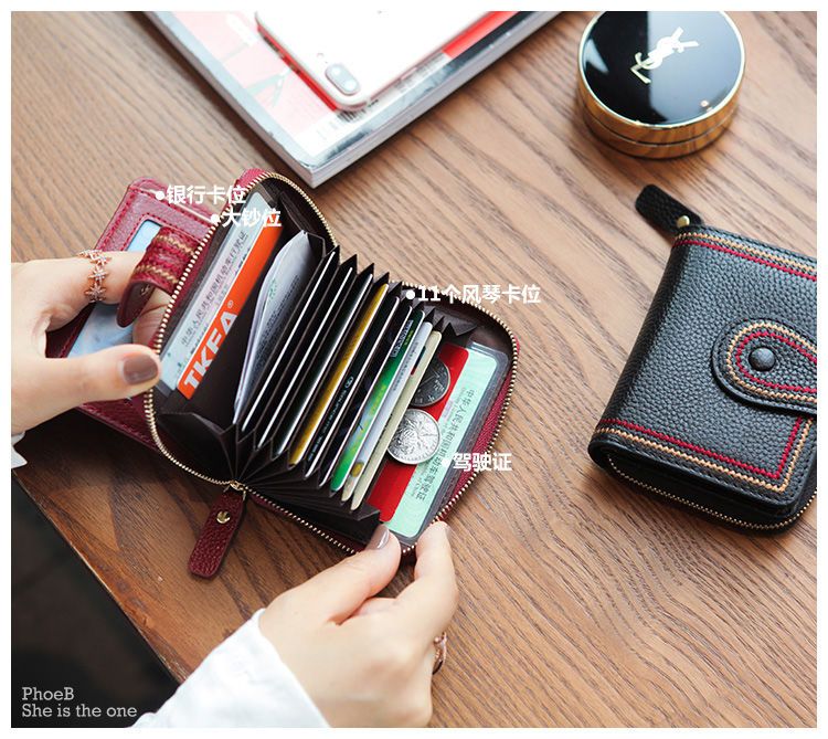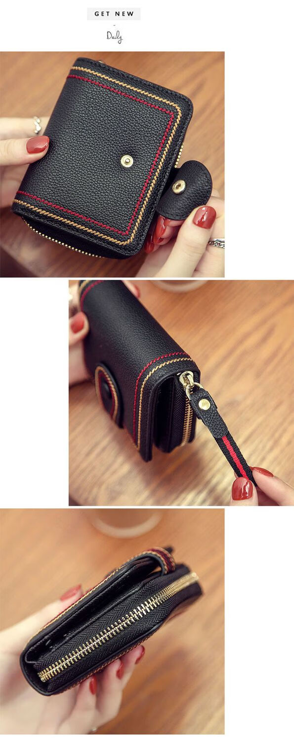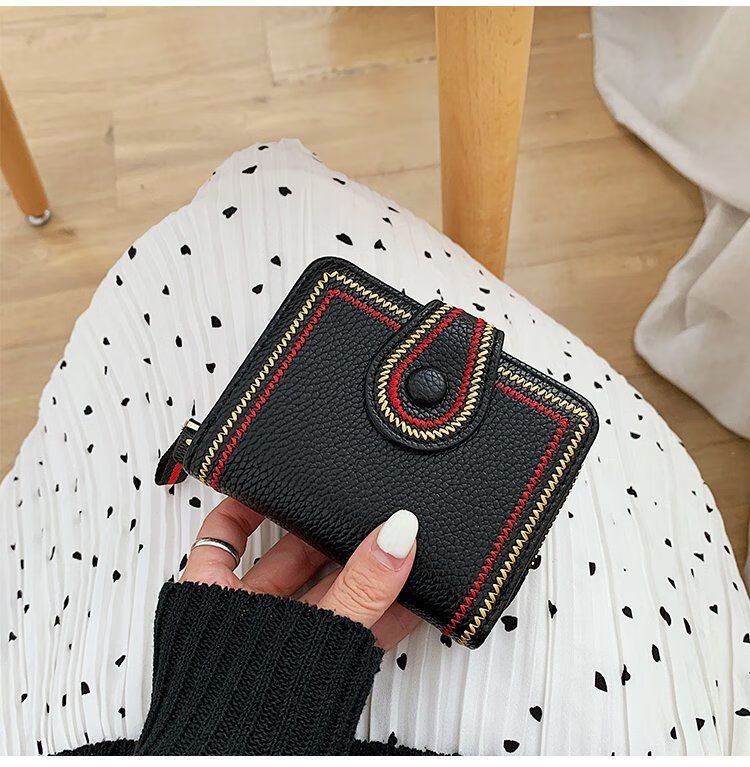 Jiayin 2025 new fashion small wallet short women's anti-theft brush multi-card slot card bag soft leather wallet women's short wallet CX-256 black