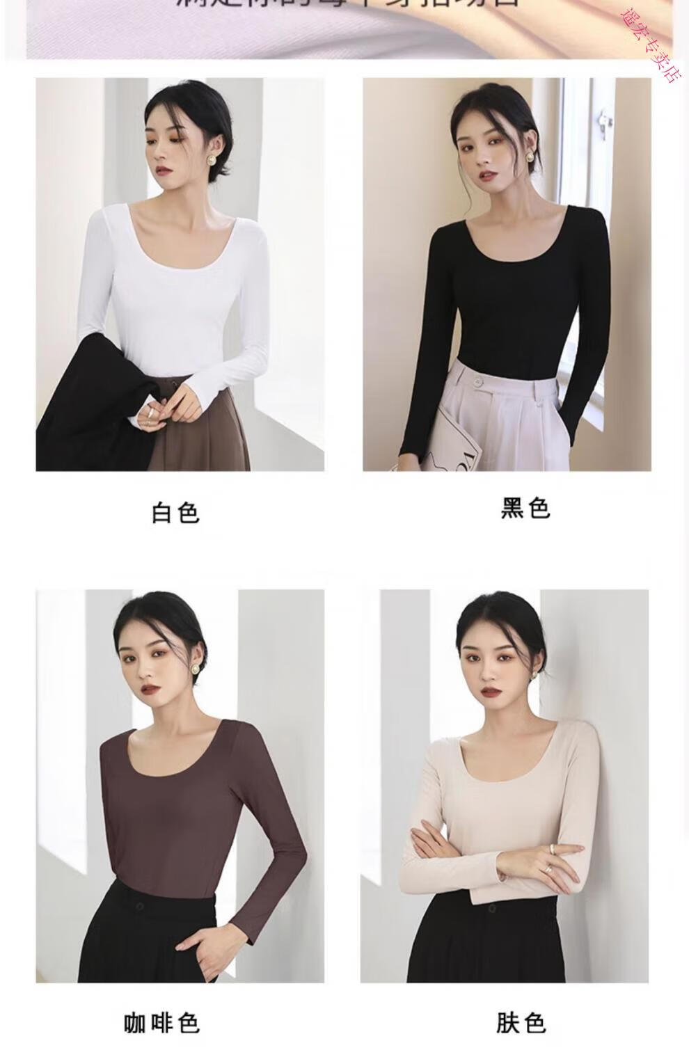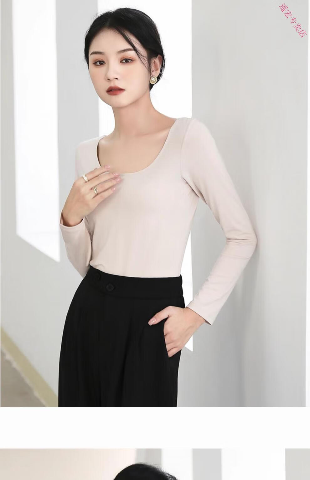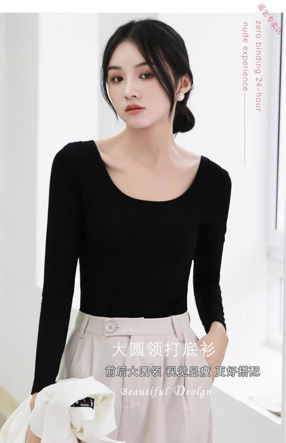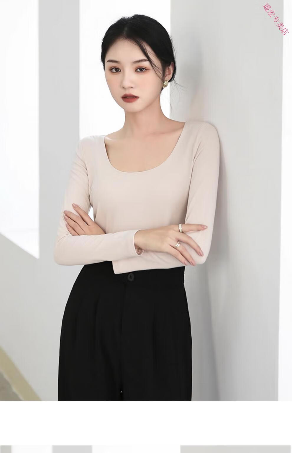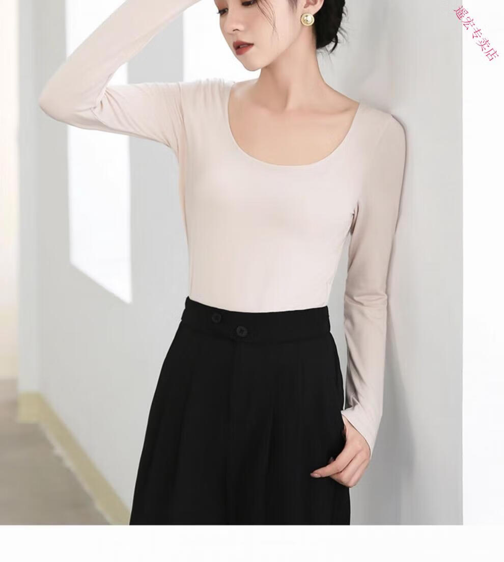 LangSha Modal bottoming shirt for women, autumn and winter 2025, with black velvet long-sleeved T-shirt, low-neck slim fit top, front and back large round collar-7203 skin color 4XL