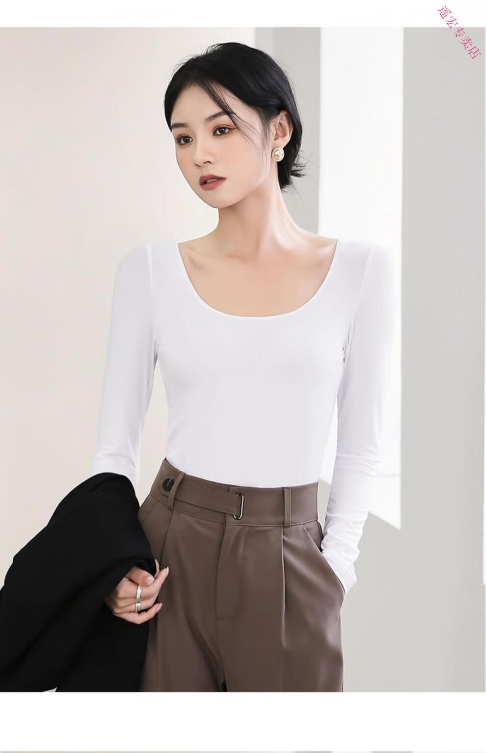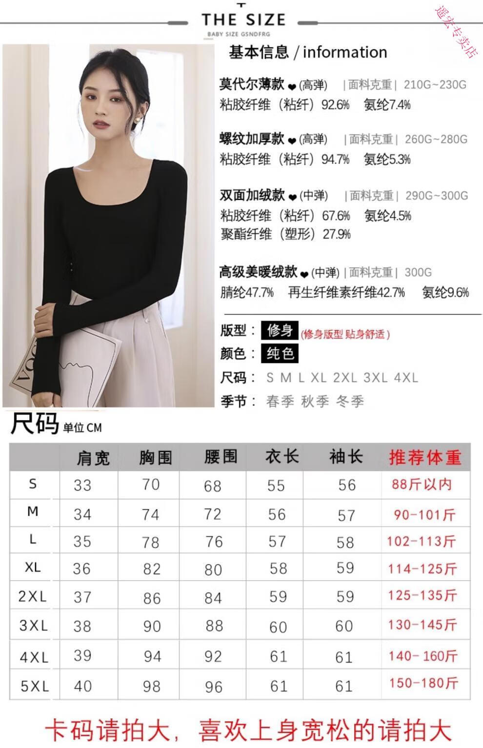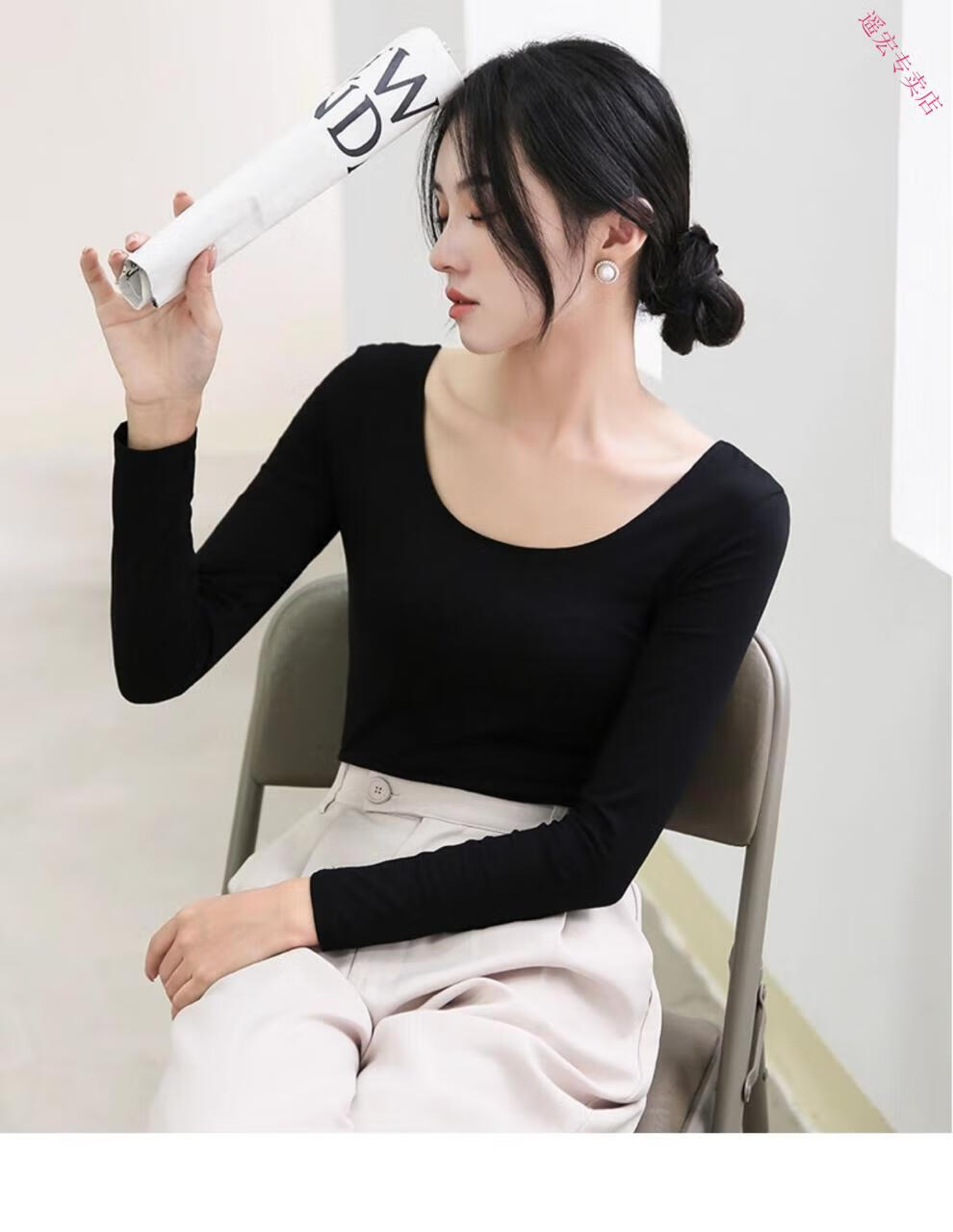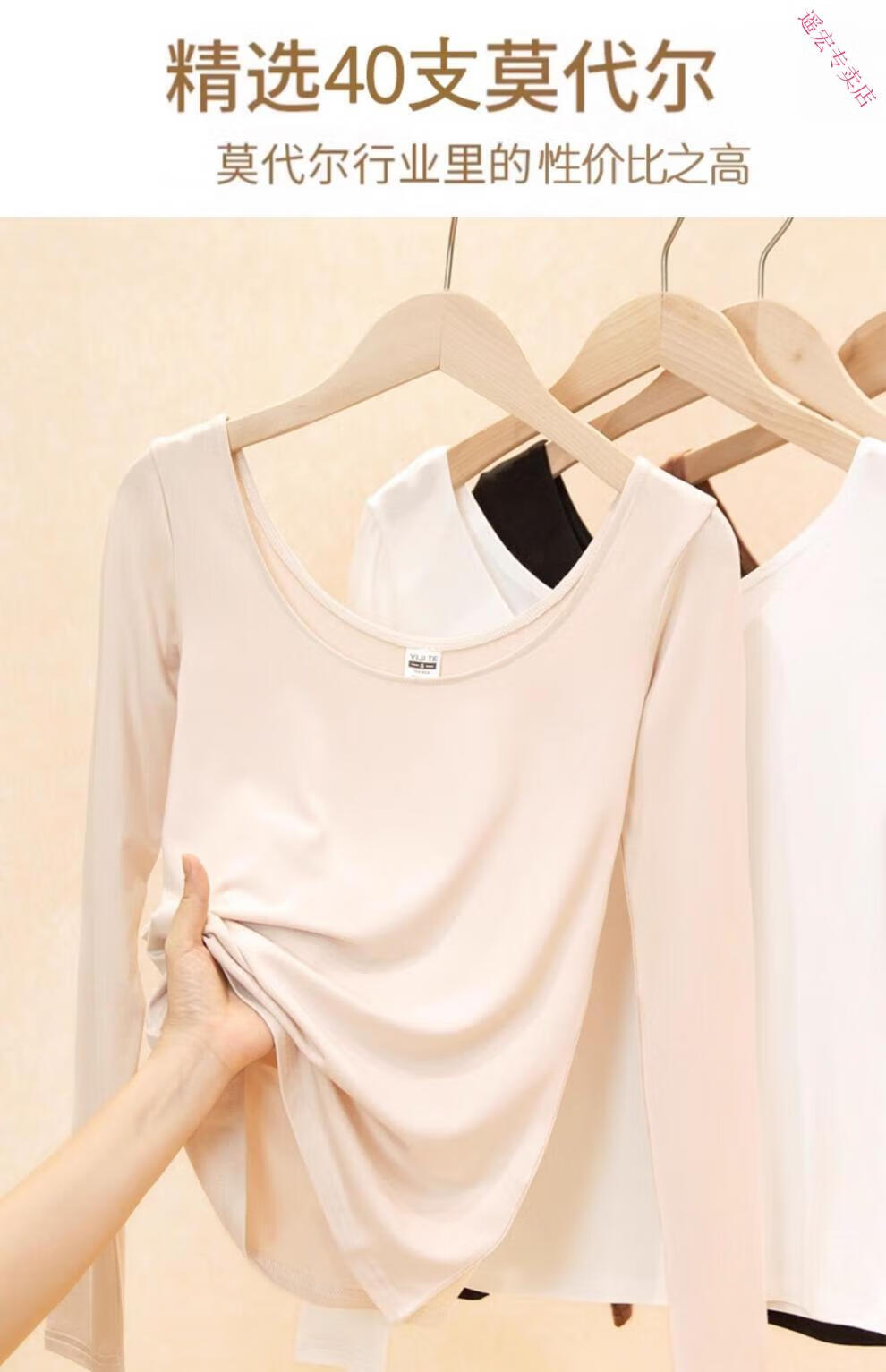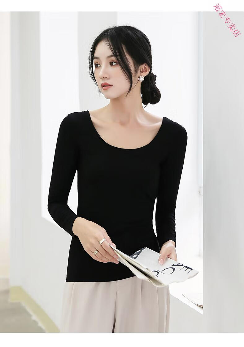 LangSha Modal bottoming shirt for women, autumn and winter 2025, with black velvet long-sleeved T-shirt, low-neck slim fit top, front and back large round collar-7203 skin color 4XL