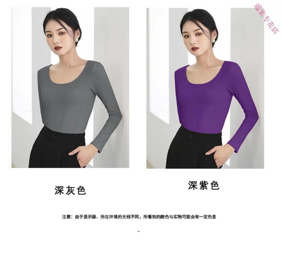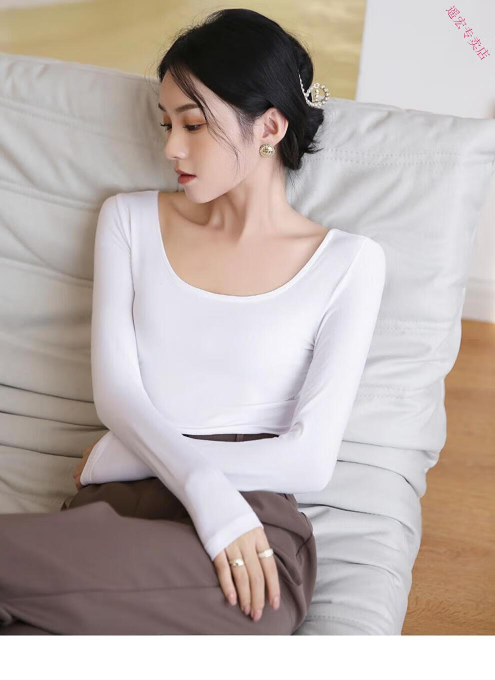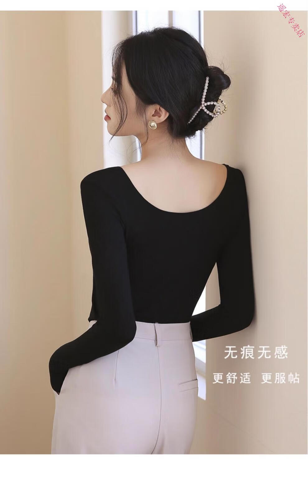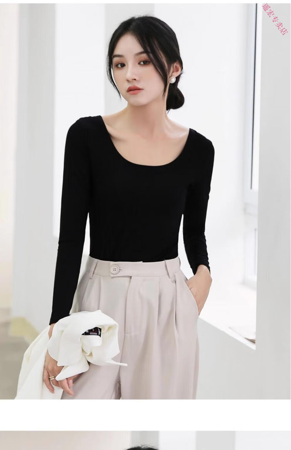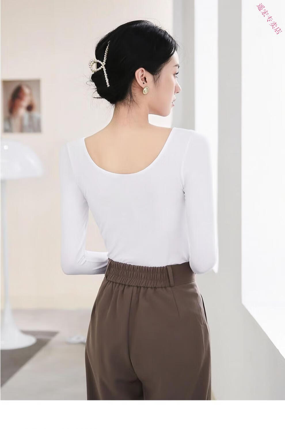 LangSha Modal bottoming shirt for women, autumn and winter 2025, with black velvet long-sleeved T-shirt, low-neck slim fit top, front and back large round collar-7203 skin color 4XL
