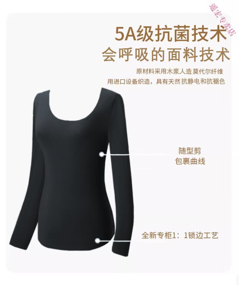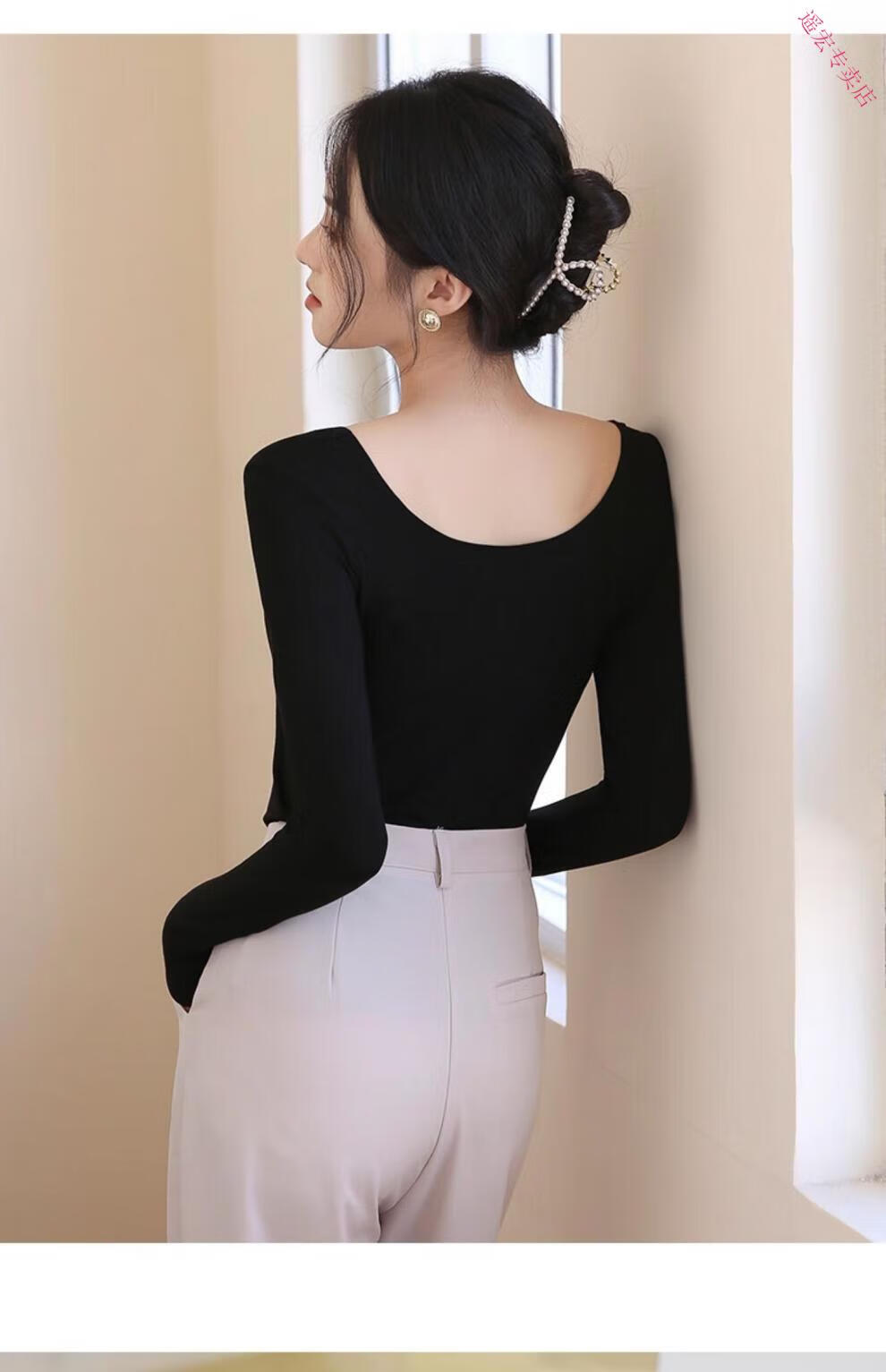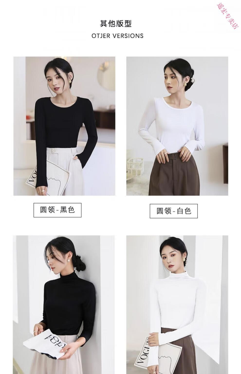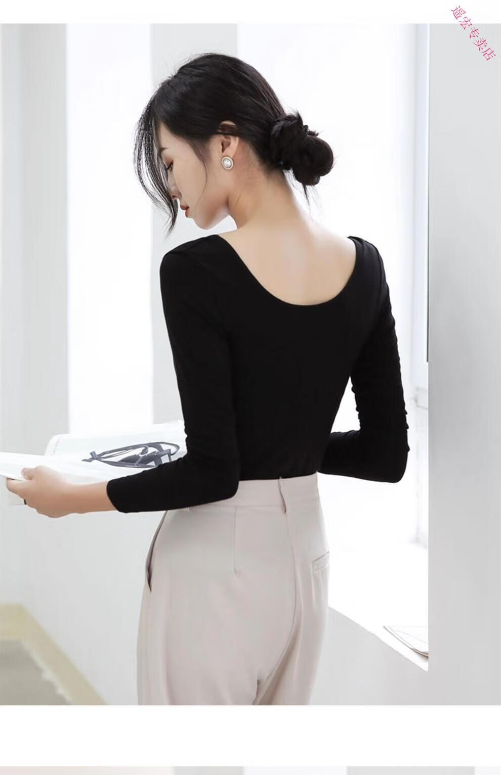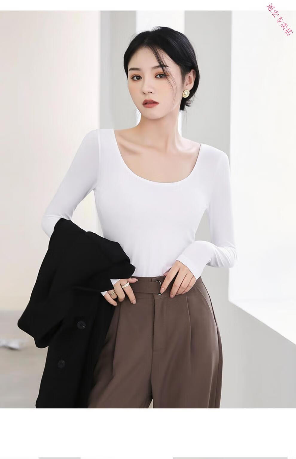 LangSha Modal bottoming shirt for women, autumn and winter 2025, with black velvet long-sleeved T-shirt, low-neck slim fit top, front and back large round collar-7203 skin color 4XL