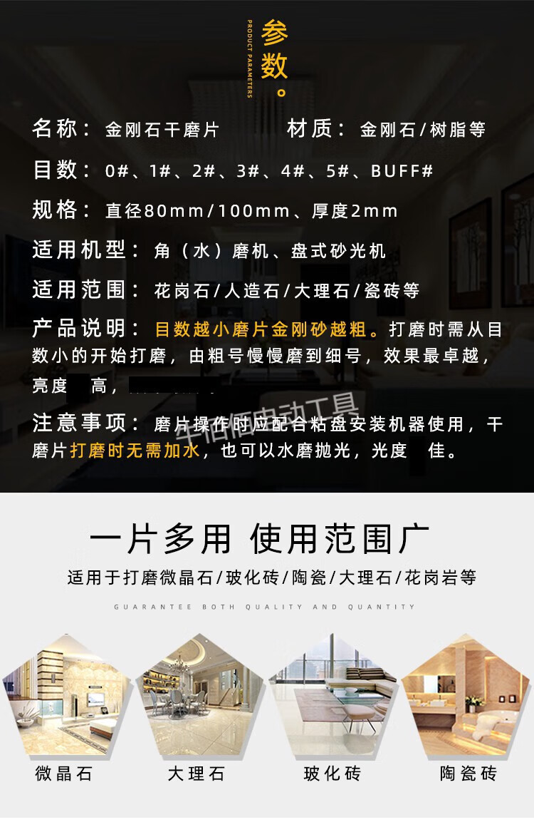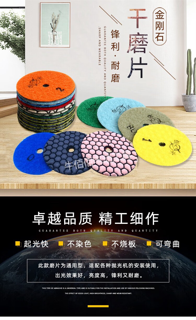 Fengxi dry grinding disc, marble polishing disc, diamond water grinding disc, stone polishing disc, ceramic tile angle grinder polishing disc, a set of 10 cm diameter 0-6#+10# aperture sticky disc