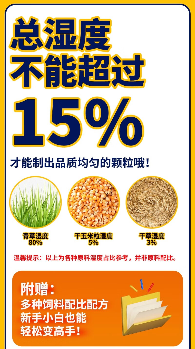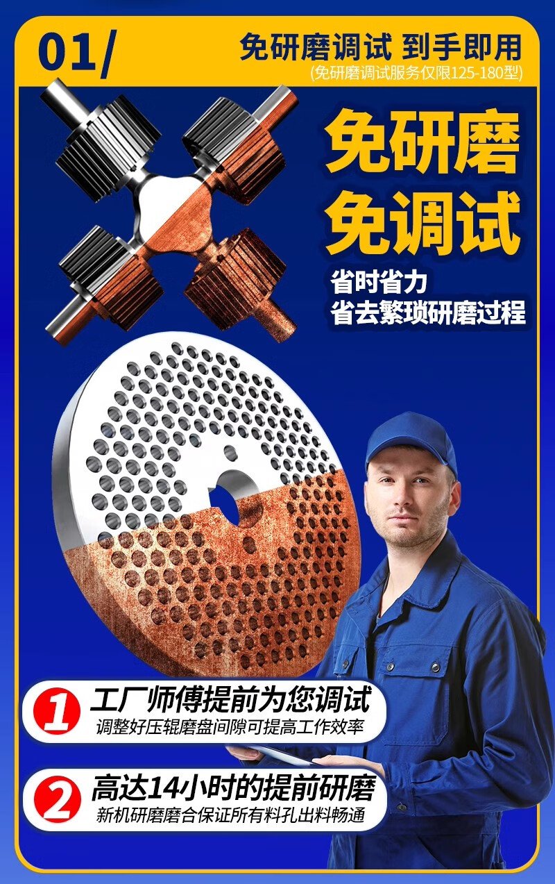 OUDiEA feed pellet machine small household chicken, duck, goose, sheep, rabbit, pig, fish, lobster breeding equipment livestock pelletizing machine 210 type double pressure wheel feed pellet machine + 7.5KW three-phase motor