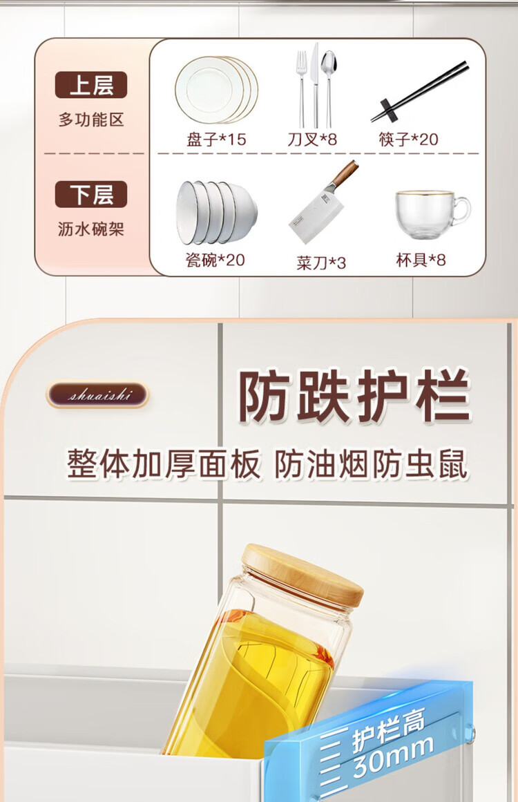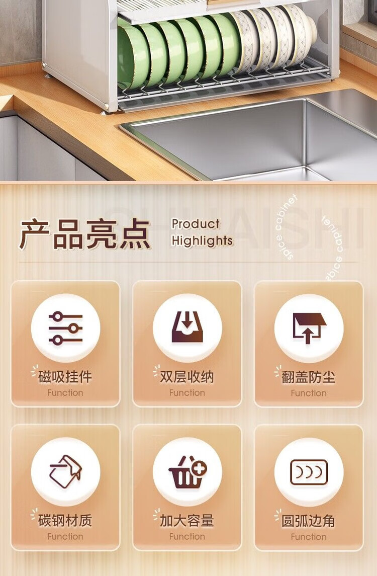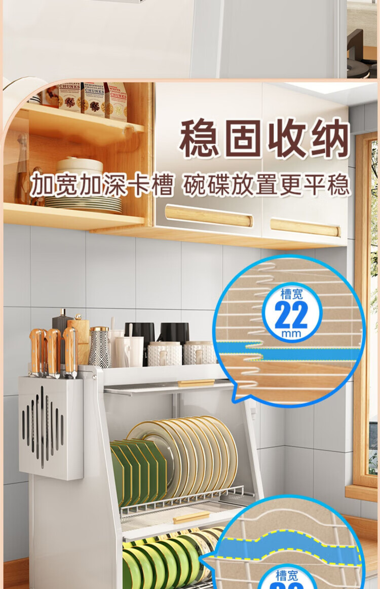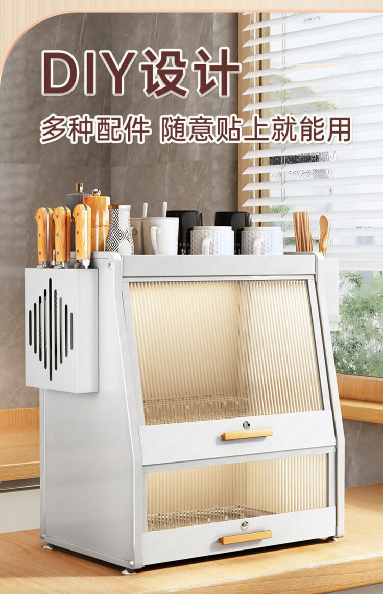 Yukajue kitchen dish rack with cover household bowl counter top chopstick plate dust-proof storage box multi-functional drain black sealed dust-proof and mouse-proof dish cabinet hook