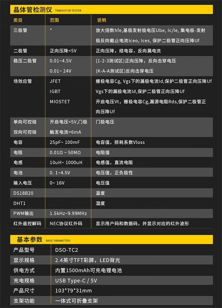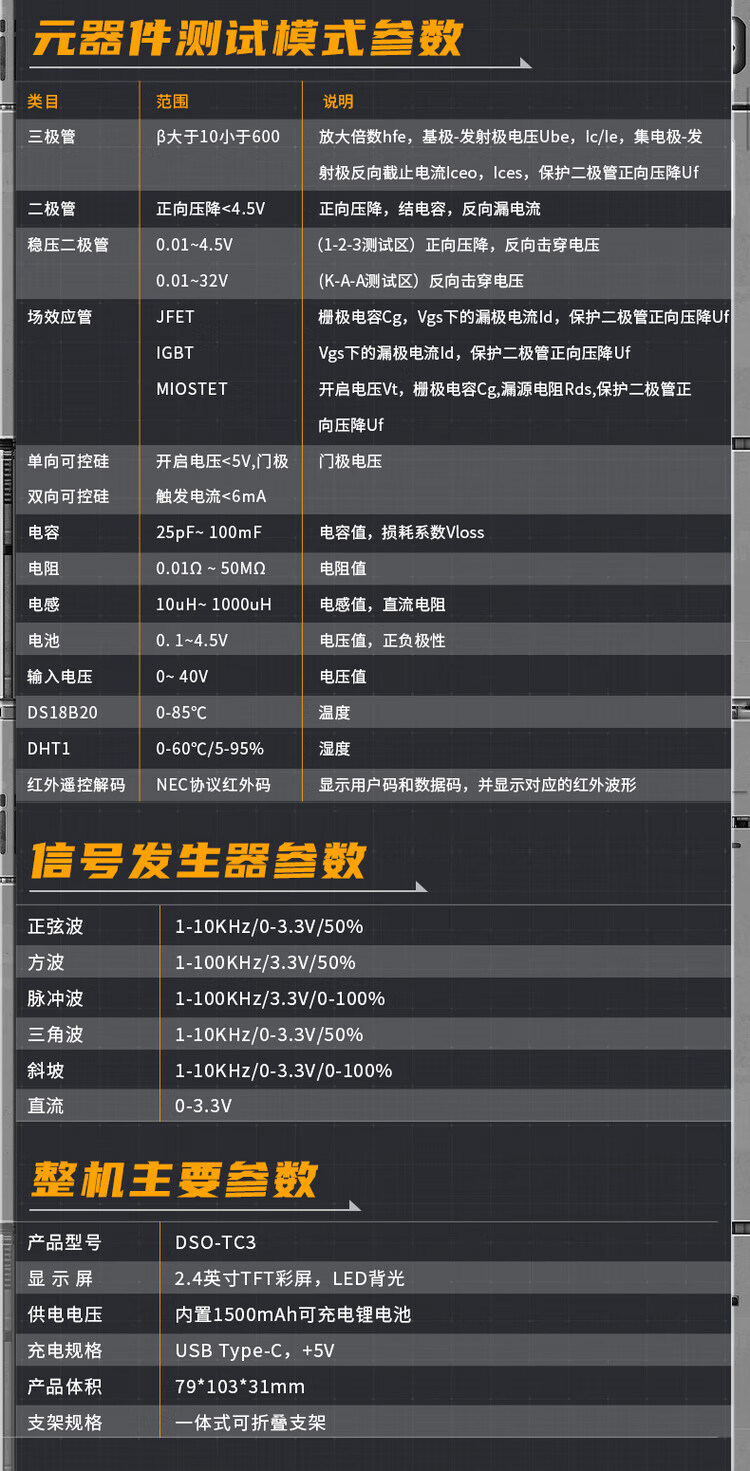 Digital oscilloscope transistor meter three-in-one 3 portable handheld oscilloscope three-in-one standard version handheld oscilloscope entry-level standard version without battery