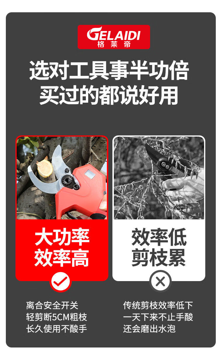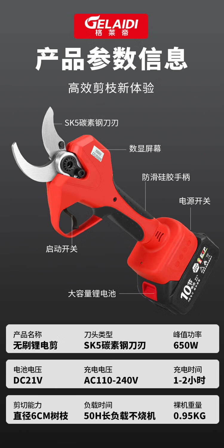 Dongcheng Gladi electric pruning scissors for fruit trees lithium battery rechargeable garden pruning radio pruning thick branches 6:0 high power 1 electric large 2 blades