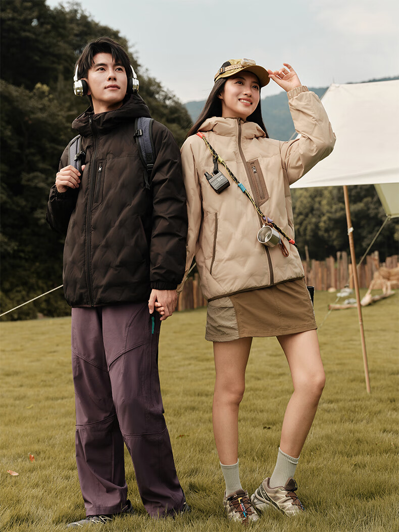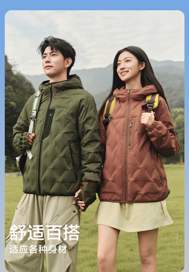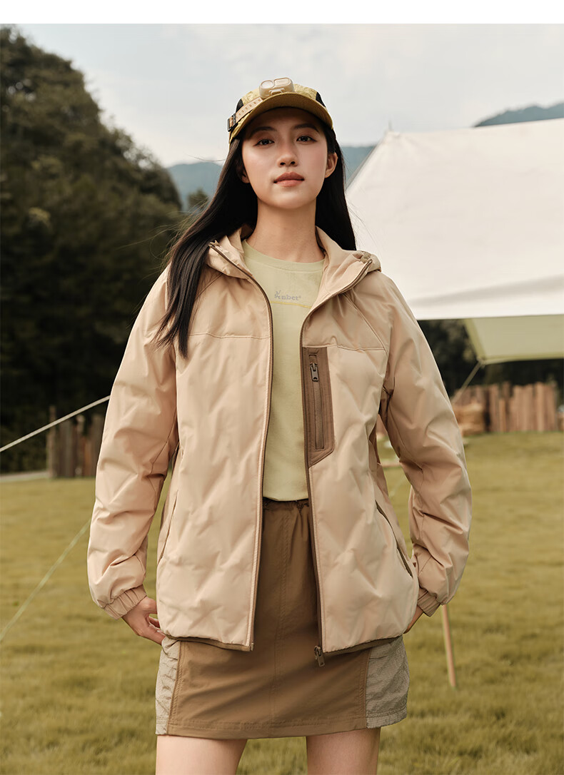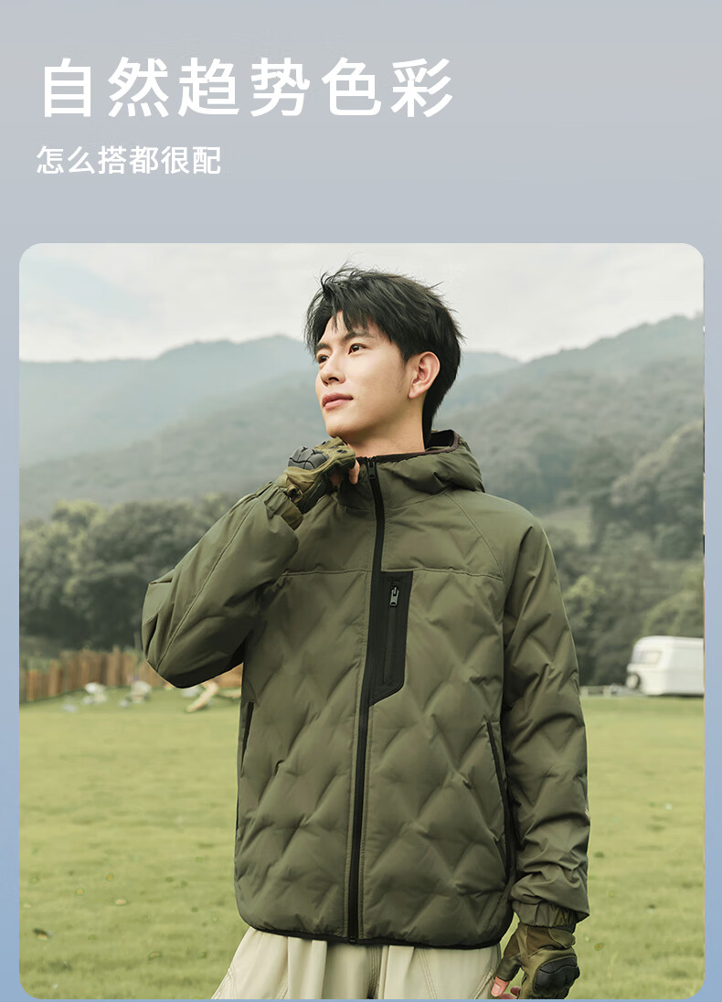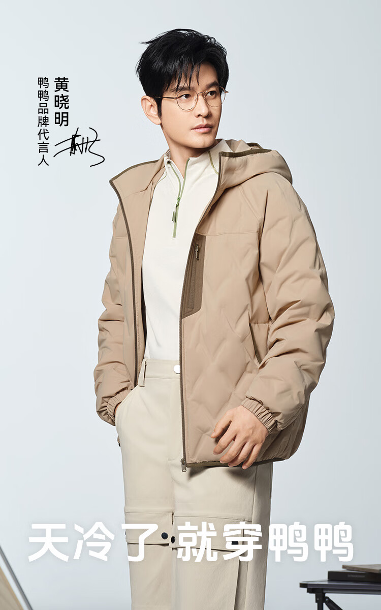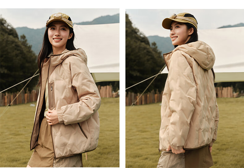 YAYA (YAYA) Huang Xiaoming same style light down jacket for men and women 2025 autumn and winter new short style hooded cold-proof duck down jacket khaki 2XL 185/100A