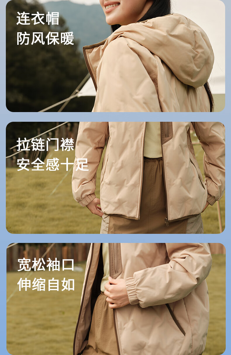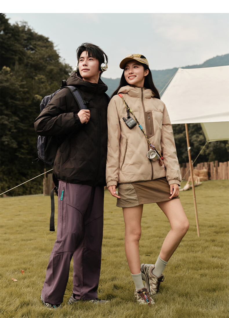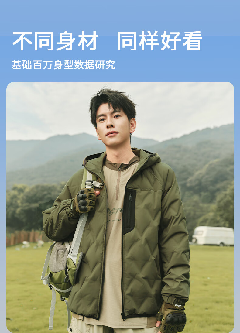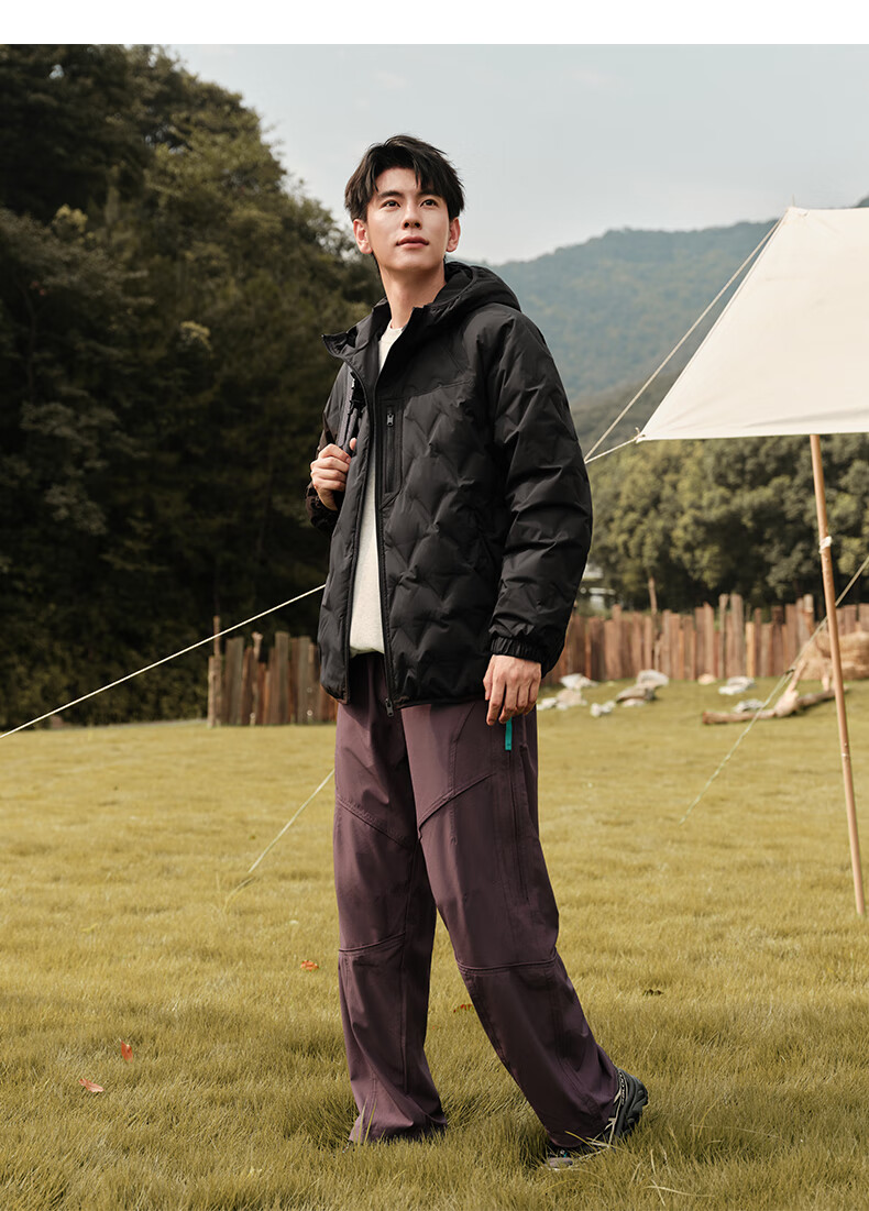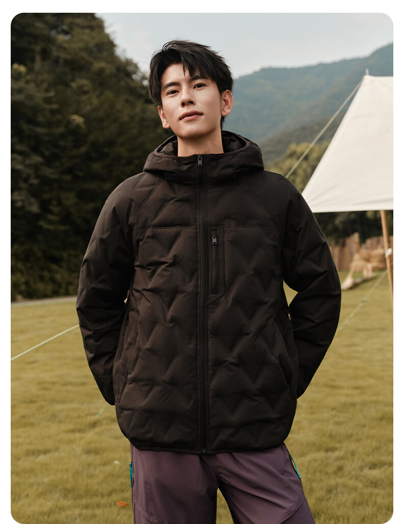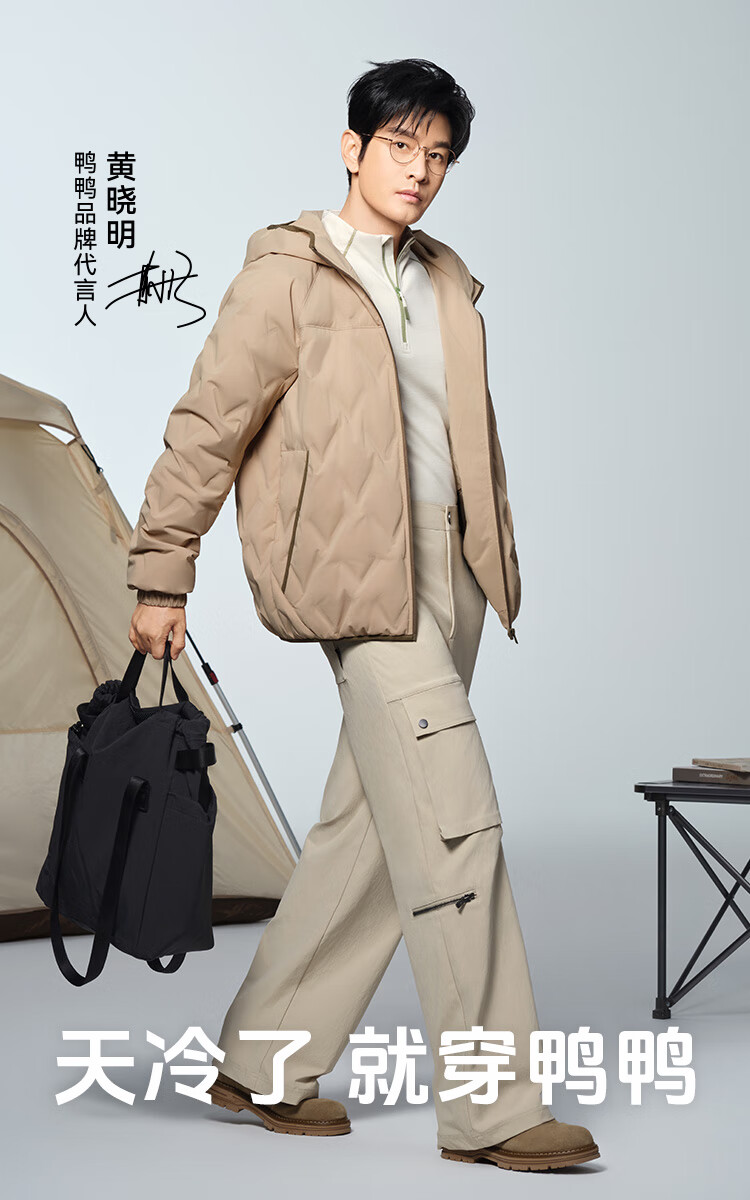 YAYA (YAYA) Huang Xiaoming same style light down jacket for men and women 2025 autumn and winter new short style hooded cold-proof duck down jacket khaki 2XL 185/100A