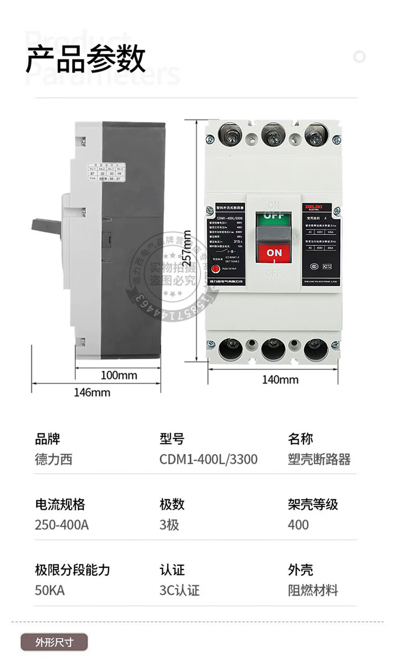 Delixi CDM1-400L/3300 250A 250L/3300 125A large frame molded case circuit breaker 350A 3P