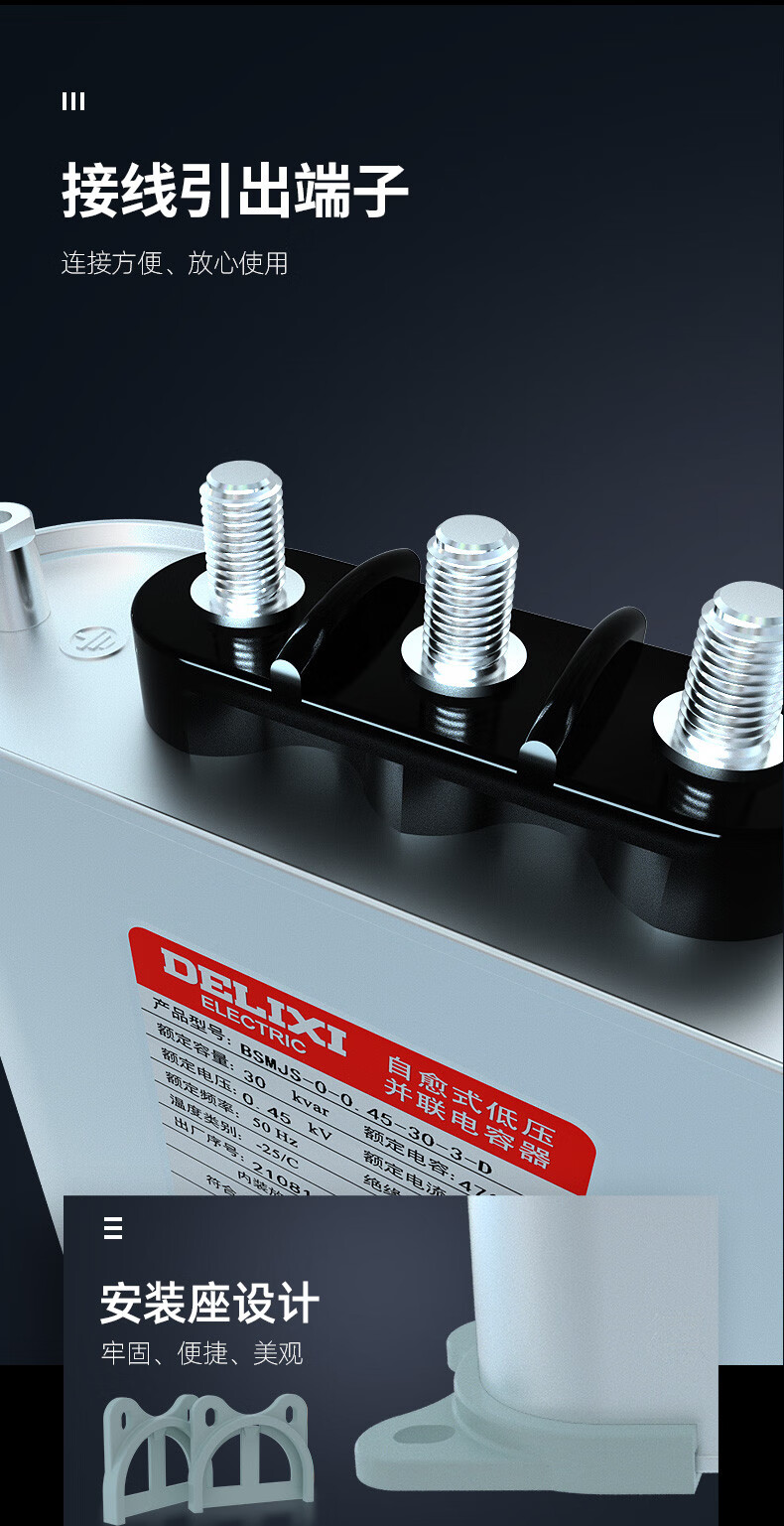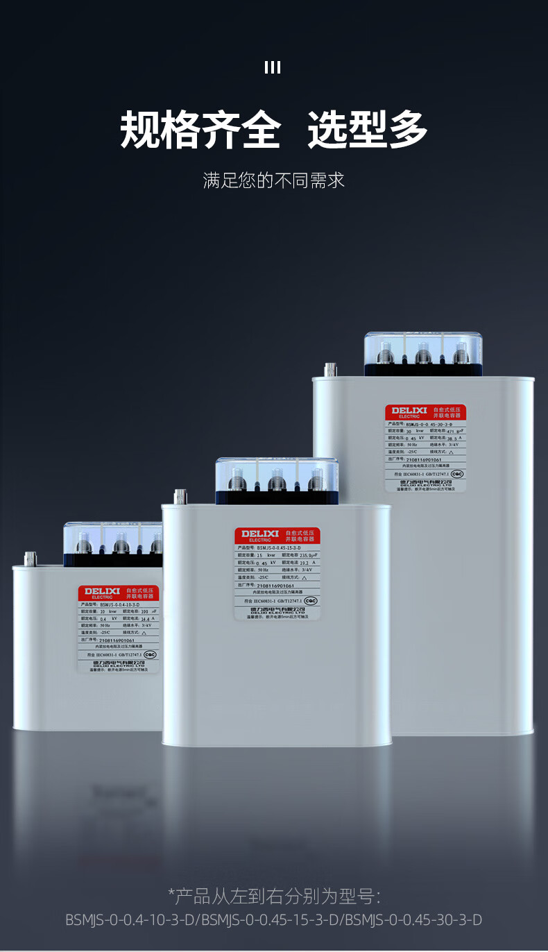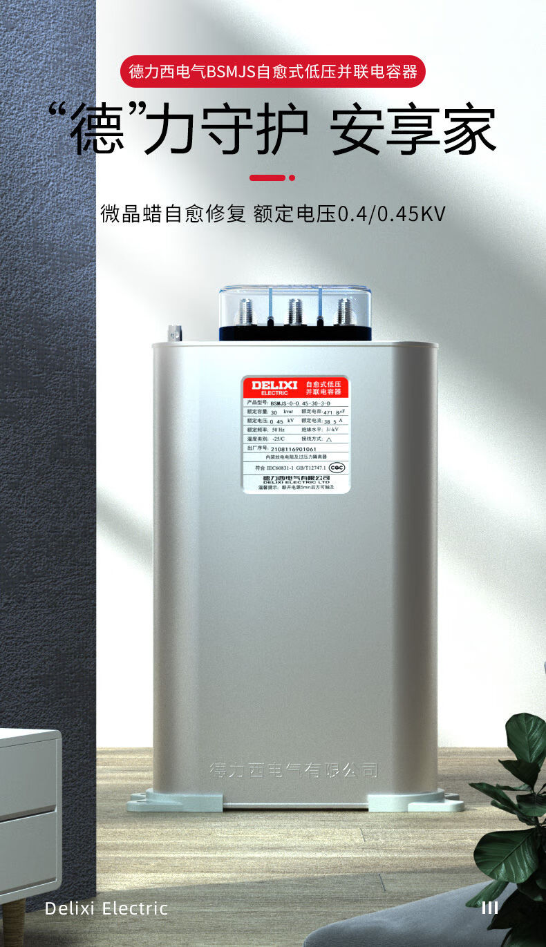Delixi BSMJS self-healing low-voltage capacitor 0.45-15-3 reactive power compensation 0.4 parallel power 450V BSMJS-0.4-15-3
