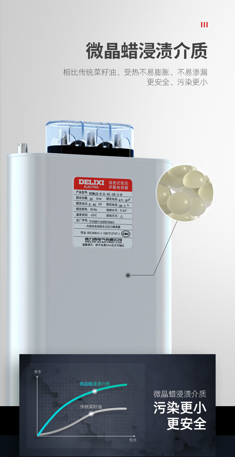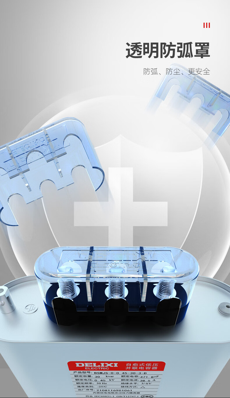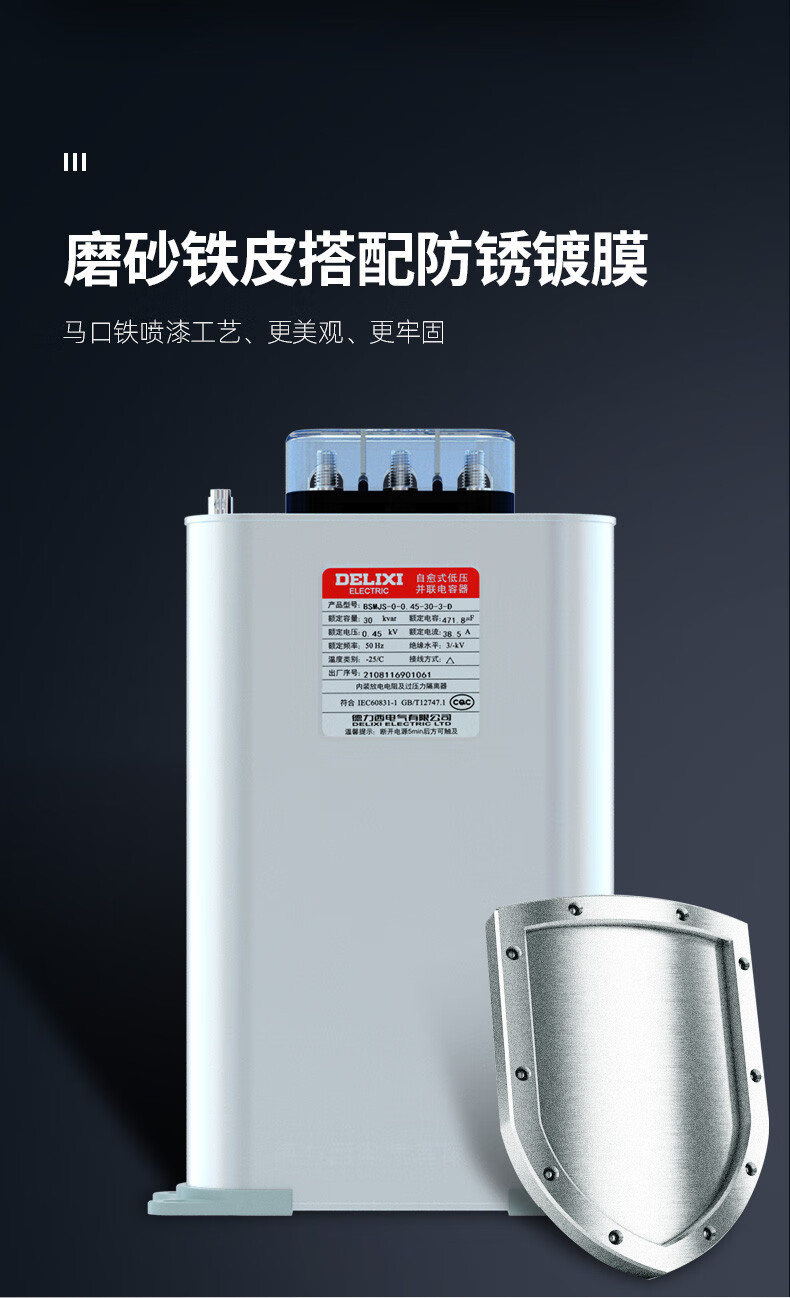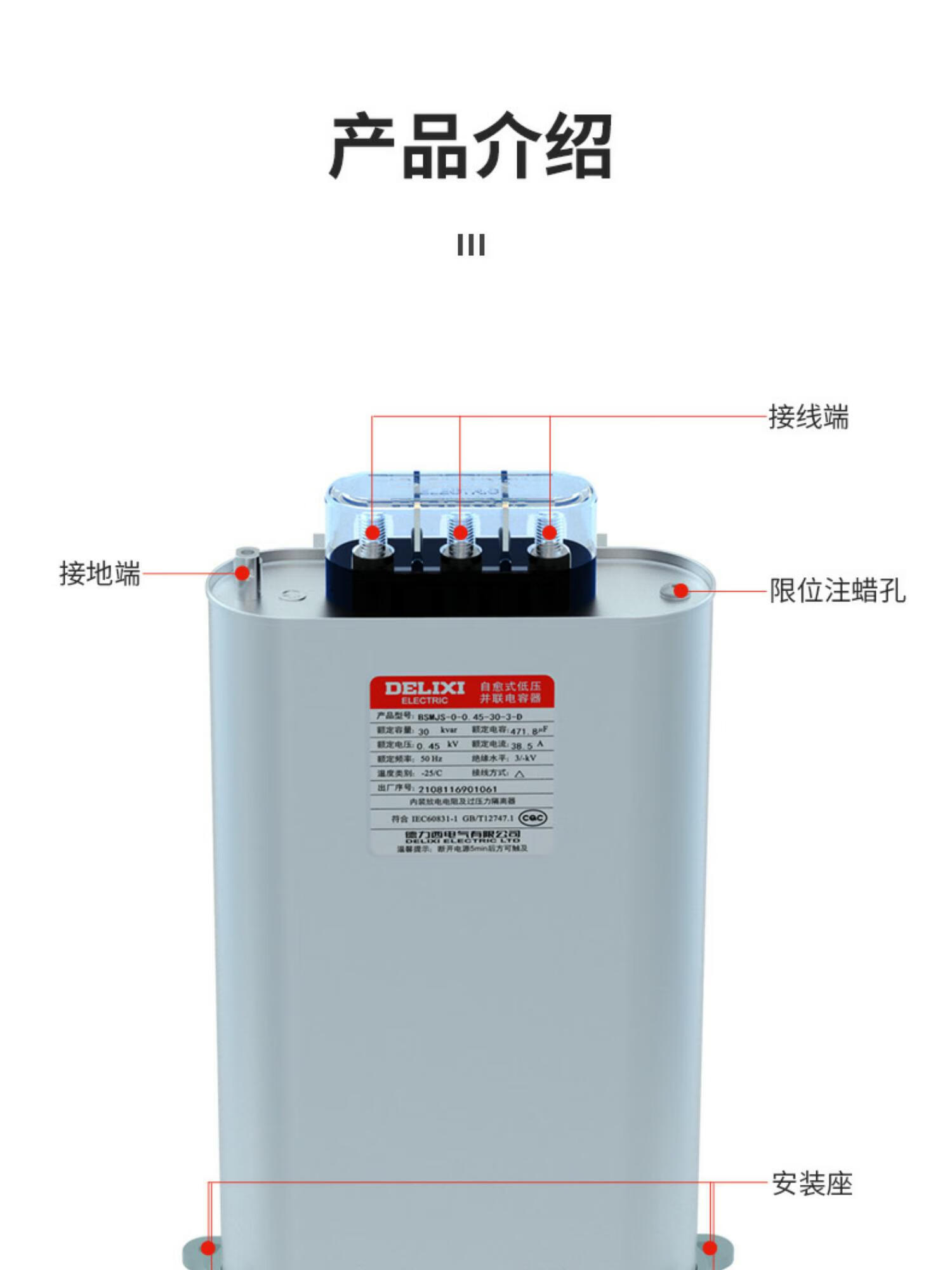 Delixi BSMJS self-healing low-voltage capacitor 0.45-15-3 reactive power compensation 0.4 parallel power 450V BSMJS-0.4-15-3