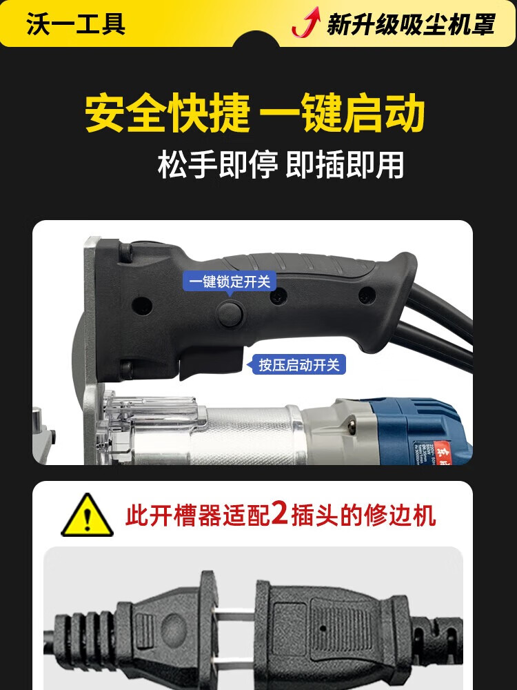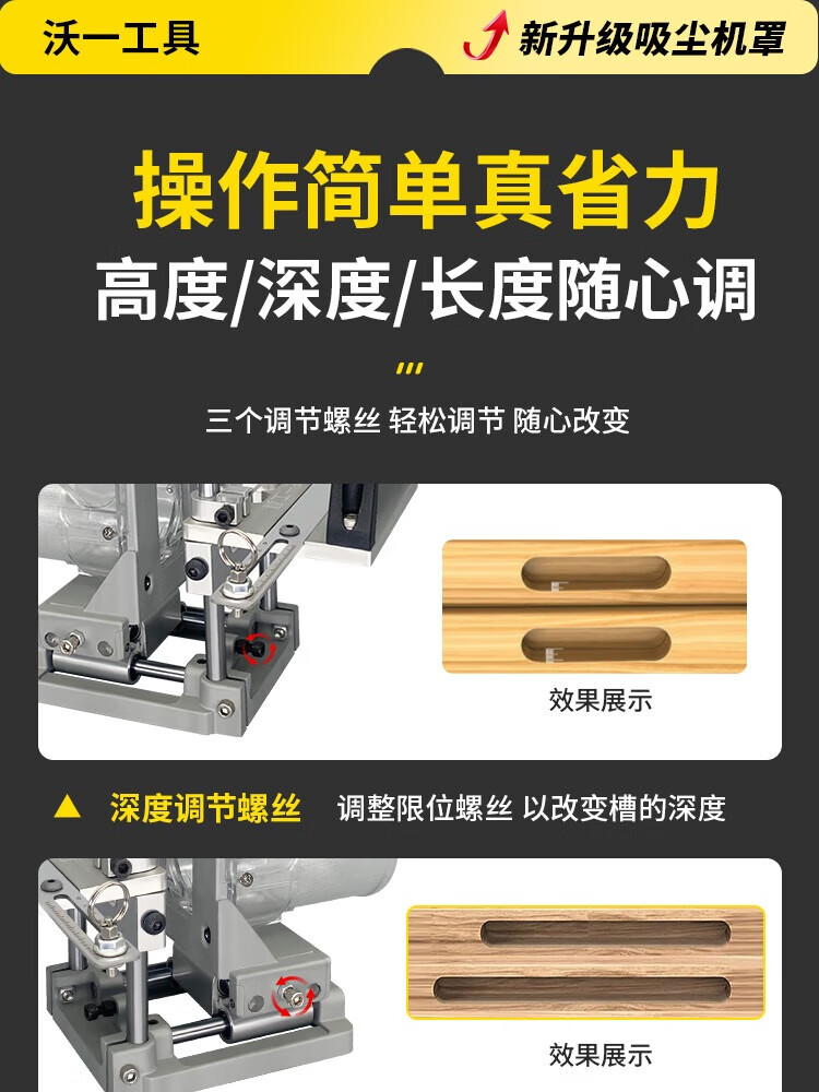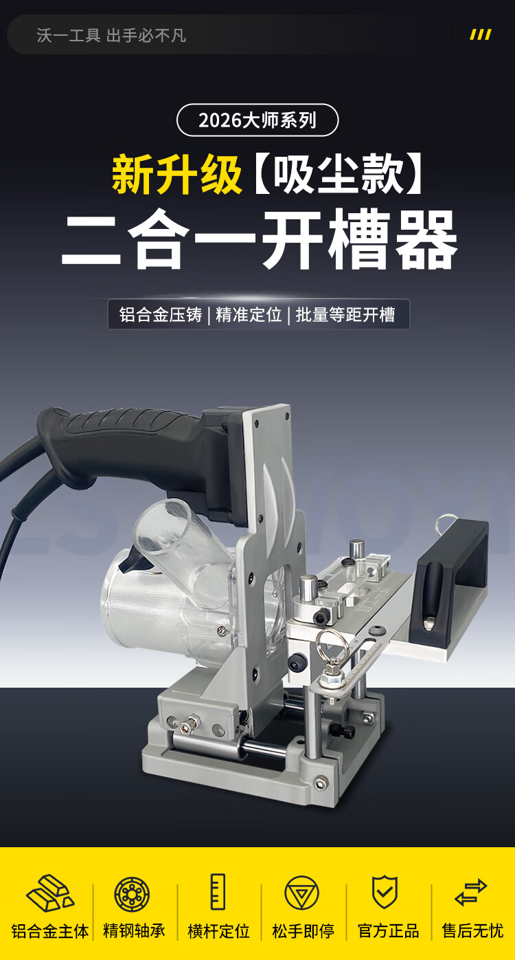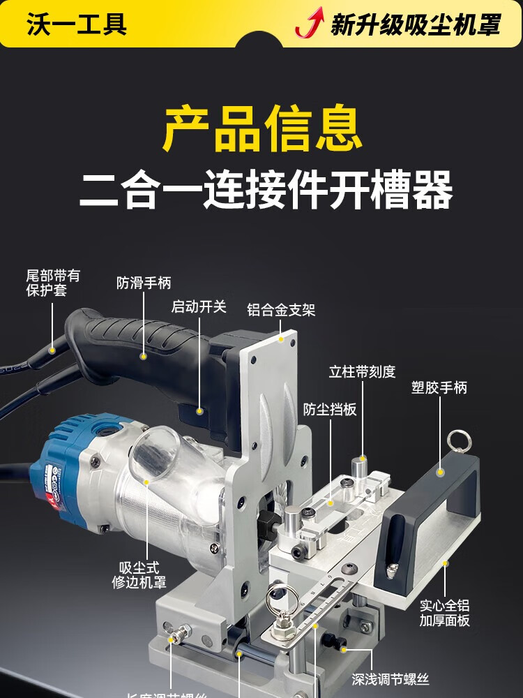 WO YI TOOLS newly upgraded vacuum two-in-one slotting machine with positioning fasteners, special bracket for batch slotting and woodworking trimming machine, enhanced slotting frame without backer + 1 alloy knife + 6 buckles (without trimming machine)