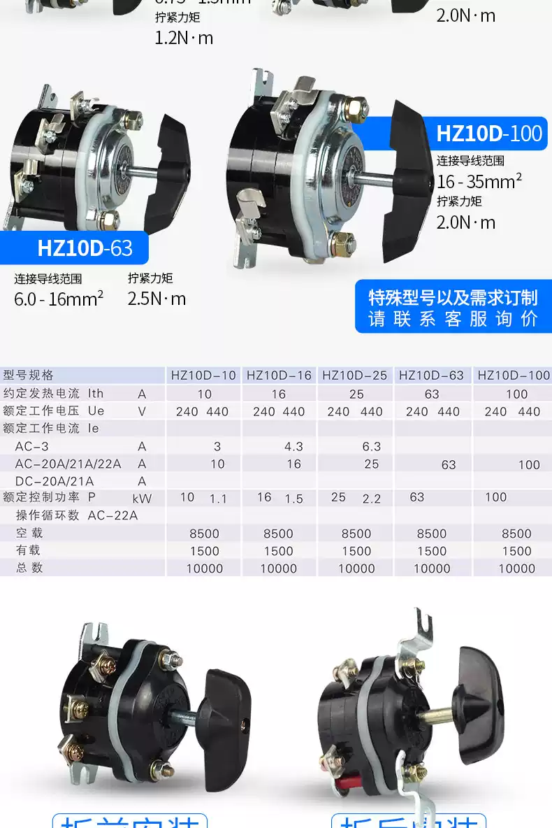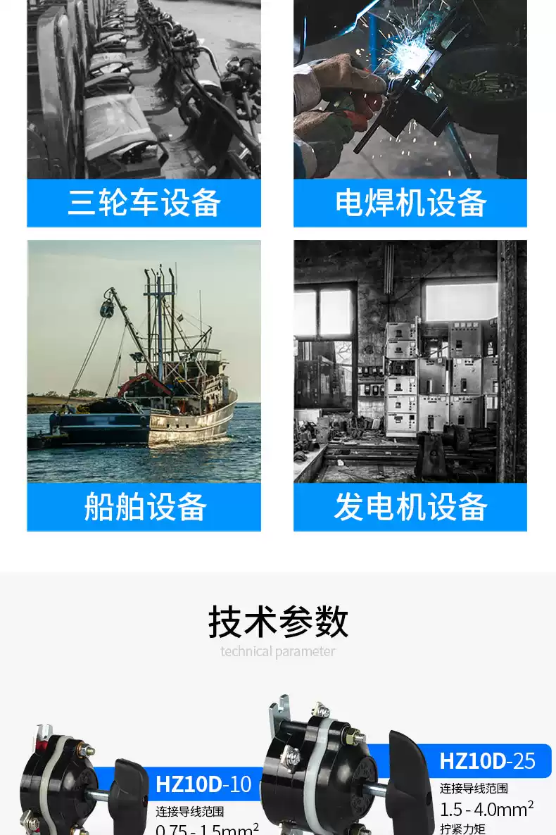 Changxin HZ10D-10/125/263/3 single-phase marine power cut-off 100A combination 380V transfer switch HZ10D-10/3