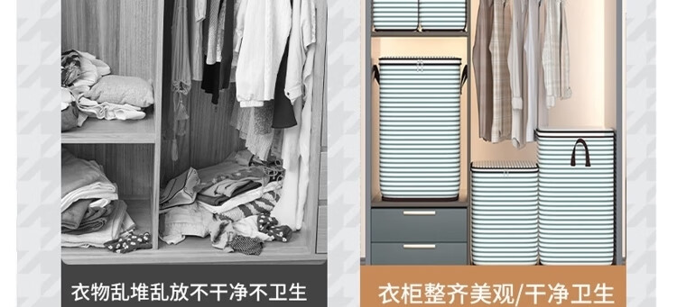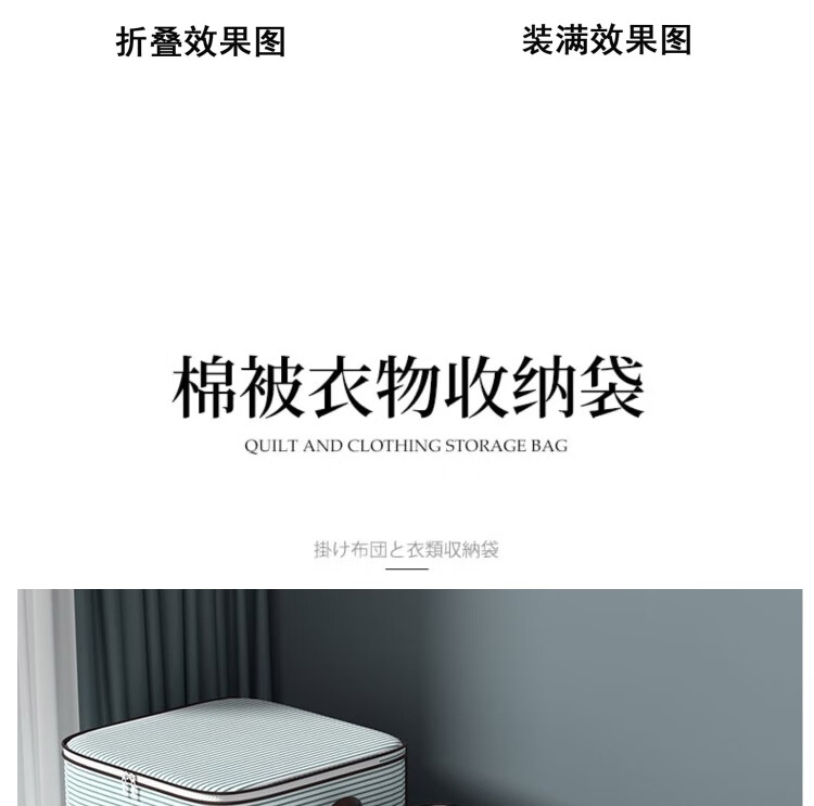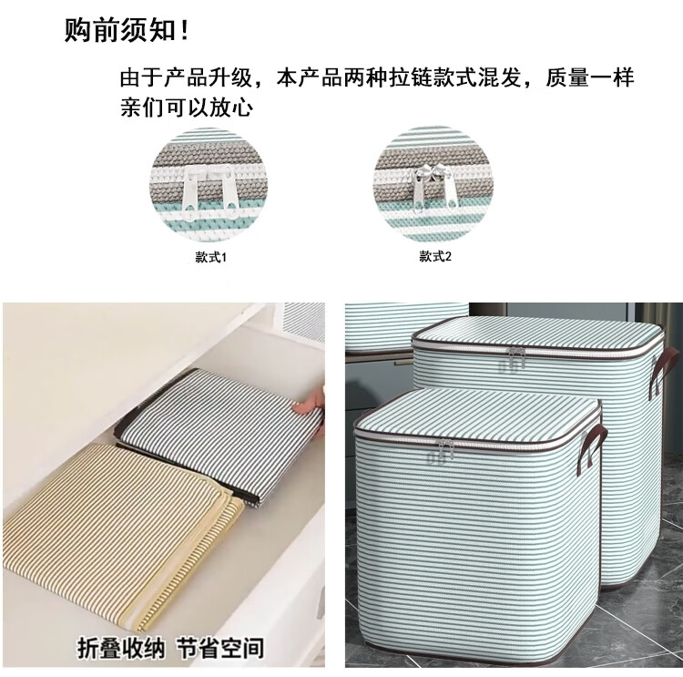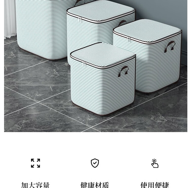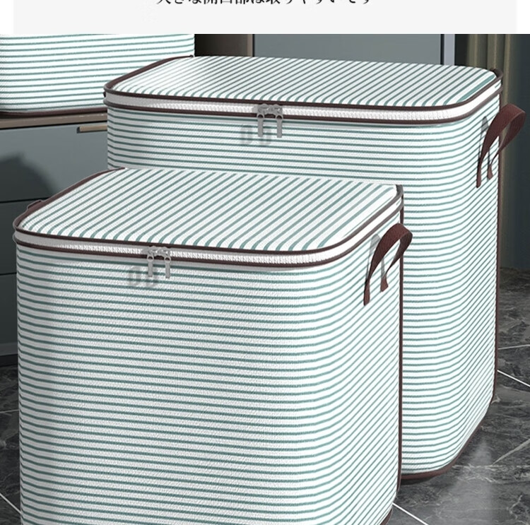 Japan Unprinted Clothes Storage Bag Home Large Capacity Quilt Compression Organizing Bag Clothing Luggage Moving Packing Blue Stripe 110L 2 Pack Large Size 50*40*50cm