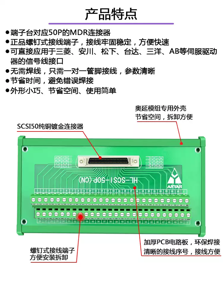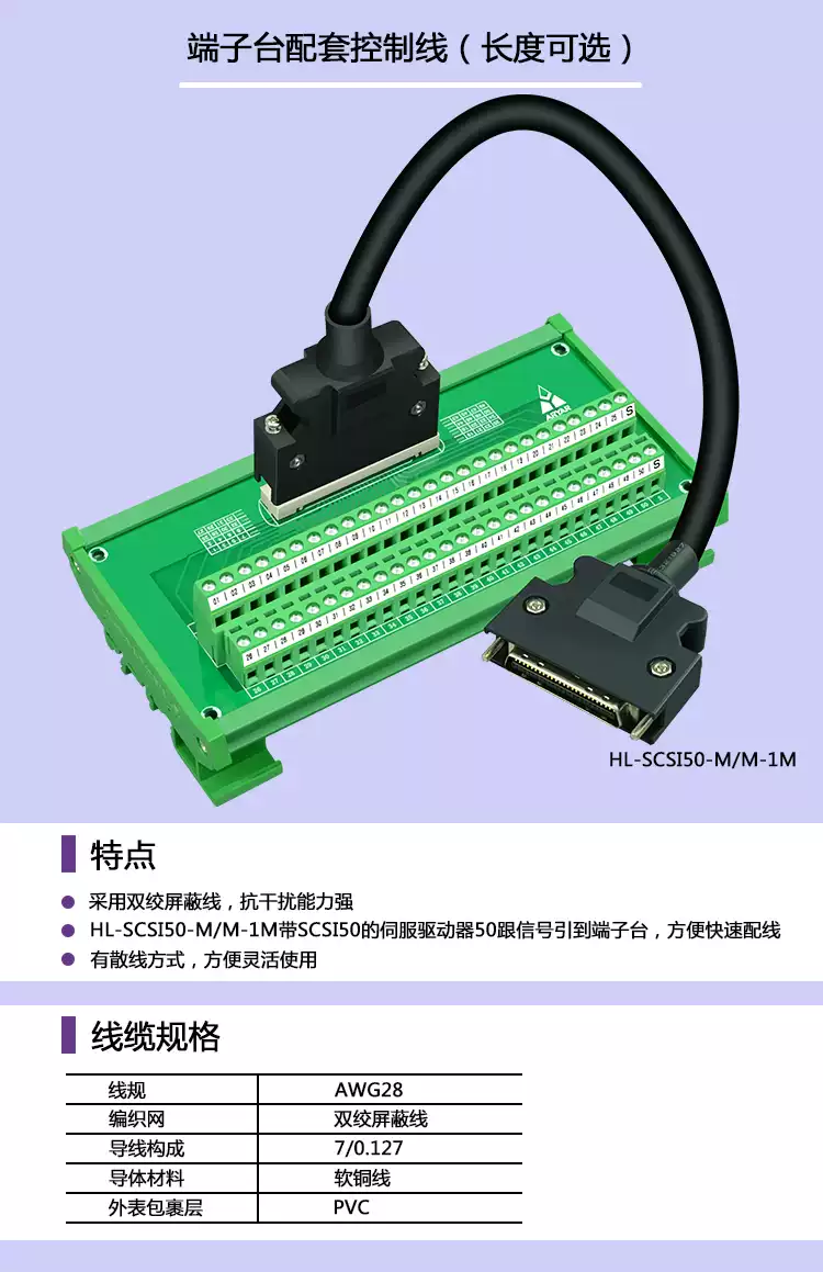Yaskawa Delta Panasonic Mitsubishi Servo CN1 terminal block SCSI50 core relay adapter board MR-TB50 hot selling SCSI50 data cable 0.75 meters