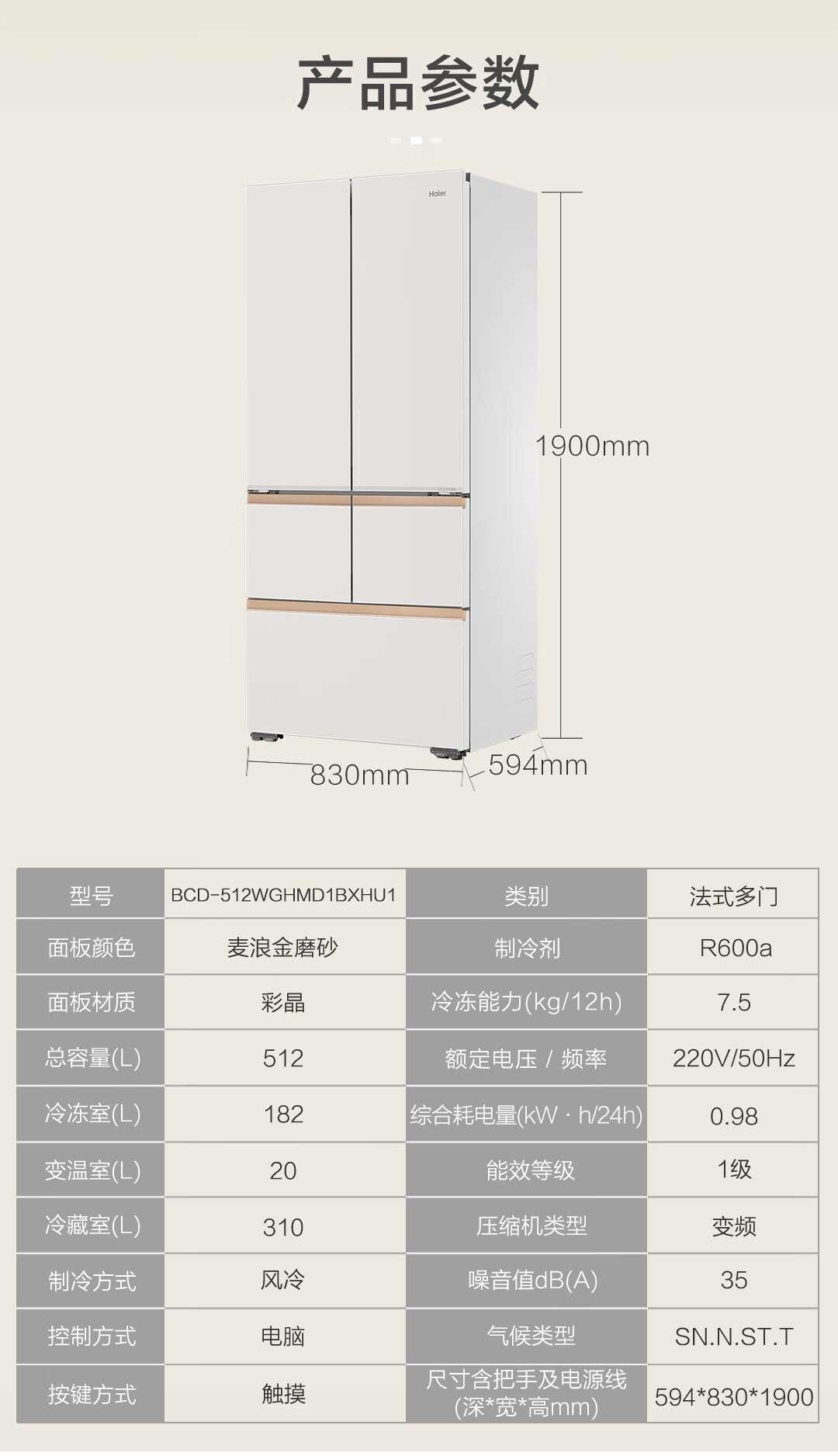 Haier BCD-512WGHMD1BXHU1 Mailang 512-liter fully automatic ice-making, full-space fresh-keeping zero-embedded multi-door refrigerator BCD-512WGHMD1BXHU1