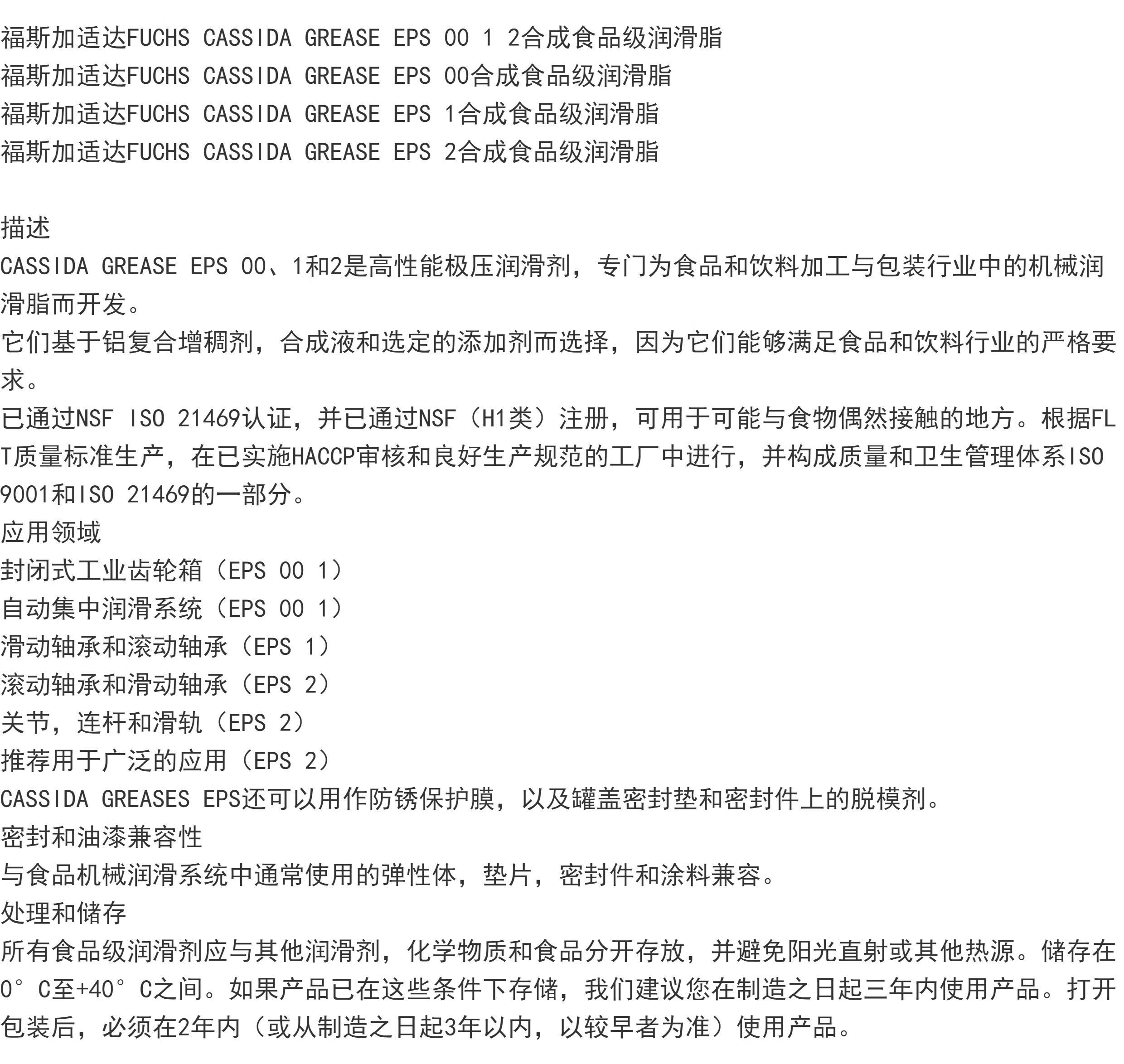 CASSIDA GREASE RLS EPS 00 0 1 2 food grade grease EPS 00