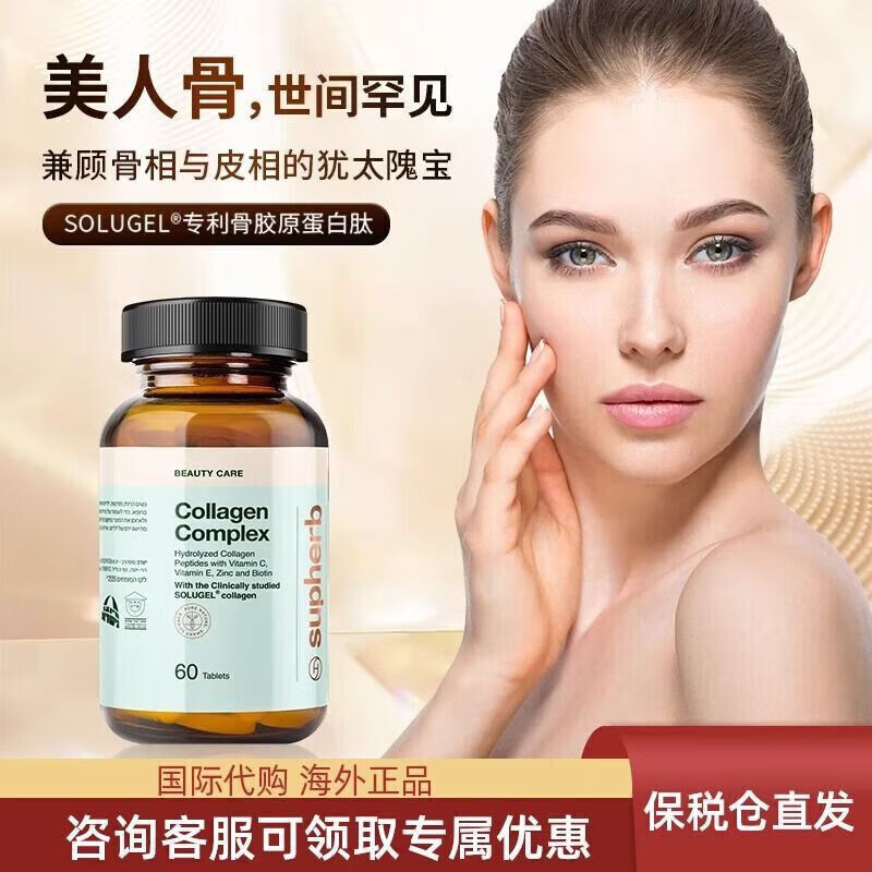 Supherb imported original genuine Israeli collagen peptide bone beauty exquisite mandibular small molecules 5 bottles stocking pack *Supherb beauty bone*60 capsules
