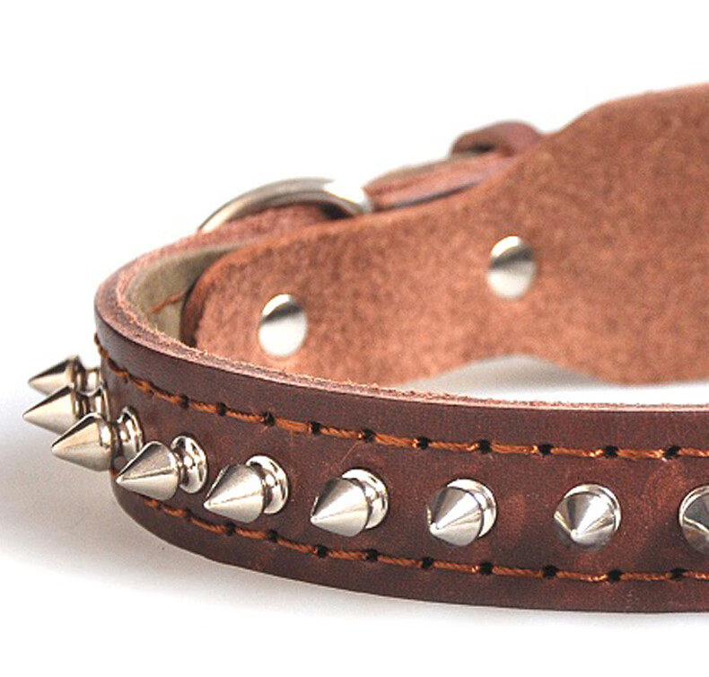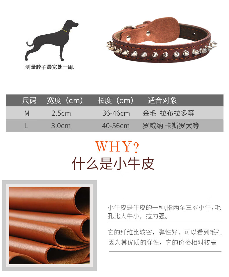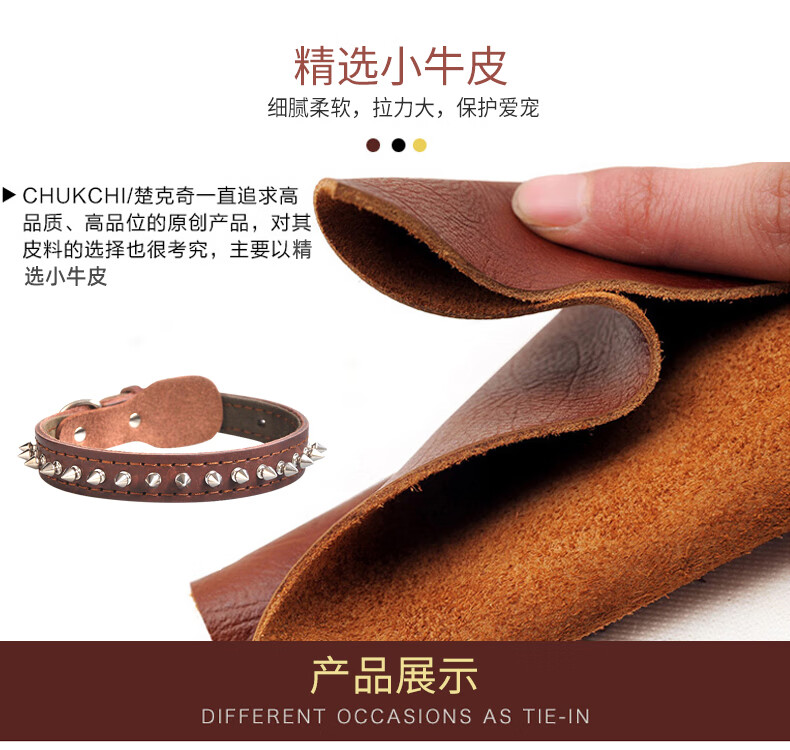 Chukchi (CHUKCHI) cowhide pet collar dog neck collar with acupuncture anti-bite for medium and large dogs 032B German Shepherd Pit Bull calfskin M neck circumference 36cm-46cm