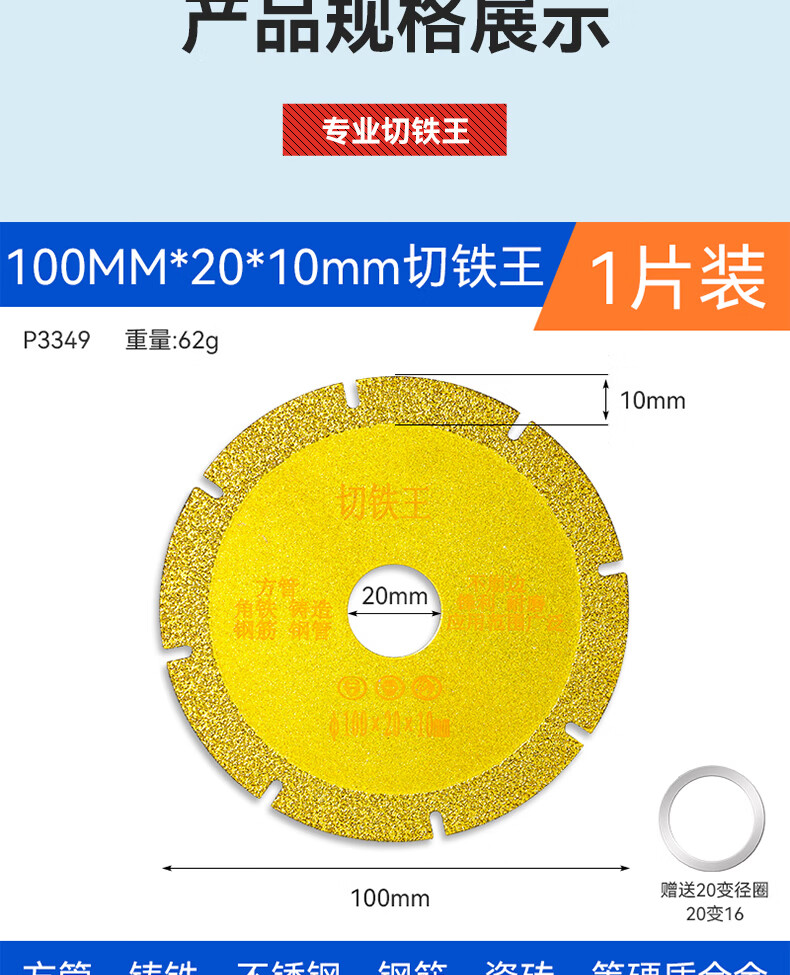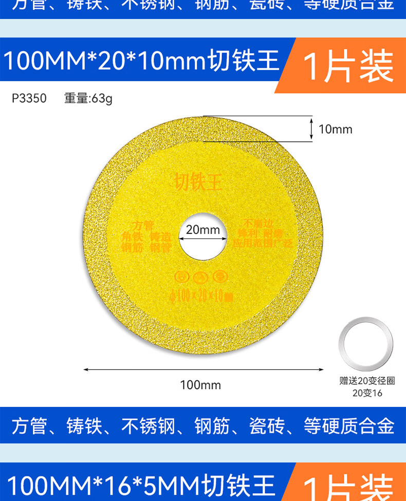Cutting Iron King saw blade angle grinder cutting disc stainless steel metal alloy cutting iron angle iron diamond grinding wheel cutting disc 100MM*20*10 Cutting Iron King 3 pieces *