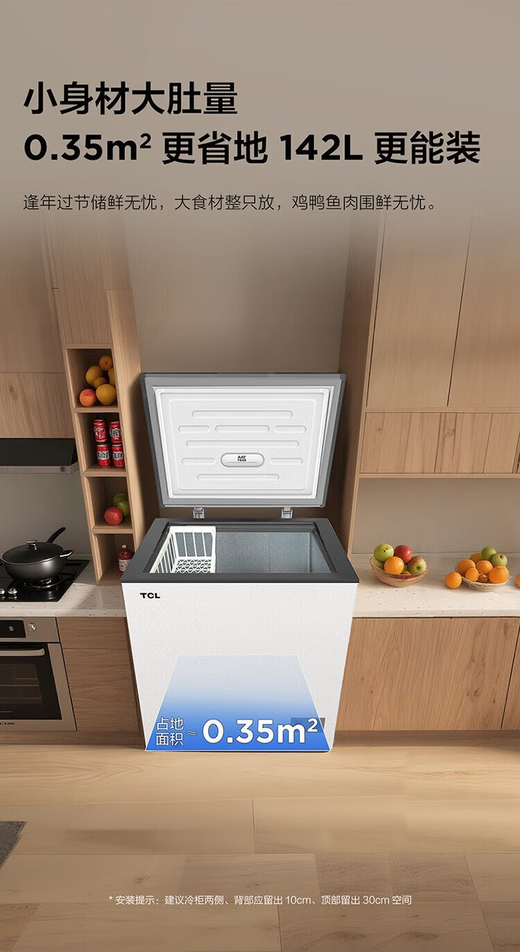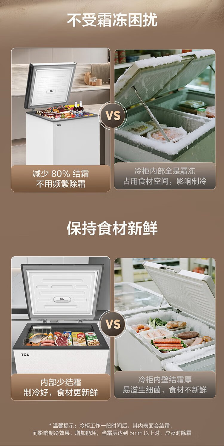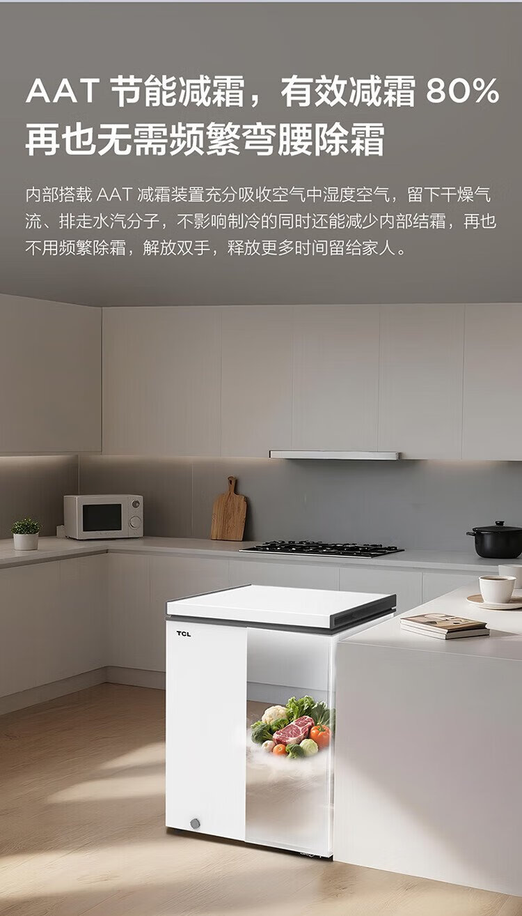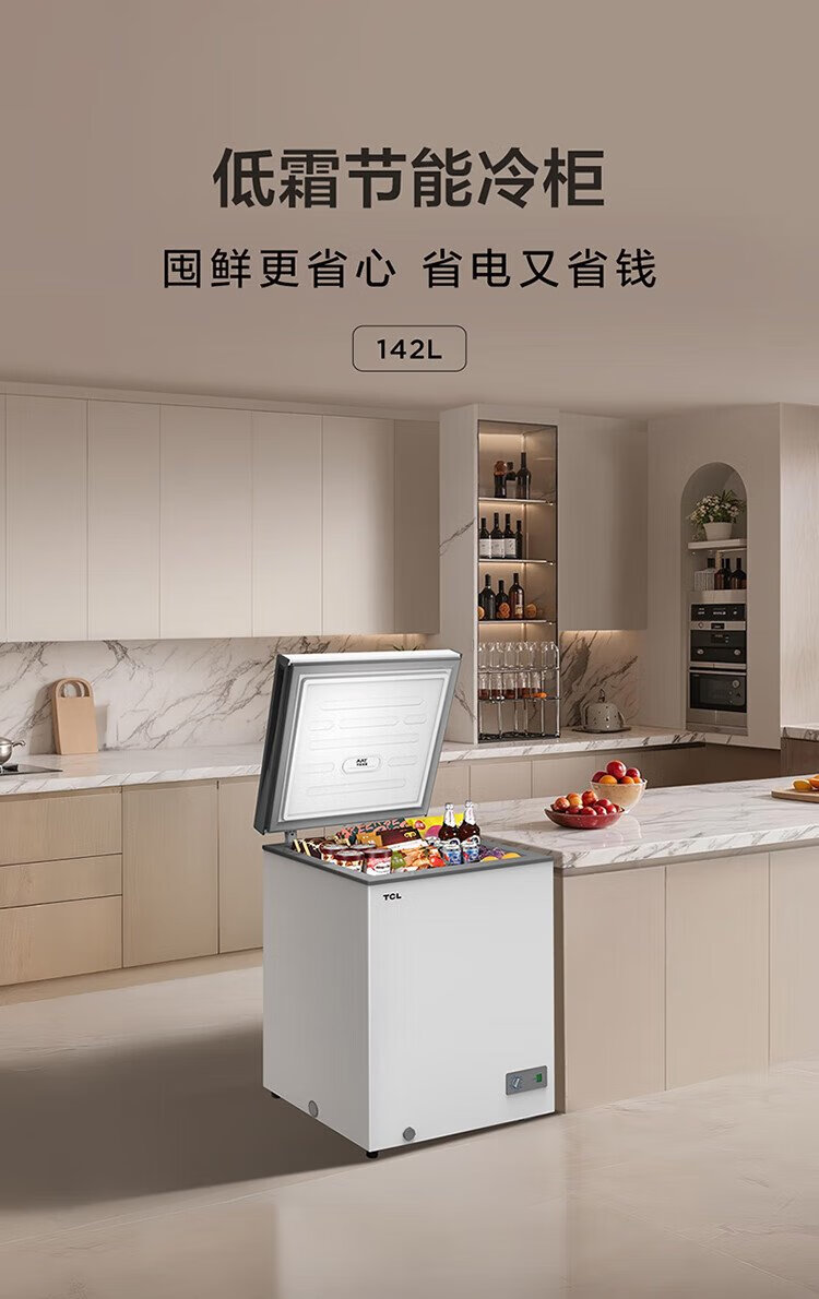 TCL 142-liter low-frost energy-saving refrigerator and freezer, small apartment, first-class energy efficiency, 80% frost reduction, cryogenic quick freezing, wide temperature range, ivory white 142L BC/BD-142NFO