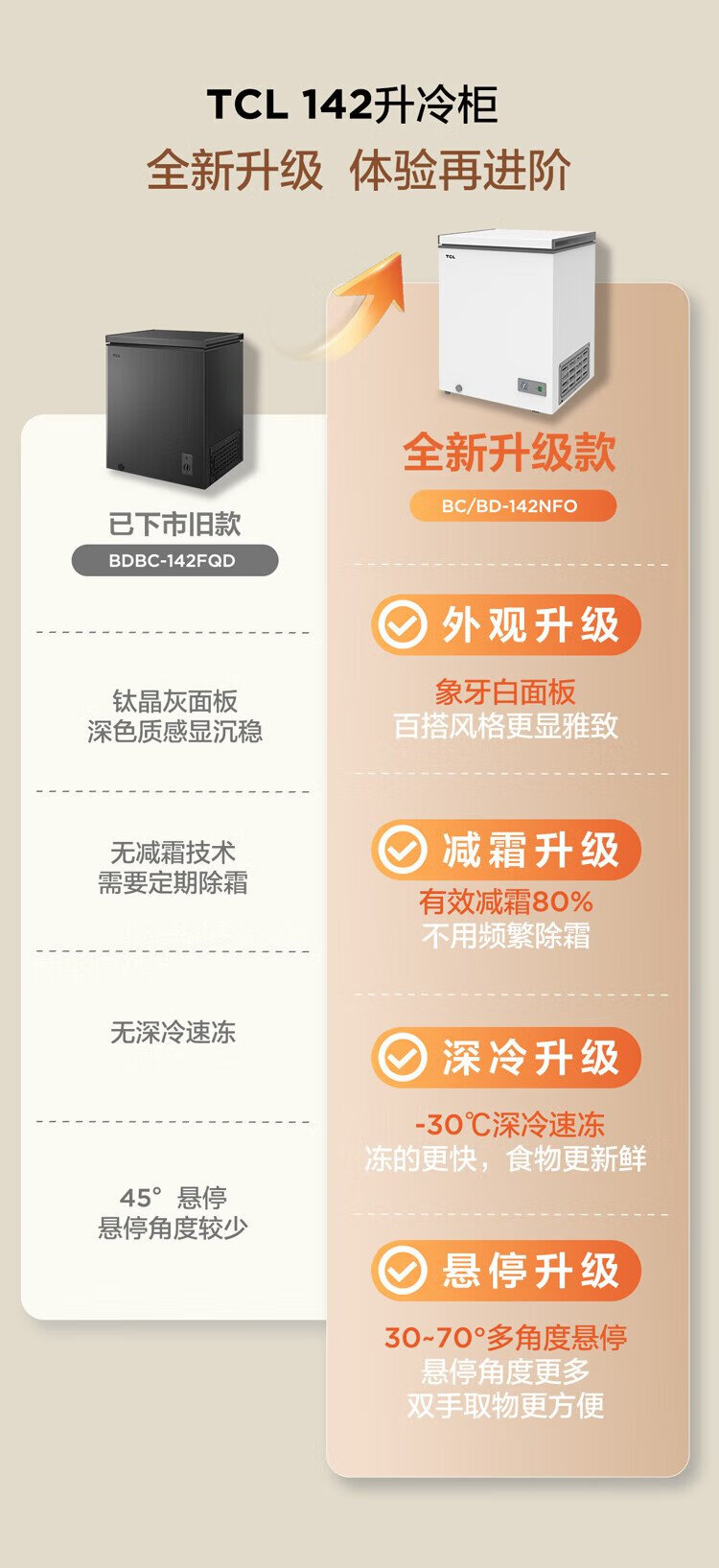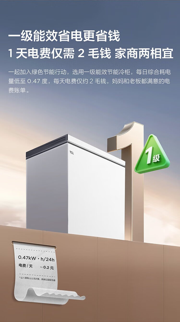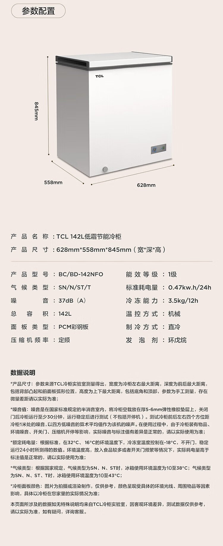 TCL 142-liter low-frost energy-saving refrigerator and freezer, small apartment, first-class energy efficiency, 80% frost reduction, cryogenic quick freezing, wide temperature range, ivory white 142L BC/BD-142NFO